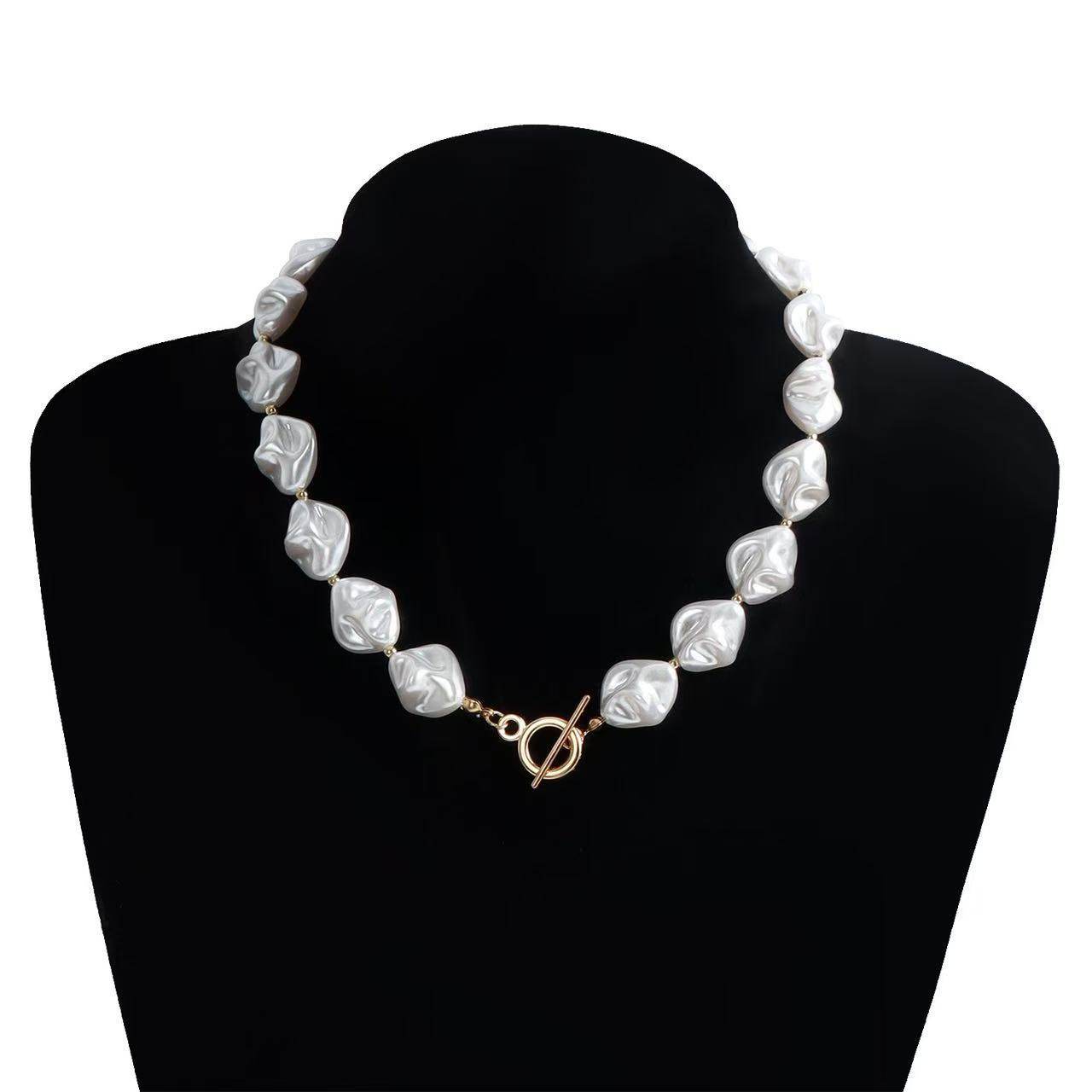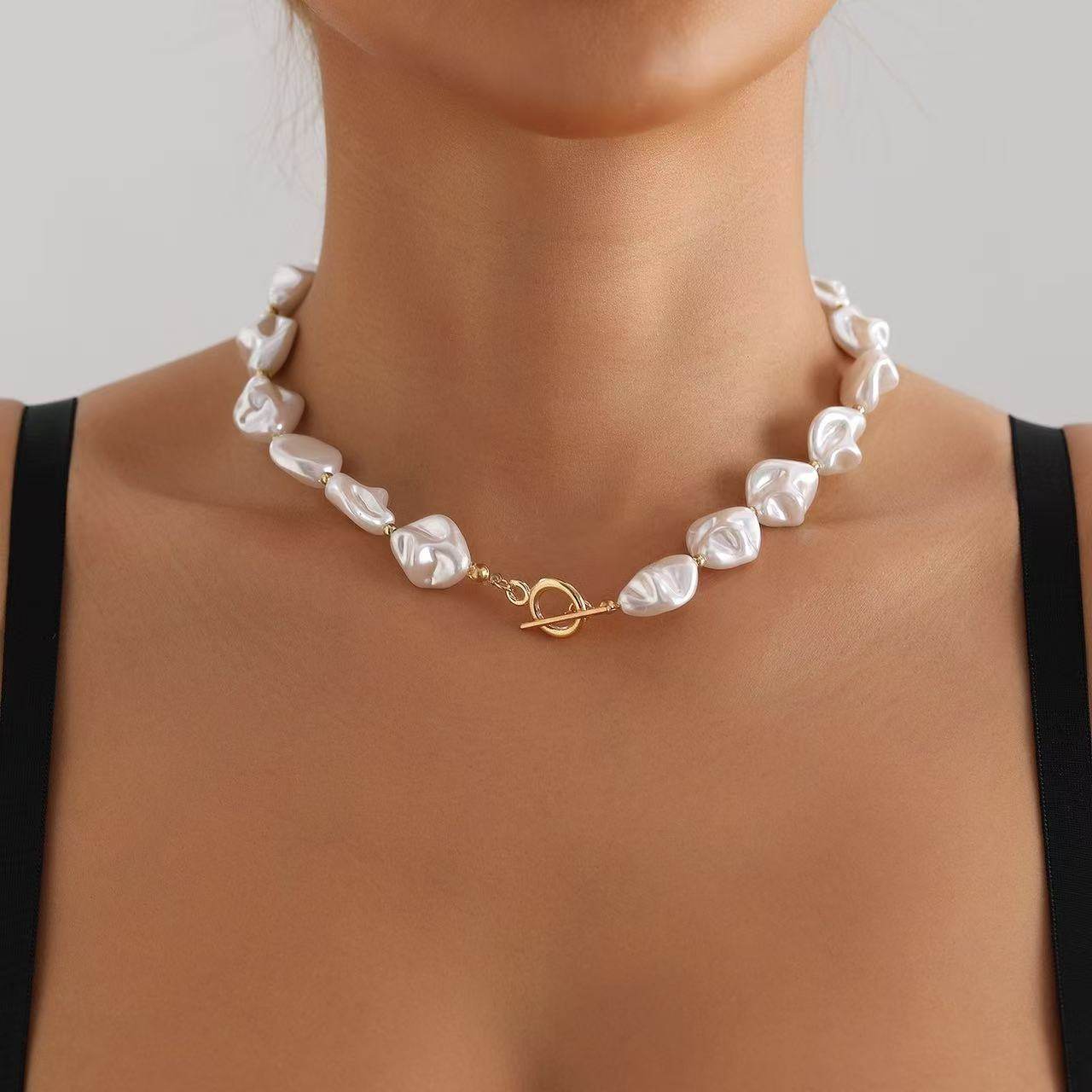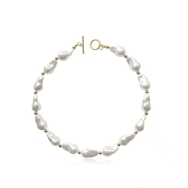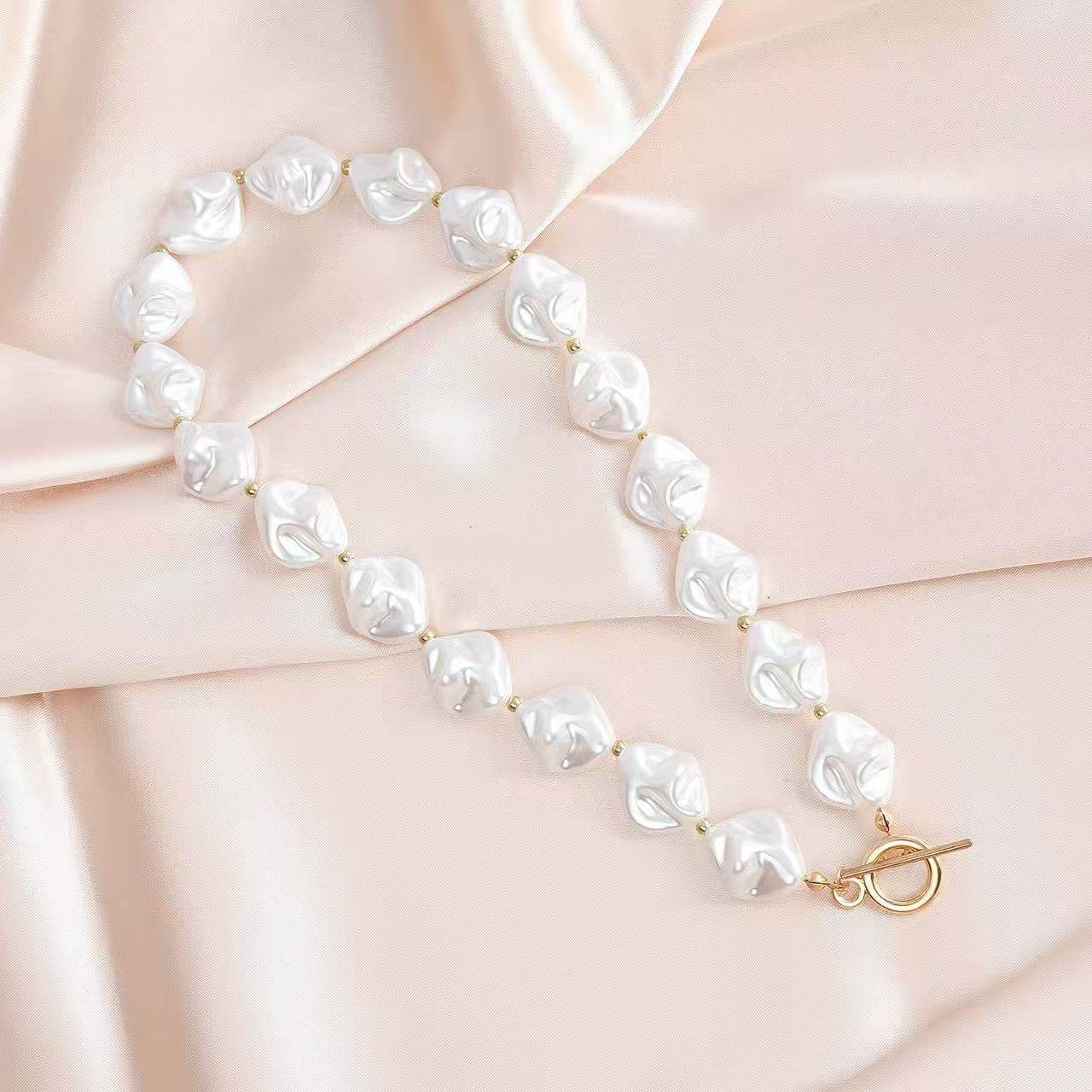 European and American Elegant Baroque Special-Shaped Pearl Necklace Women's Personalized Light Luxury High-Level Clavicle Chain Necklace Chain Woolen Chain