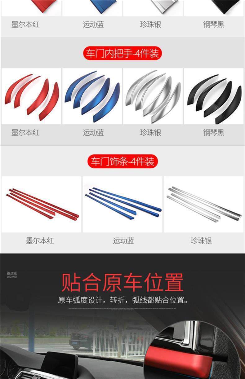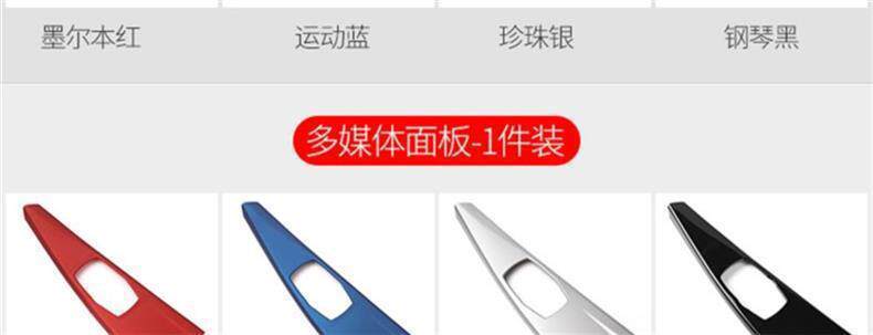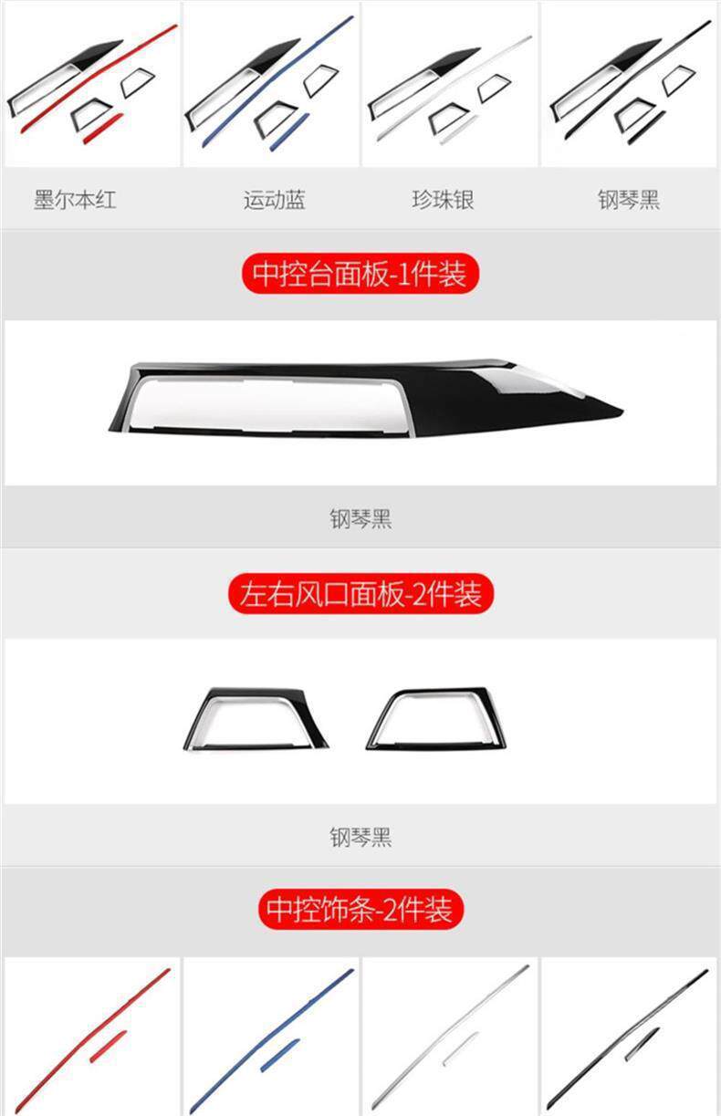 | Size | Multimedia panel-red model,Multimedia panel-silver model,Multimedia panel-black model,Multimedia panel-blue model,Multimedia panel-carbon fiber pattern,Door inner armrest-red model,Door inner armrest-piano black,Door inner armrest-silver style,Door inner armrest-carbon fiber pattern,Door inner armrest-blue model,Center console trim-red model,Center console trim-blue model,Center console trim-silver,Center console trim-carbon fiber pattern,Long axis door trim-red,Long axis door trim-silver,Long axis door trim-blue,Long axis door trim-carbon fiber color,Gear strip-red model,Gear strip-silver style,Gear strip-blue model,Gear strip carbon fiber color,Central control panel-piano black half pack,Central control panel-piano black all-inclusive,Central control panel + left and right air vents - carbon fiber pattern,Left and right air vents--carbon fiber pattern,Air conditioning cd panel-carbon fiber color,13-15 gearbox panel-carbon fiber pattern,16-19 gearbox panel-carbon fiber pattern |
