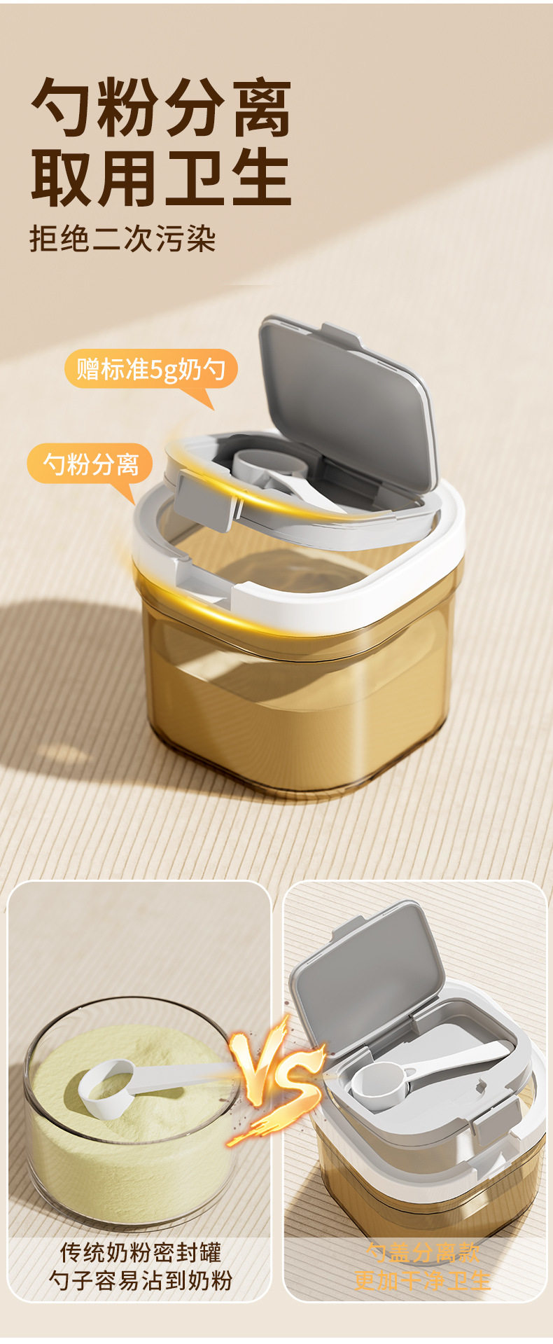 Household Milk Powder Can, Light-Proof Sealed Moisture-Proof Can, Free Spoon, Transparent Grain Sealed Box, Portable Packaging for Outings