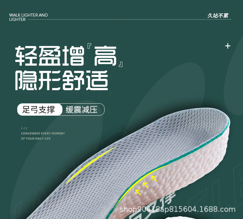 Arch support heightening insole female foot not tired invisible inner heightening seven points heightening pad not collapsing half pad popcorn