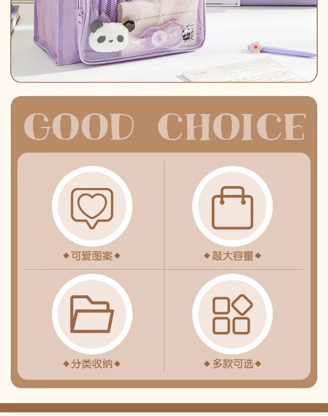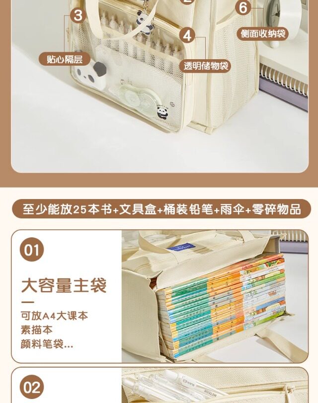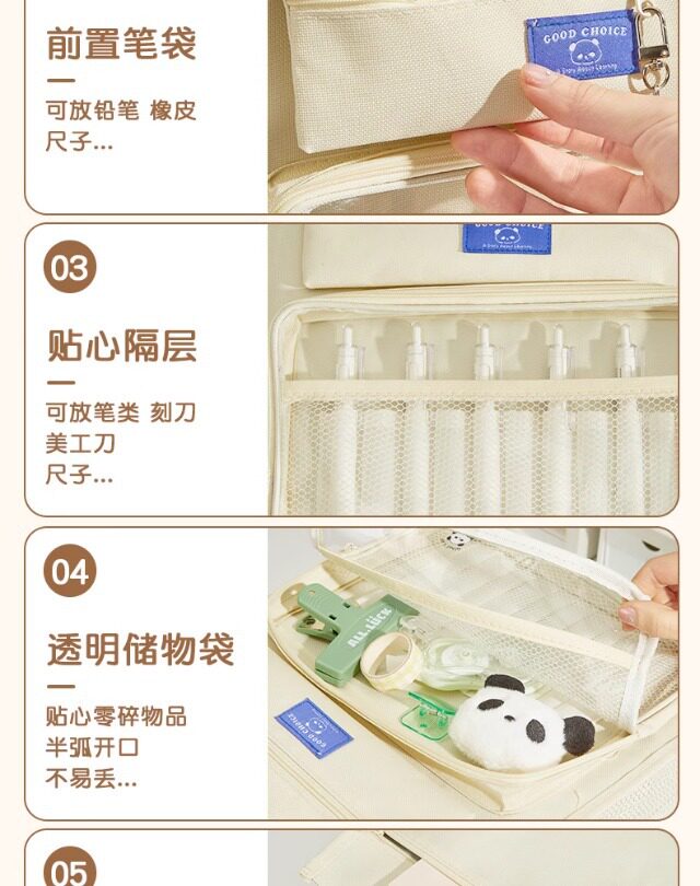 | Specification | Purple [stationery gift pack* recommended for the beginning of school],Green [stationery gift pack* recommended for the beginning of school],Purple comes with [panda brooch + keychain + note pad*30 + question brush gel pen*5],Green gift [panda brooch + keychain + note pad*30 + question brush gel pen*5],Beige comes with [panda brooch + keychain + note pad*30 + question brush gel pen*5],Black comes with [panda brooch + keychain + note pad*30 + question brush gel pen*4],Purple gift [panda brooch + panda keychain],Green gift [panda brooch + panda keychain],Beige comes with [panda brooch + panda keychain],Black comes with [panda brooch + panda keychain],Purple [upgraded and thickened 3 layers and 6 bags],Green [upgraded and thickened 3 layers and 6 bags],Beige [upgraded and thickened 3 layers and 6 bags],Black [upgraded and thickened 3 layers and 6 bags] |