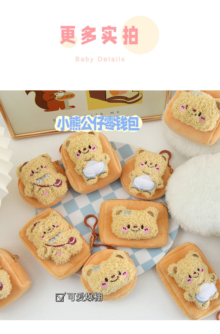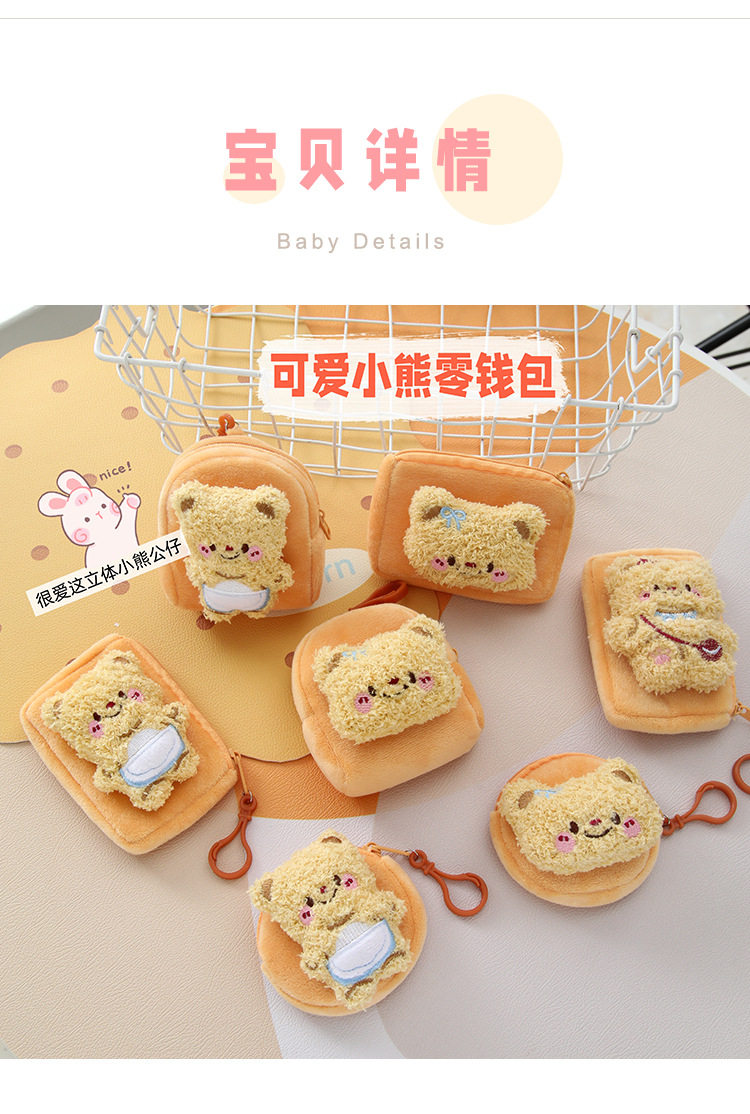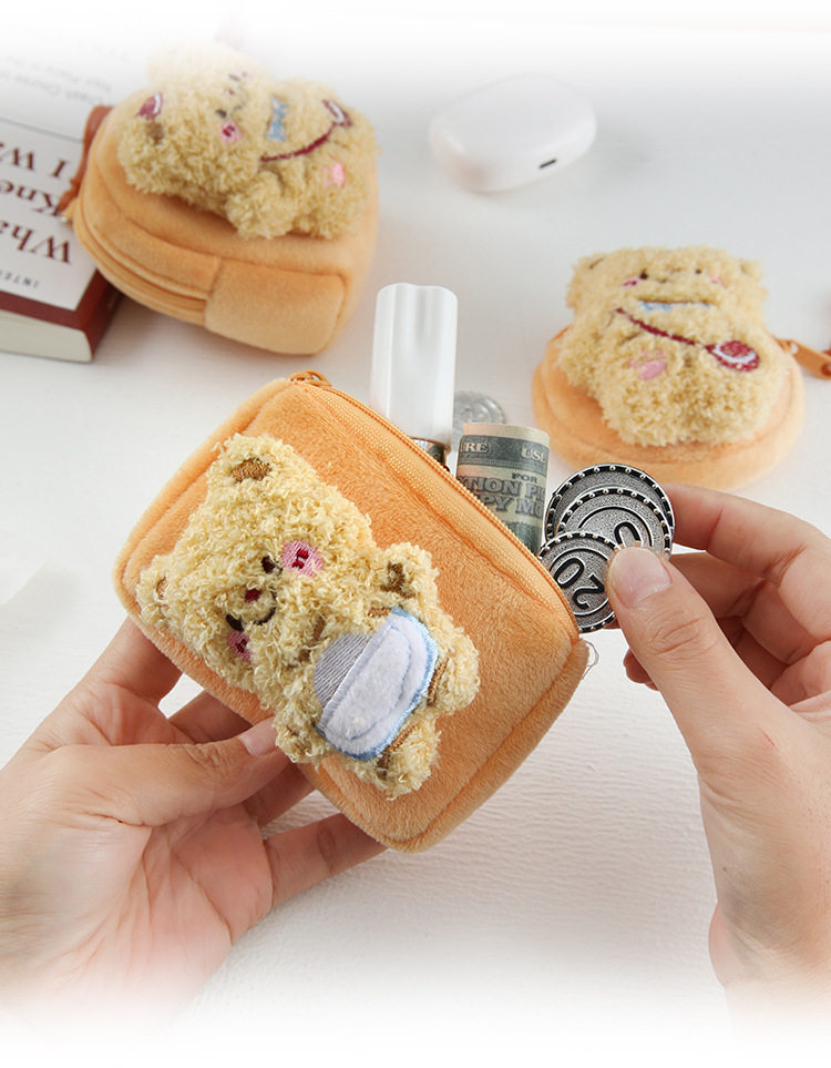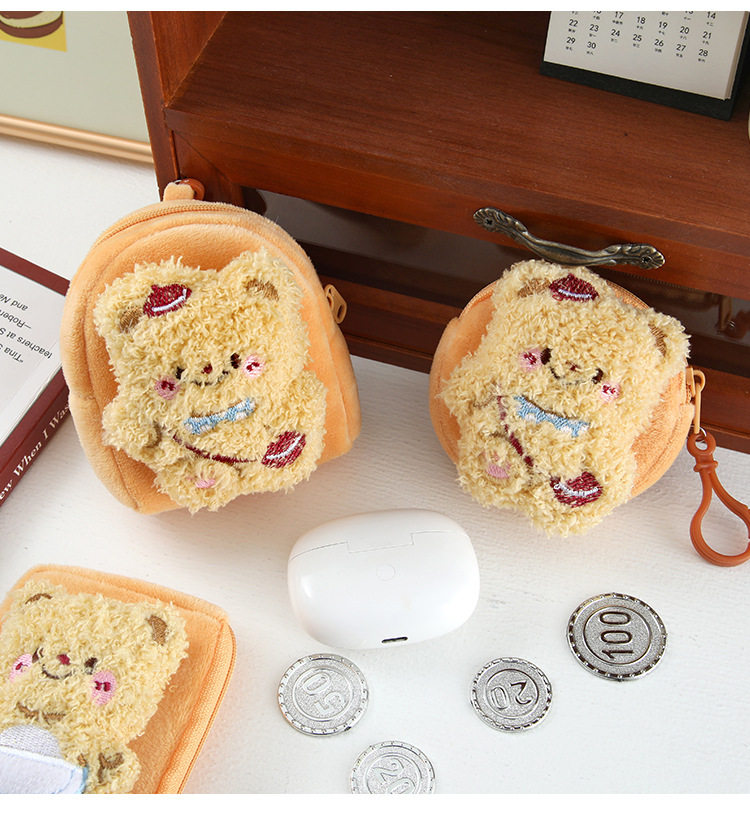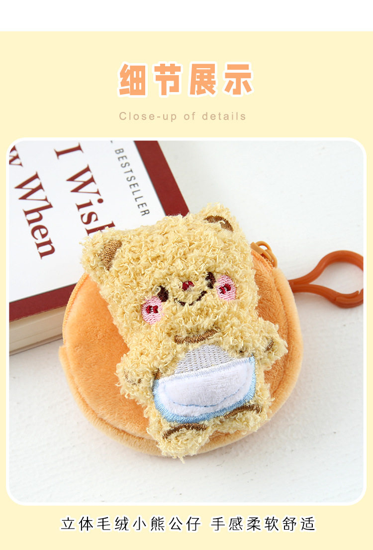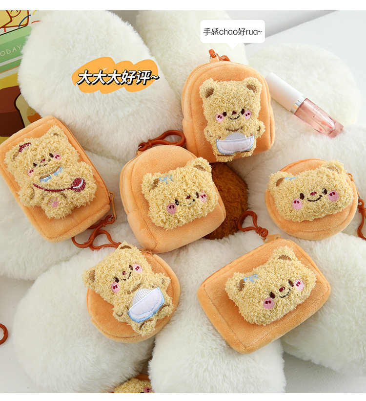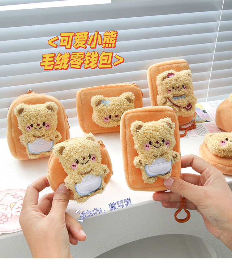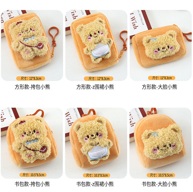Cartoon Cute Bear Plush Women's Mini Coin Purse Student Schoolbag Keychain Pendant Portable Headset Bag