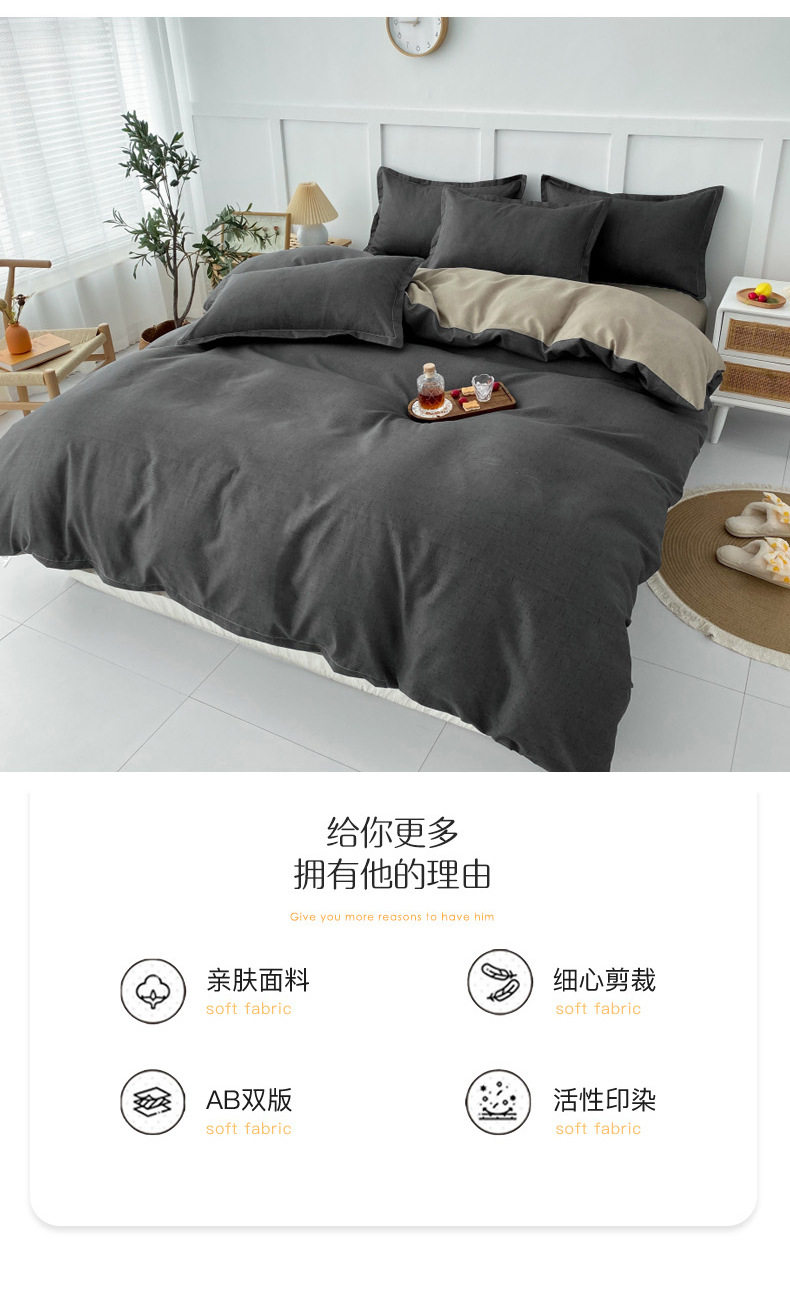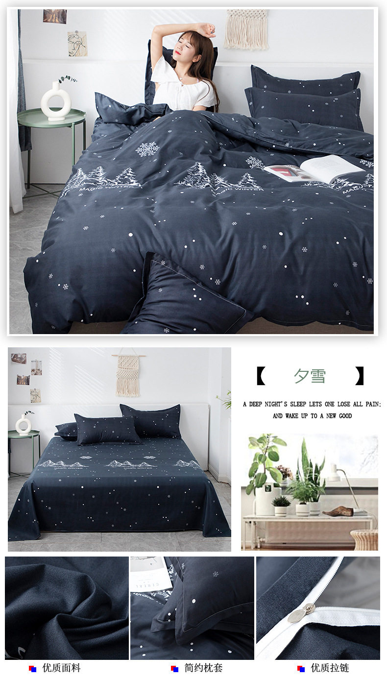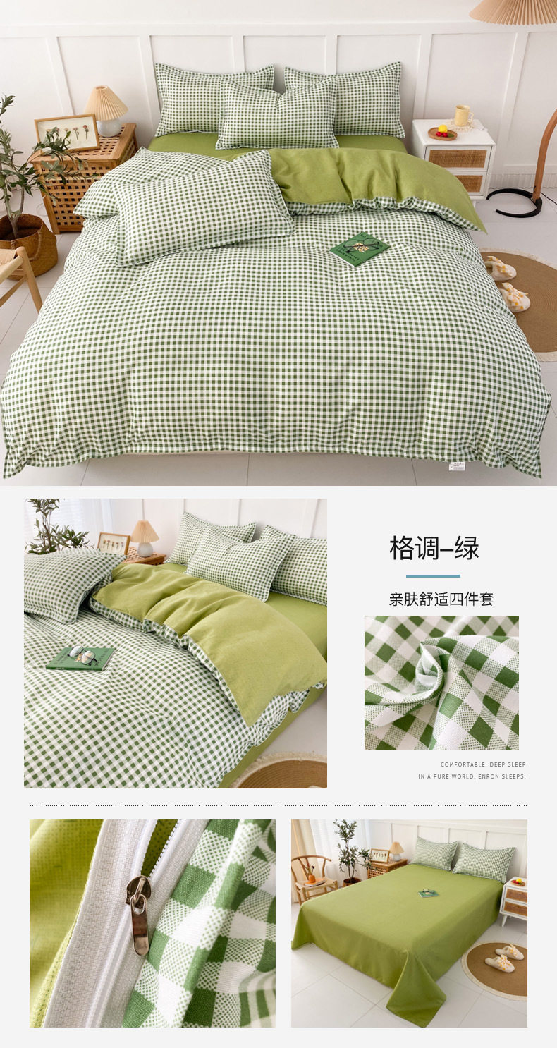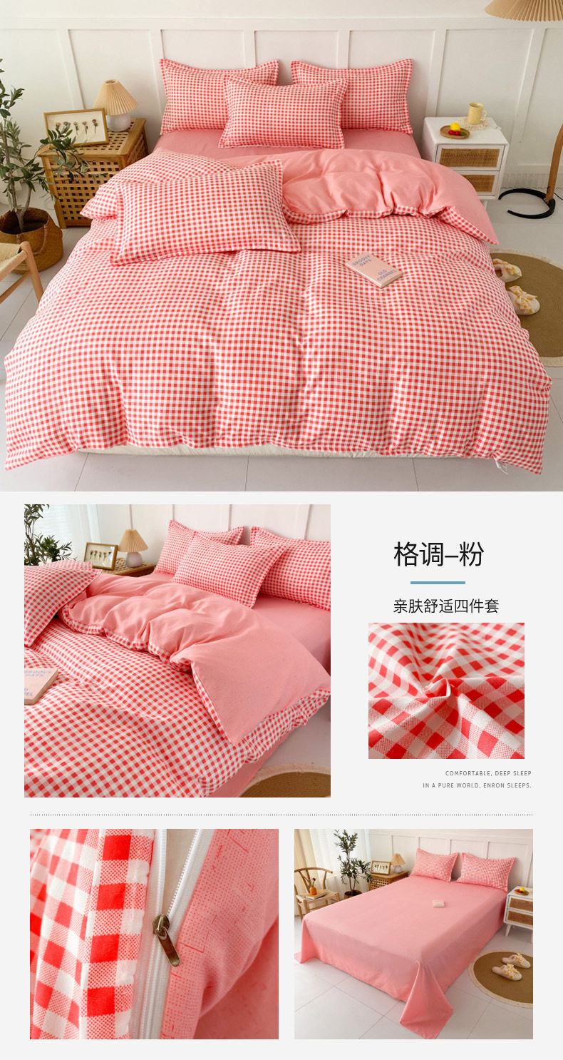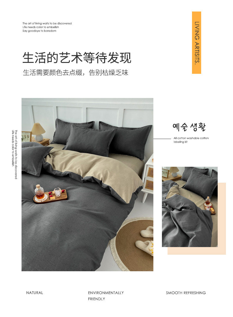Small fresh sanding quilt cover four-piece water-washed cotton bed sheet quilt cover simple student dormitory single three-piece wholesale