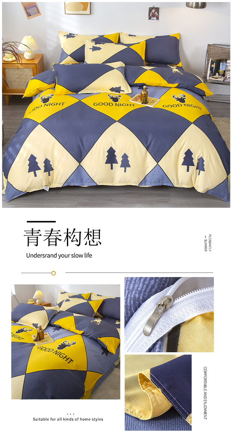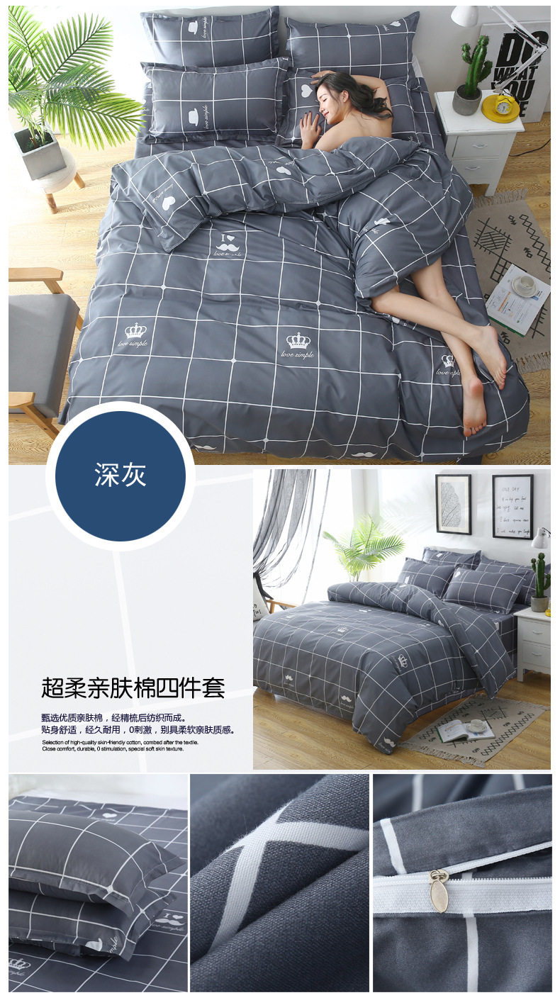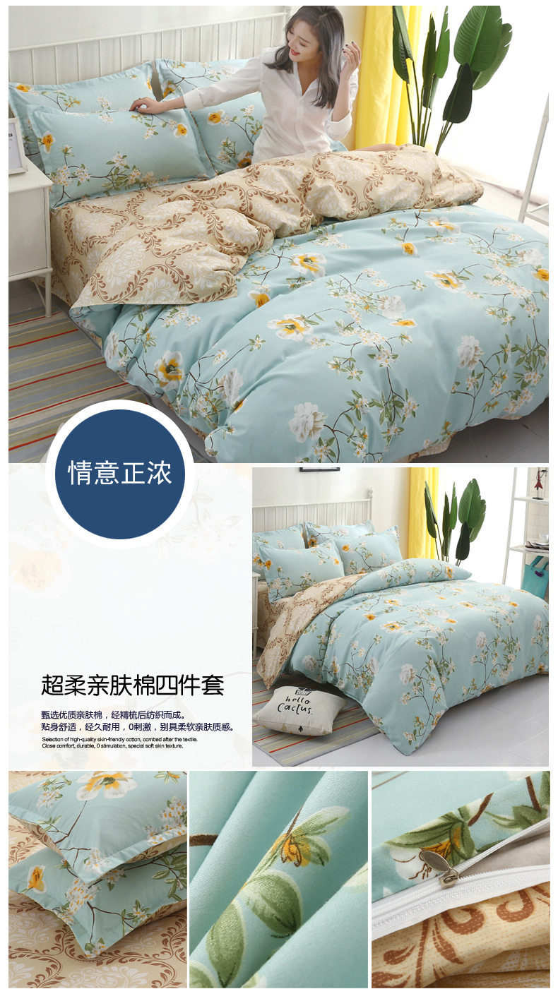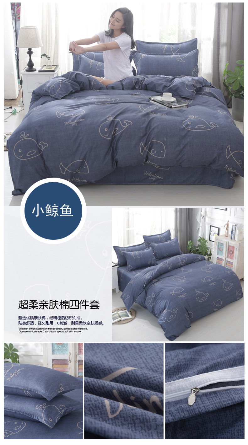 Small fresh sanding quilt cover four-piece water-washed cotton bed sheet quilt cover simple student dormitory single three-piece wholesale