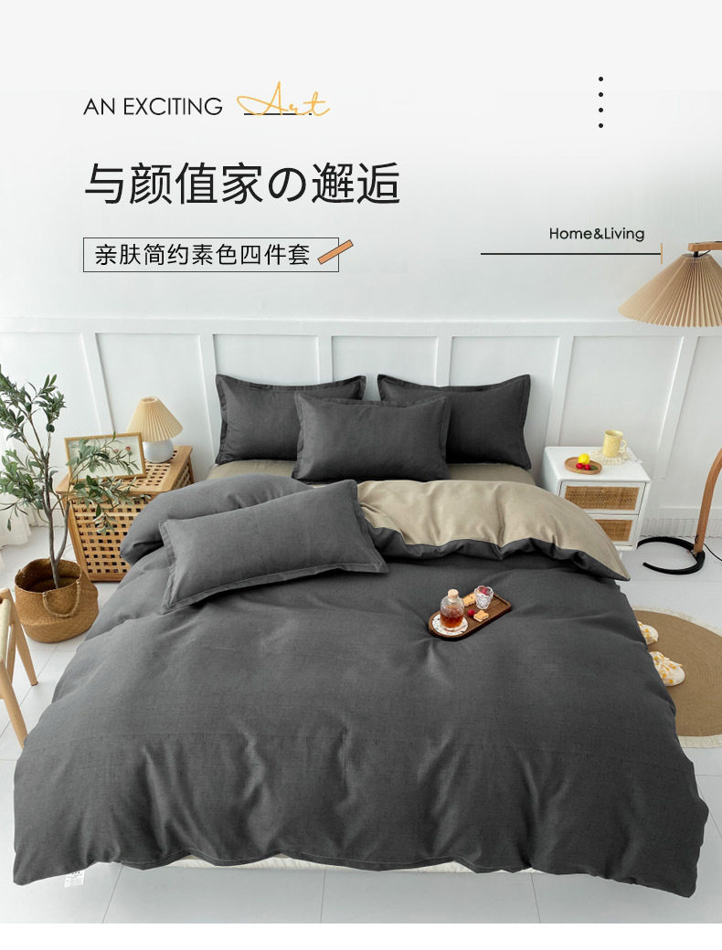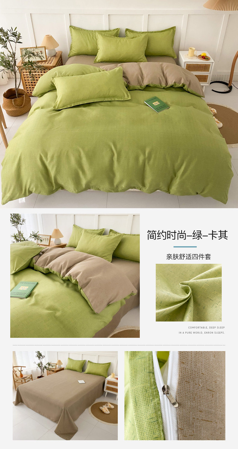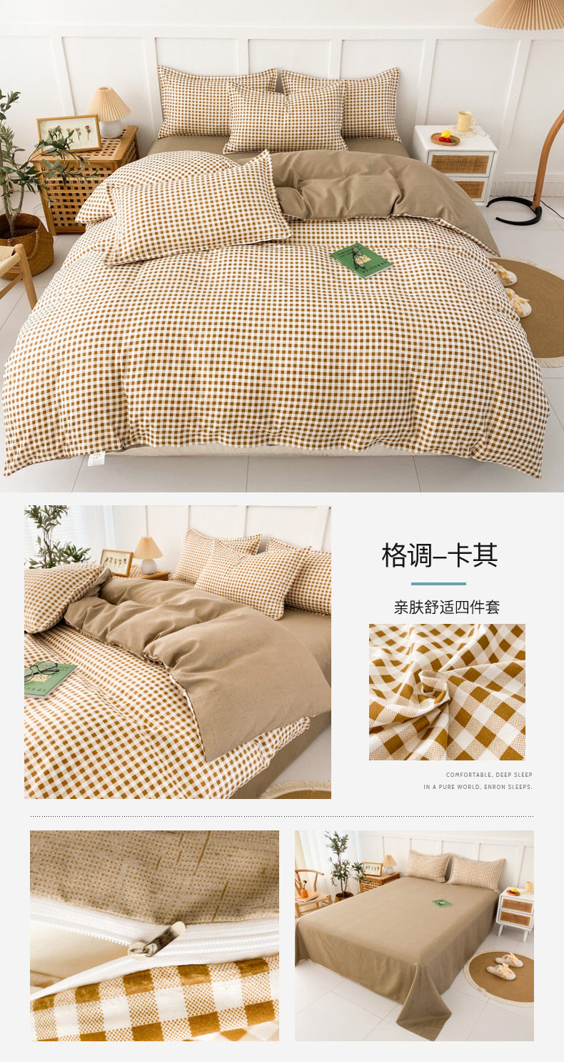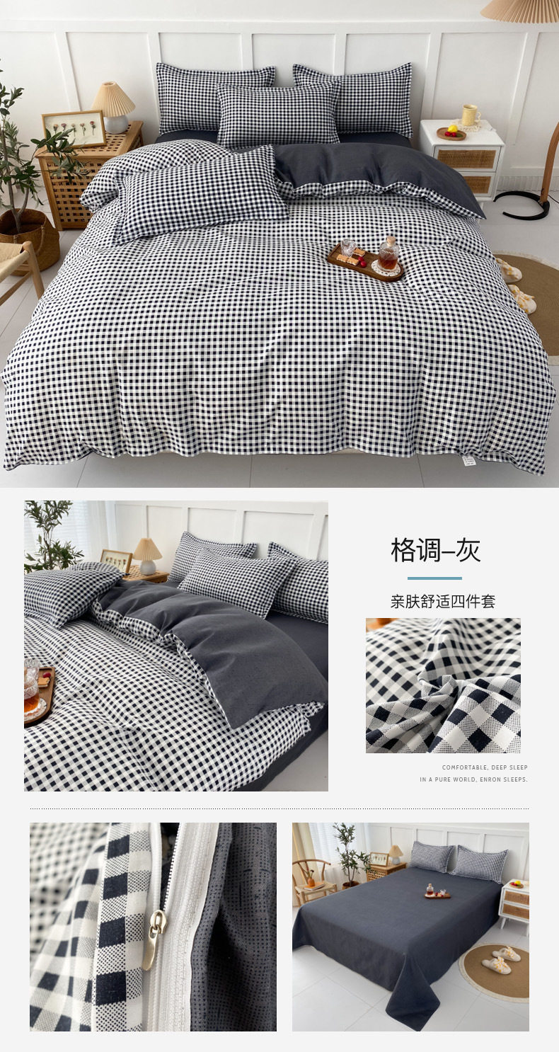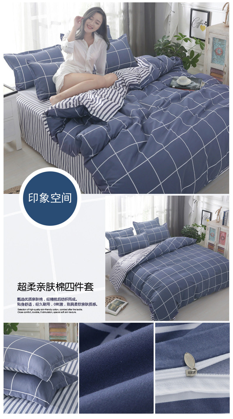 Small fresh sanding quilt cover four-piece water-washed cotton bed sheet quilt cover simple student dormitory single three-piece wholesale