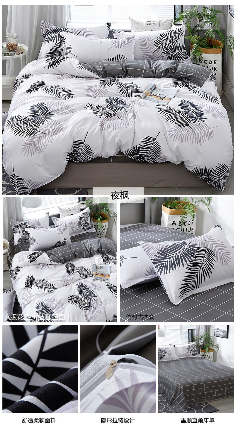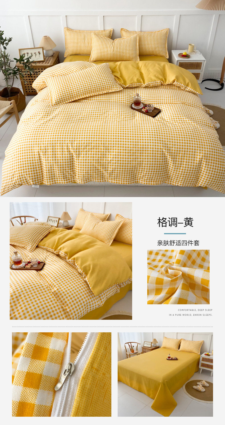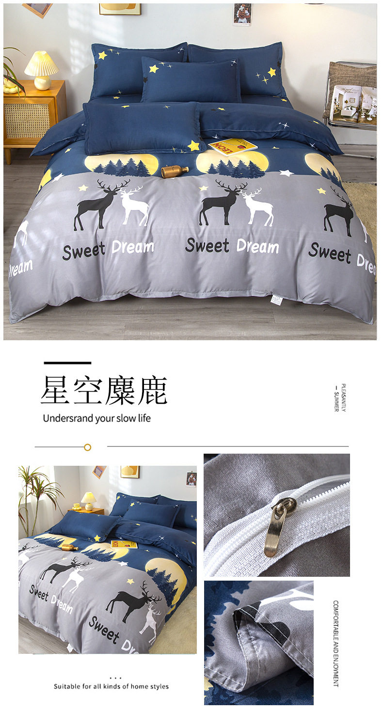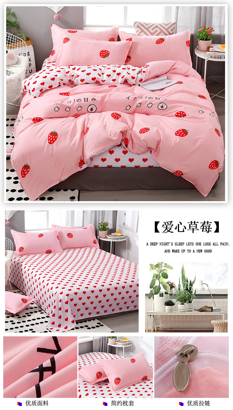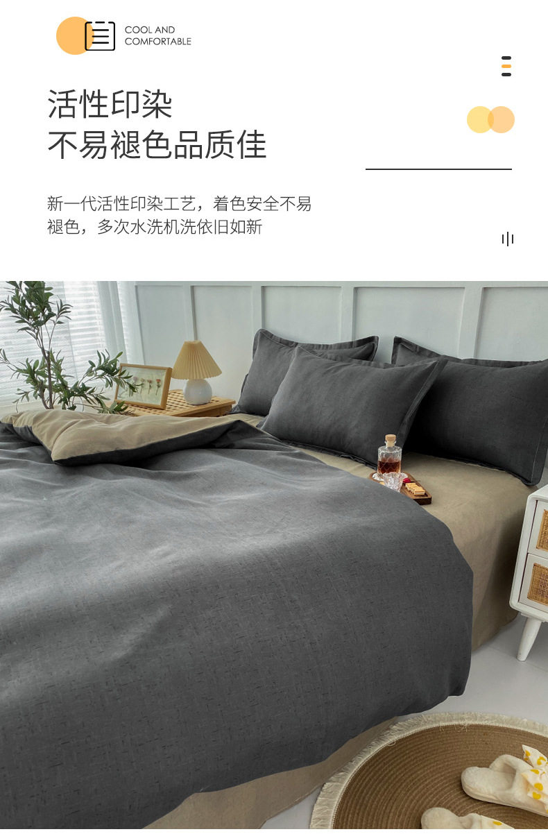Small fresh sanding quilt cover four-piece water-washed cotton bed sheet quilt cover simple student dormitory single three-piece wholesale