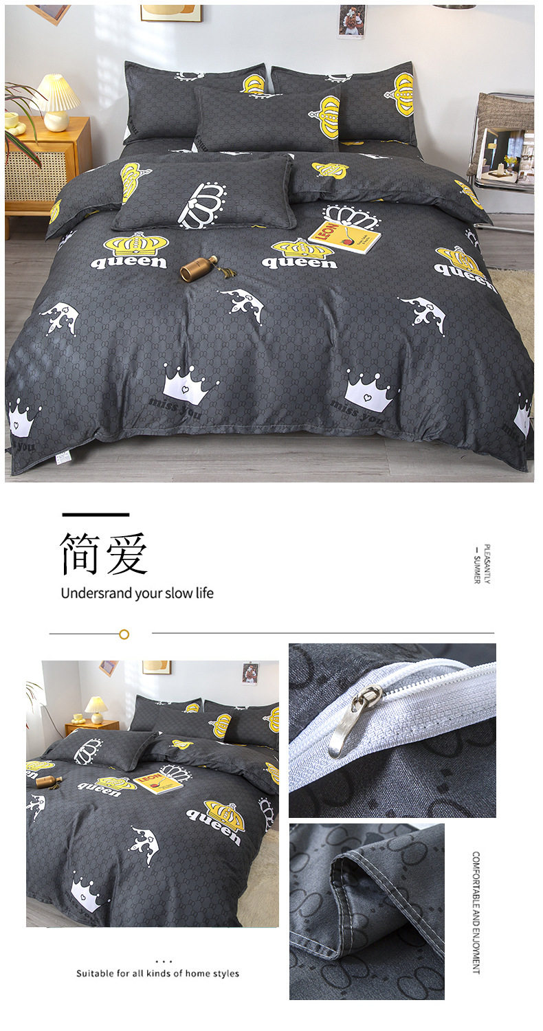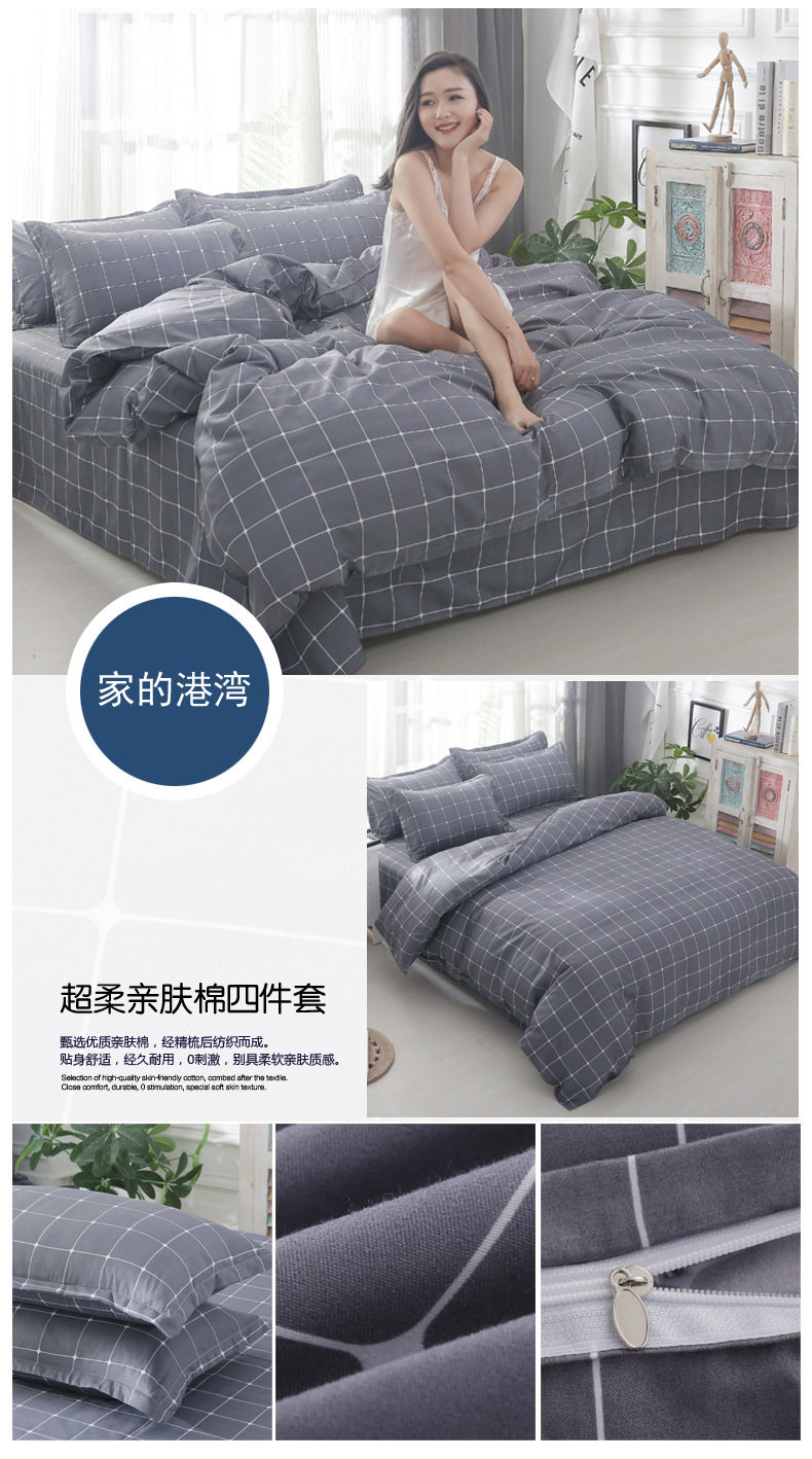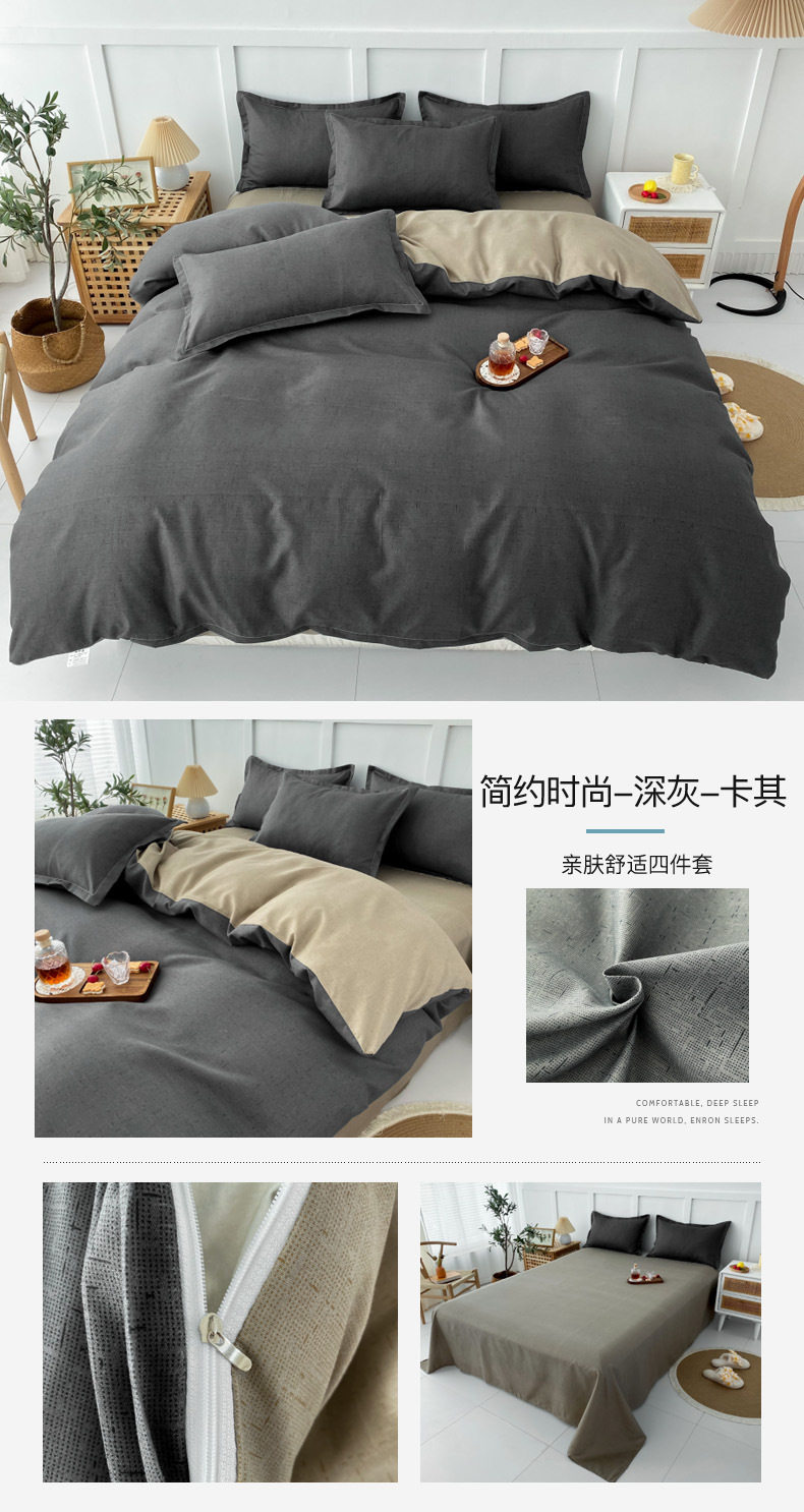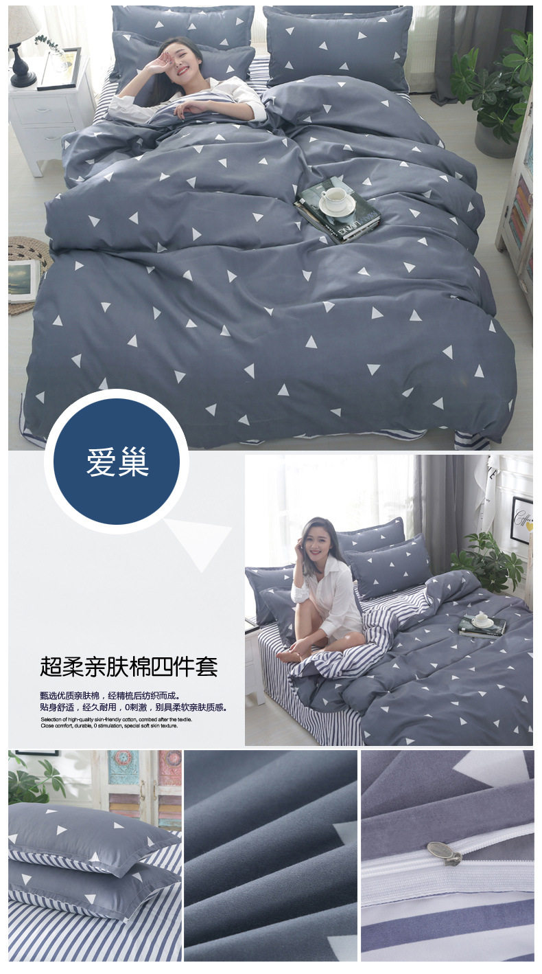 Small fresh sanding quilt cover four-piece water-washed cotton bed sheet quilt cover simple student dormitory single three-piece wholesale