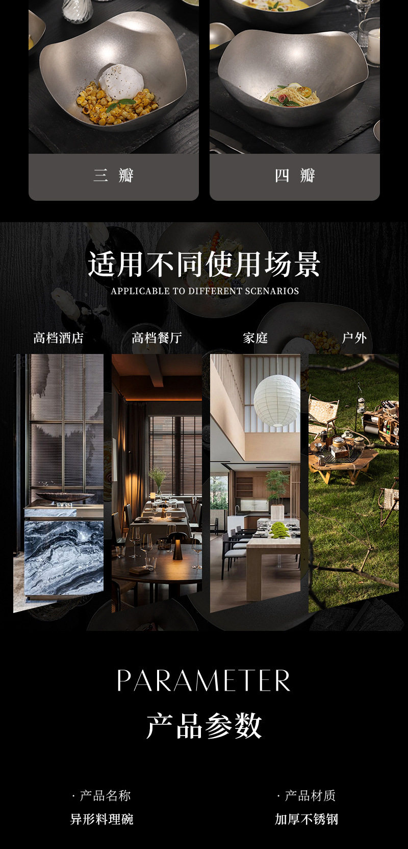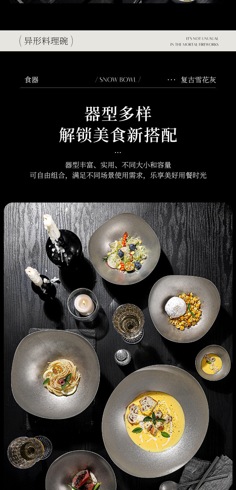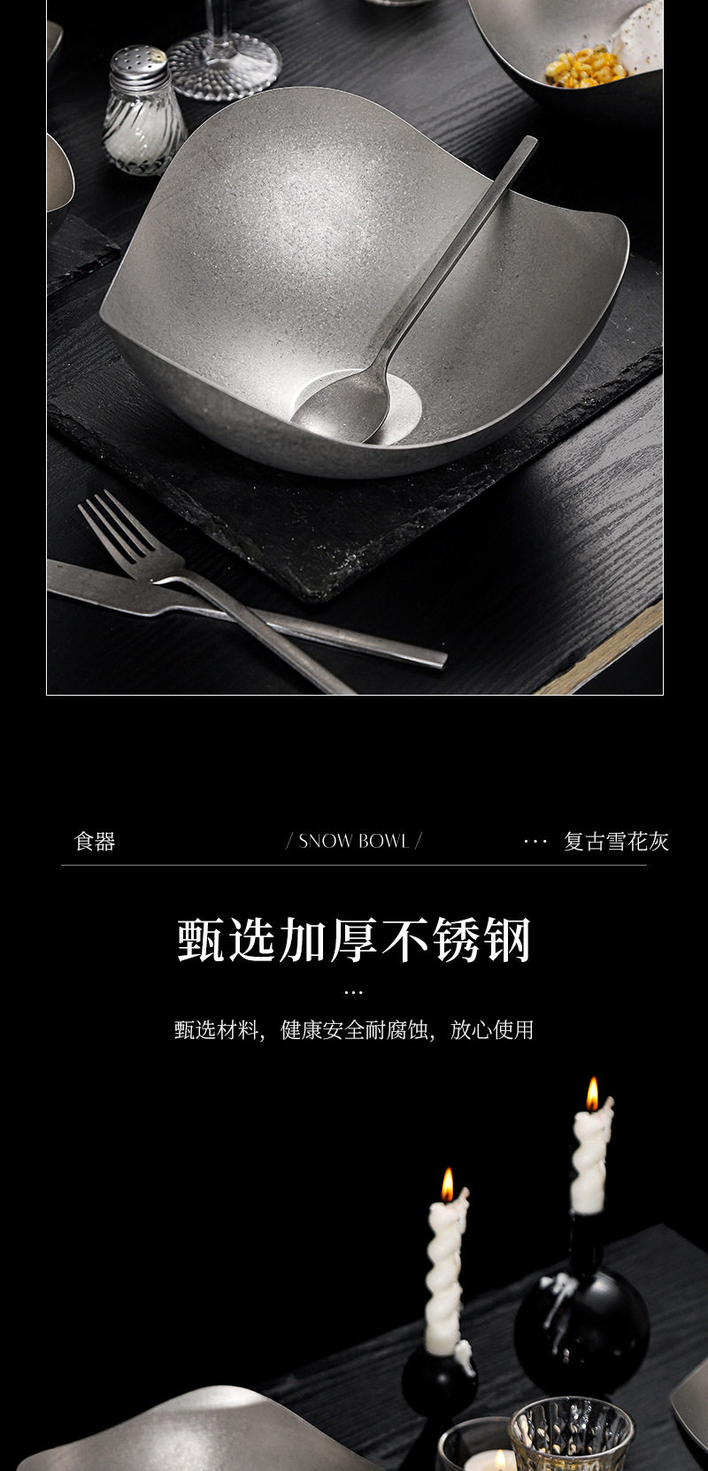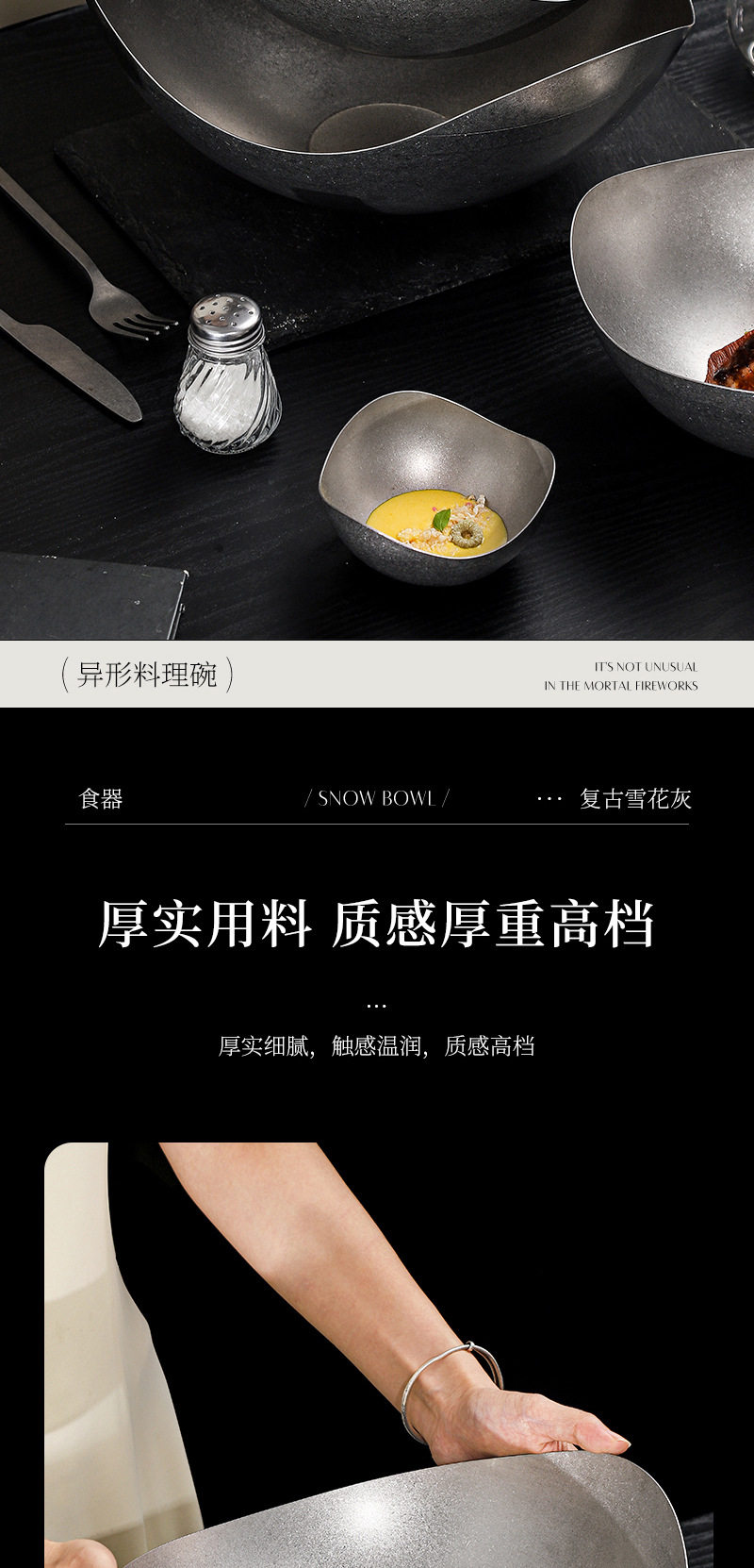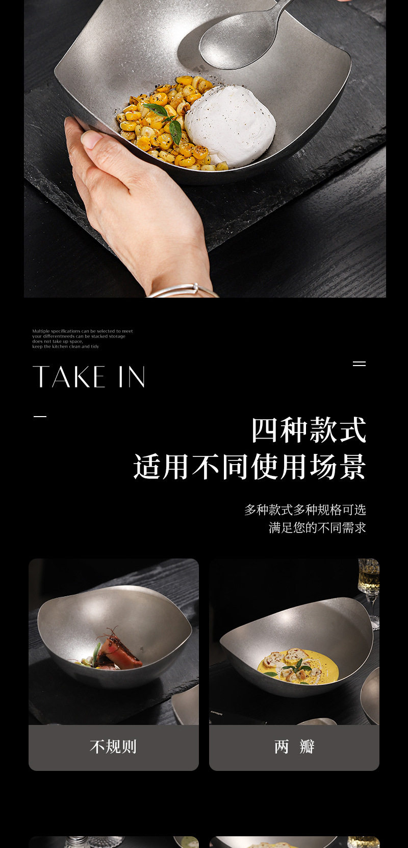Retro Special-Shaped Plate, Creative Asymmetrical Plate, High-End Stainless Steel Outdoor Tableware, Home Commercial Western Food Plate