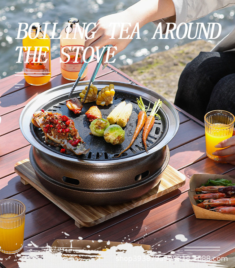 Extra-Thick Full Set of Japanese-Style Household Charcoal Grill for Indoor and Outdoor Use, Portable Barbecue Grill for Tea Brewing and Grilling Skewers