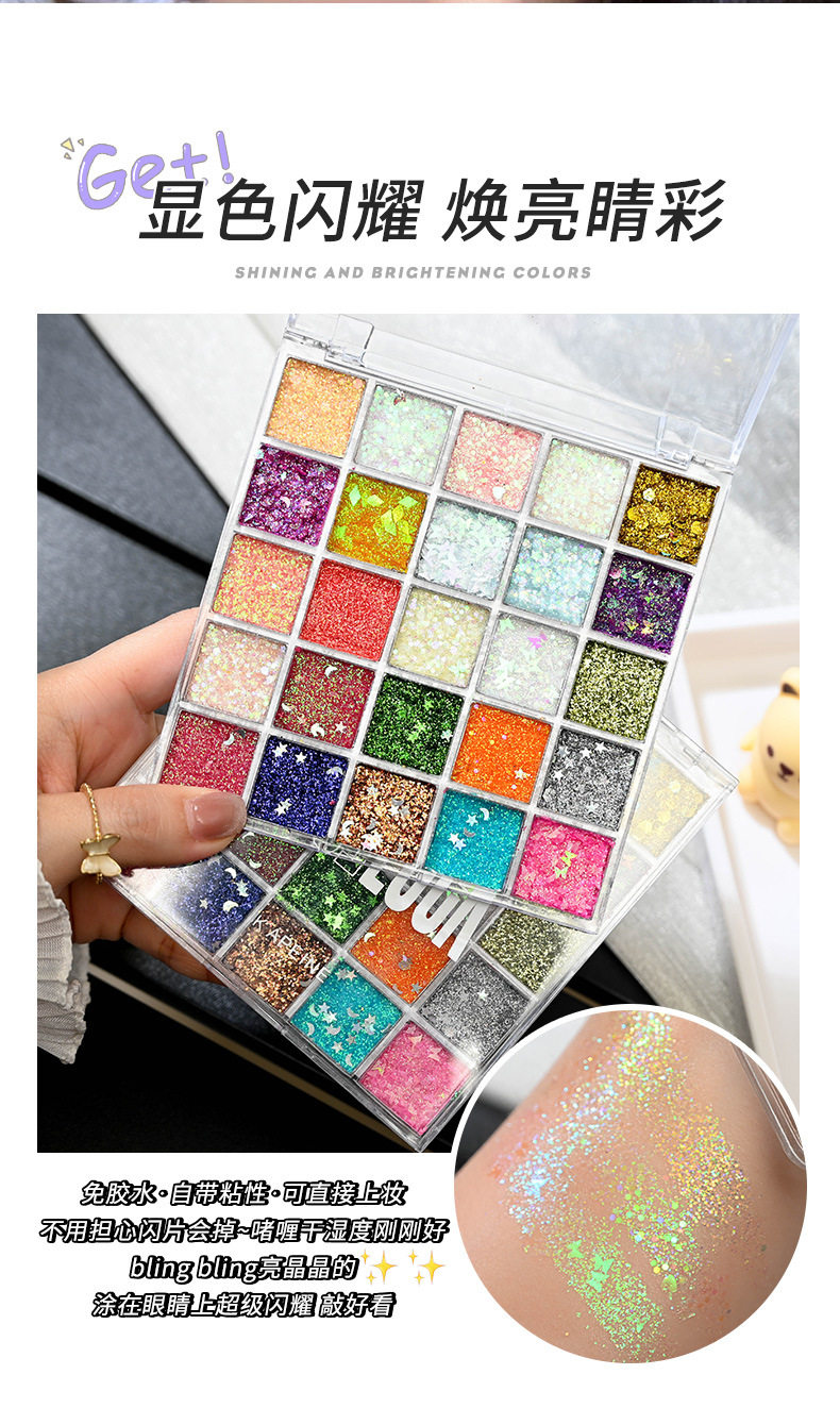 | Texture | Powder,Shimmer,Metallic luster,Big sequins,Polarized glitter |