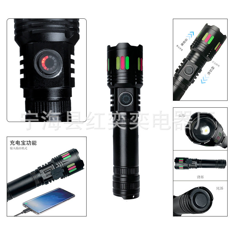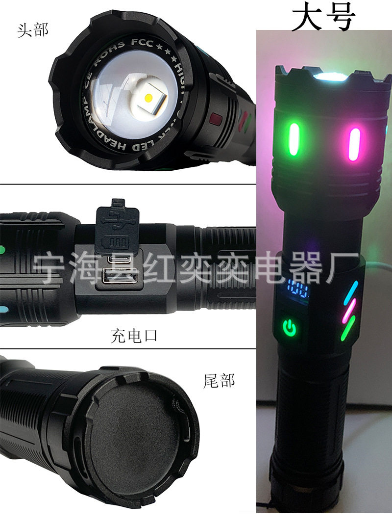 New High-Brightness White Laser Flashlight Digital Display Rechargeable Emergency Light Patrol Fluorescent Colorful Outdoor Strong Light Flashlight