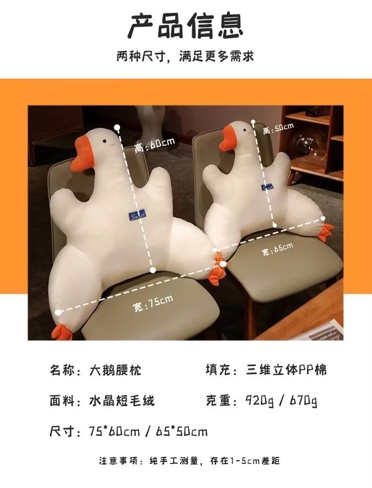 Cross-border Big White Goose Office Seat Waist Pillow Waist Cushion Car Cushion Waist Pillow Chair Student Children Waist Pillow