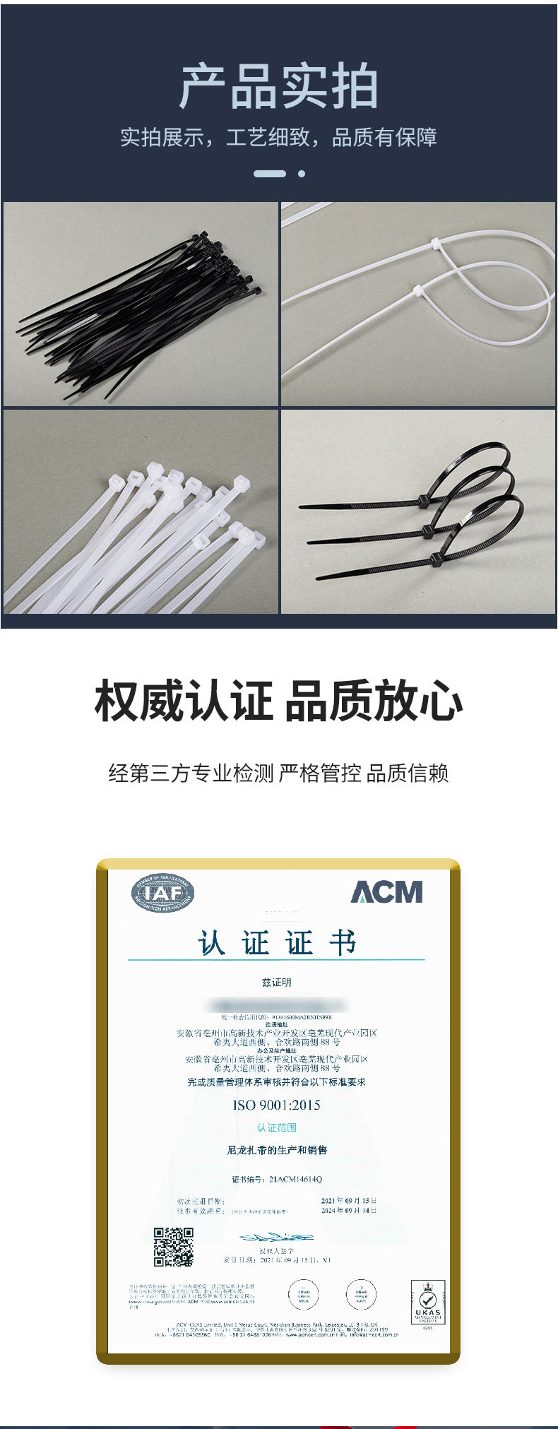 high quality cable ties small and medium-sized foreign trade direct supply high temperature and high toughness certification factory direct sales