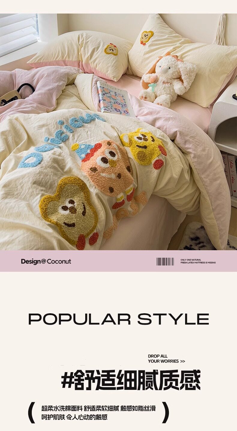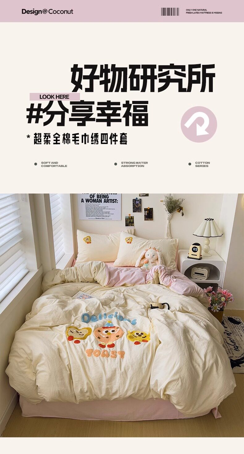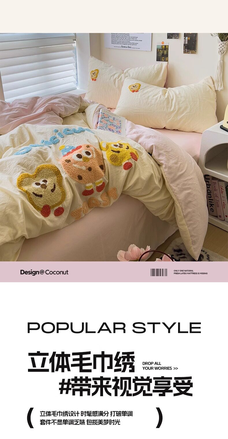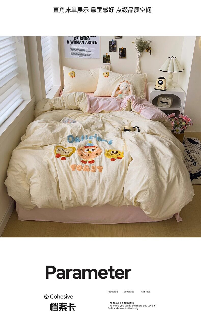 Ins wind cotton four-piece towel rust cotton quilt cover sheets spring and summer dormitory bed hat three 4-piece set wholesale