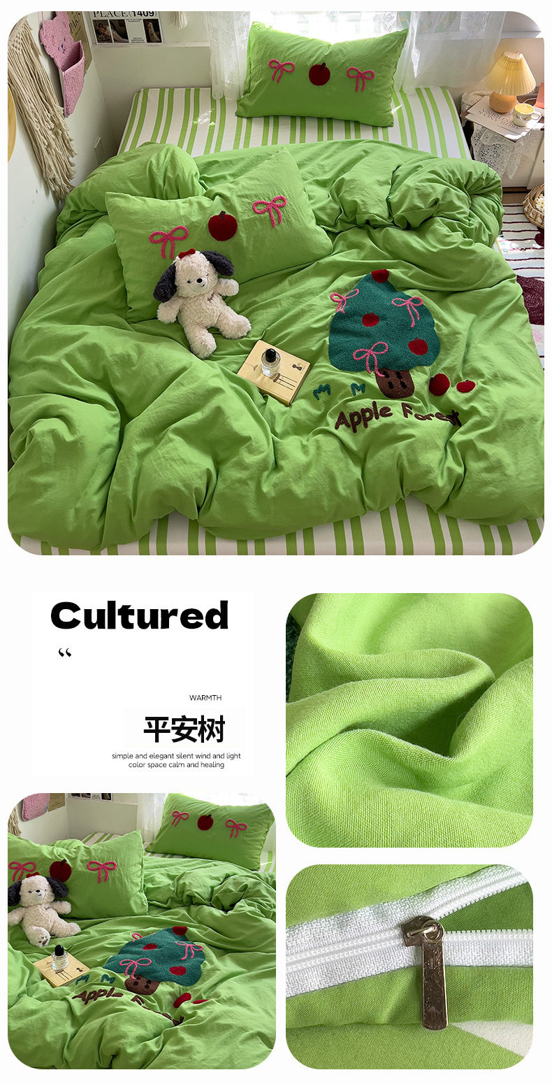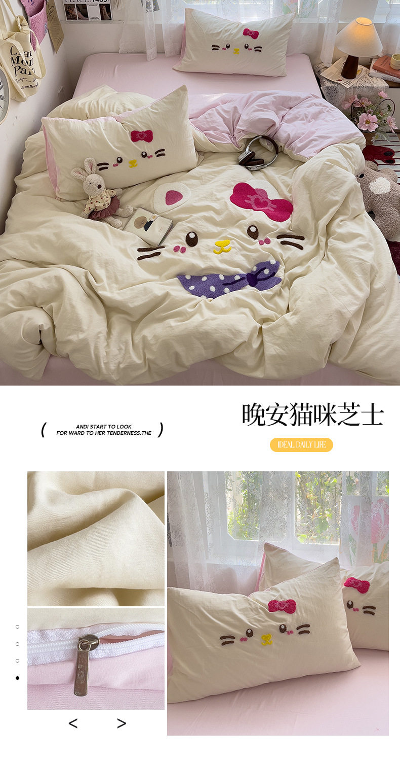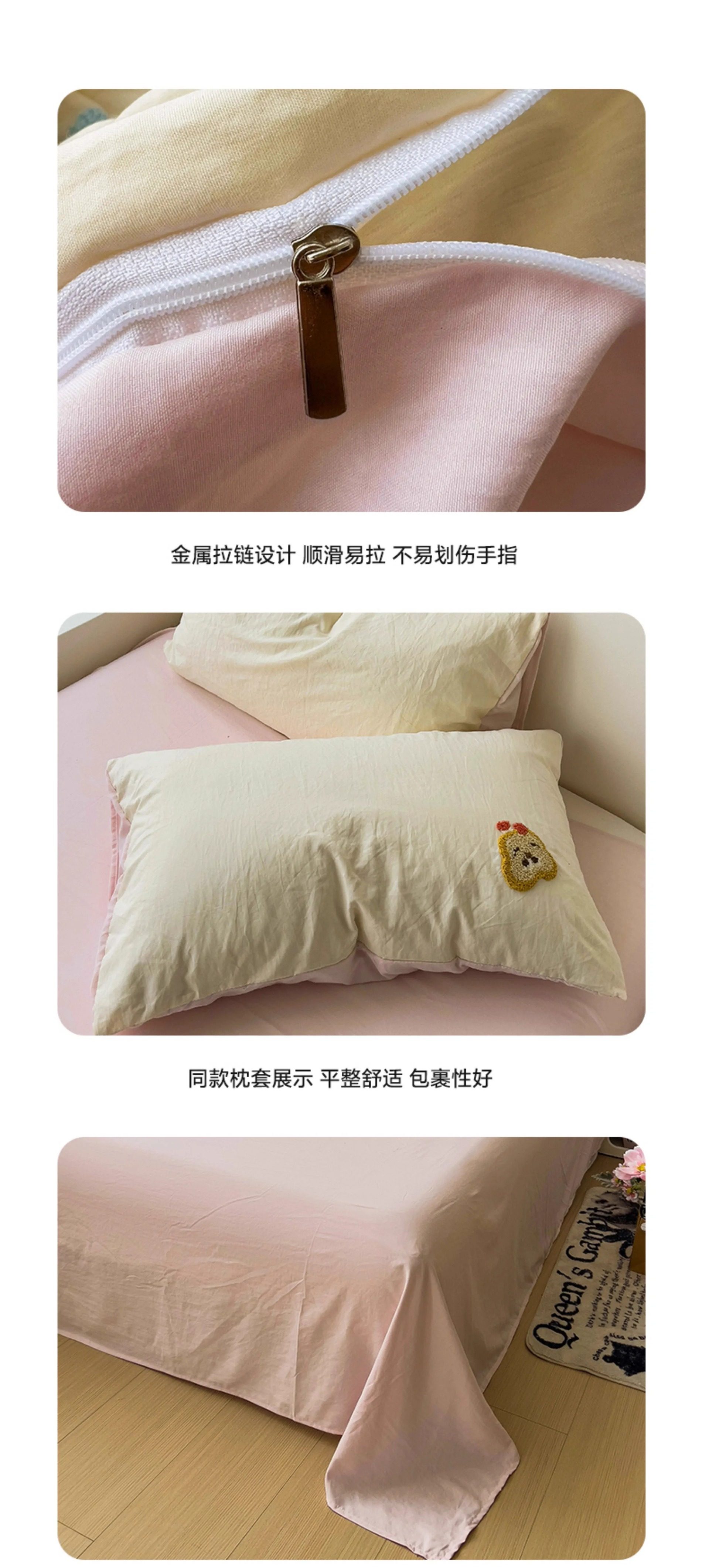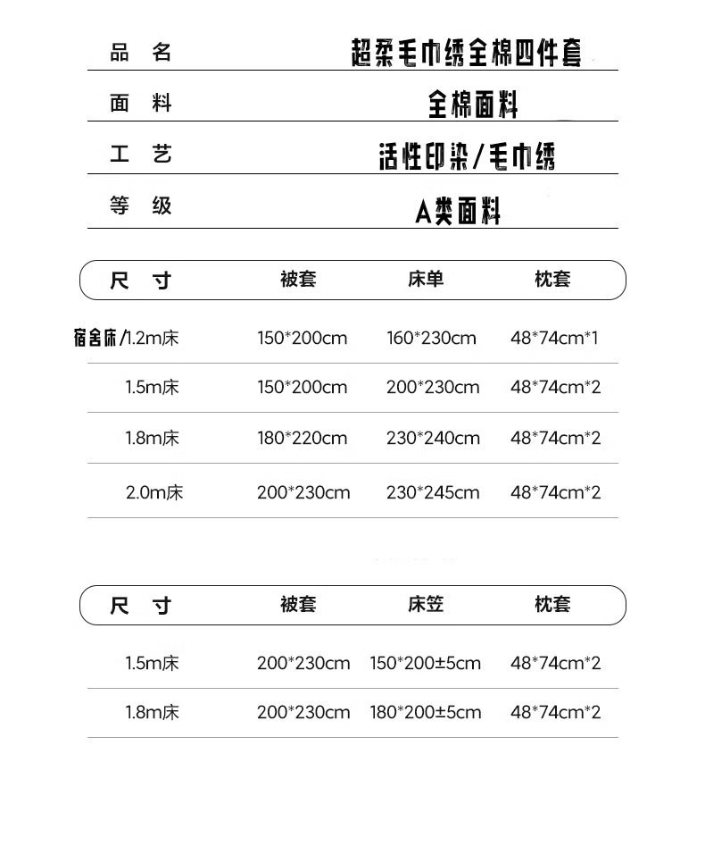 | Dimensions | Three-piece dormitory bed set [quilt cover 150x200cm],1.2 three-piece bed set [quilt cover 150x200cm],1.5 bed four-piece set [quilt cover 150x200cm],1.8 bed four-piece set [quilt cover 180x220cm],2.0 bed four-piece set [quilt cover 200x230cm],Fitted sheet model-1.5 bed four-piece set [quilt cover 200x230cm],Fitted sheet model-1.8 bed four-piece set [quilt cover 200x230cm] |