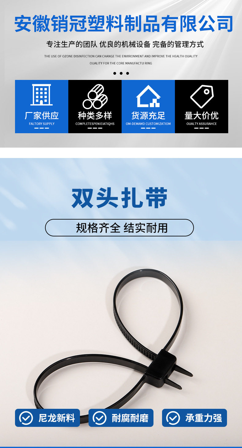 Factory wholesale 12*700mm self-locking cable tie plastic cable tie wholesale double head double buckle cable tie