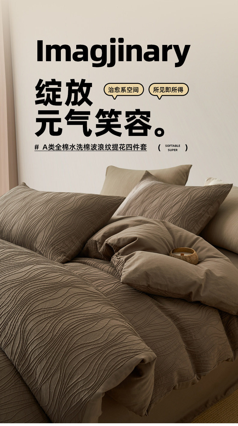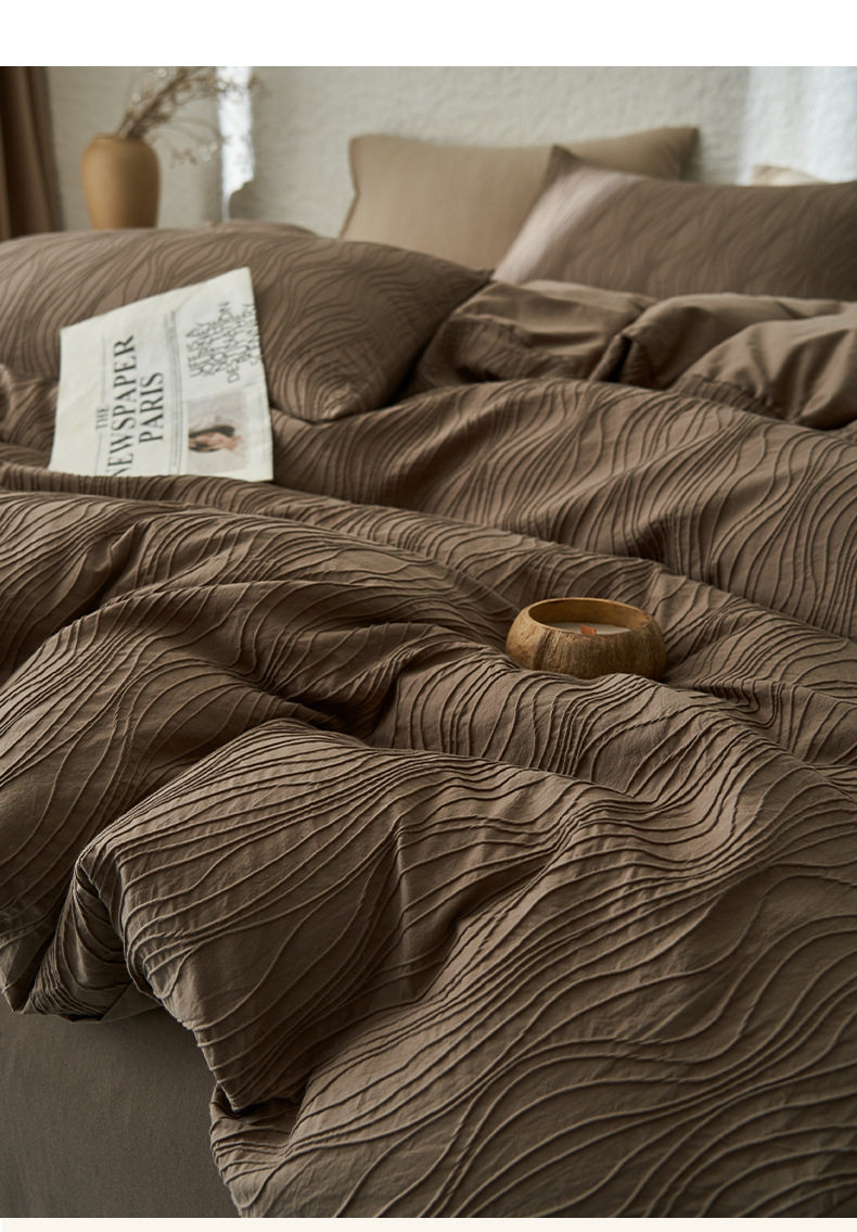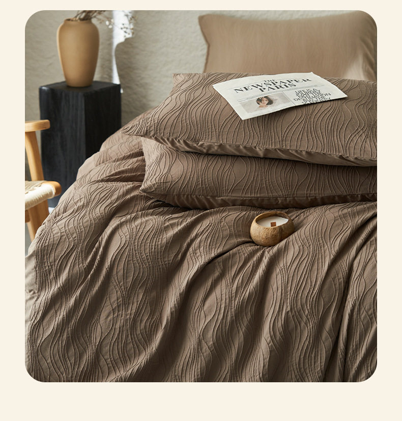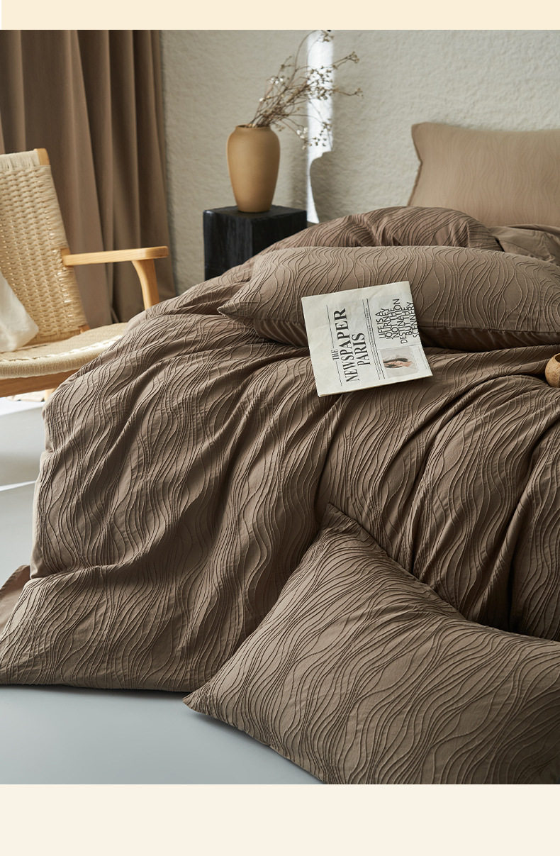 Category A Simple High-grade Jacquard Cotton Bed Four-piece Set Cotton Double-layer Yarn Quilt Cover Bed Sheet Light Luxury Bedding 4