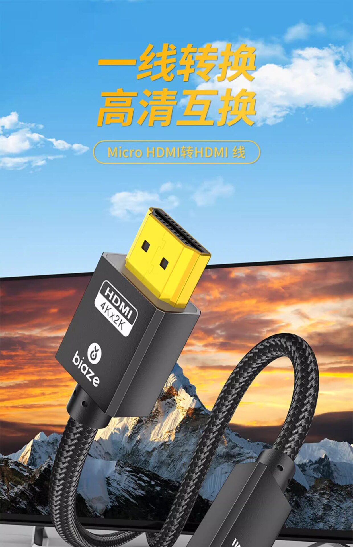 Biaz Mini HDMI to HDMI and Mini HDMI to HDMI Mini 4K60Hz Hd Conversion Cable