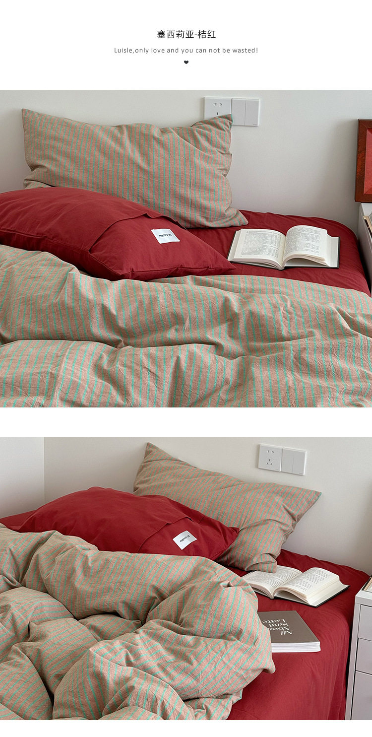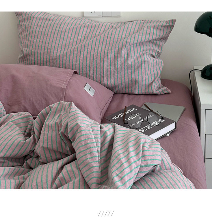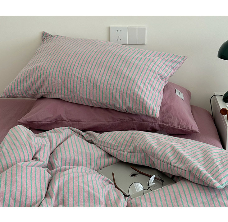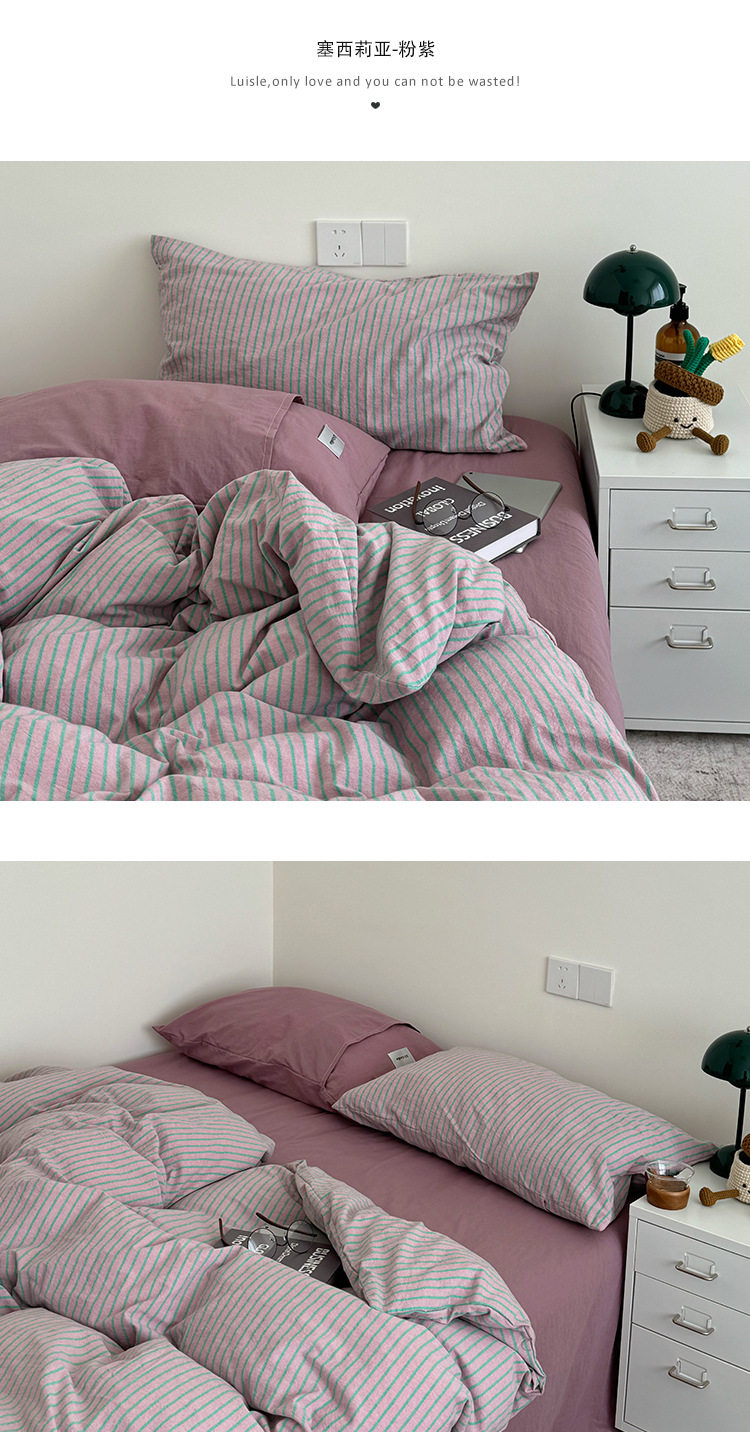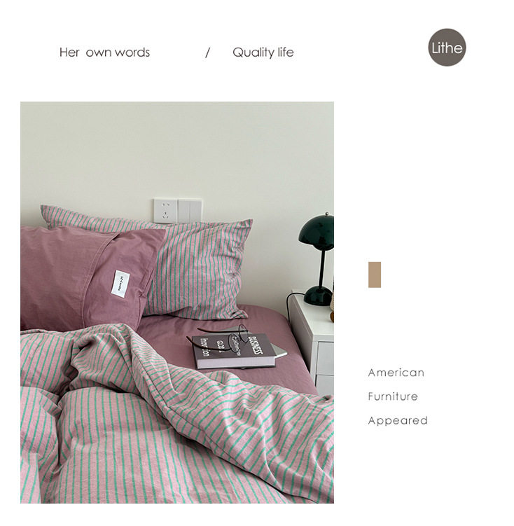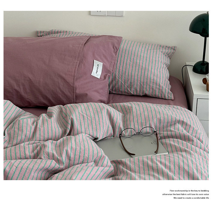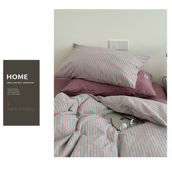 Wholesale Ins Japanese Simple Mix and Match Stripesd Cotton Four-Piece Set Scandinavian Style Cotton Yarn-Dyed Washed Cotton Four-Piece Set