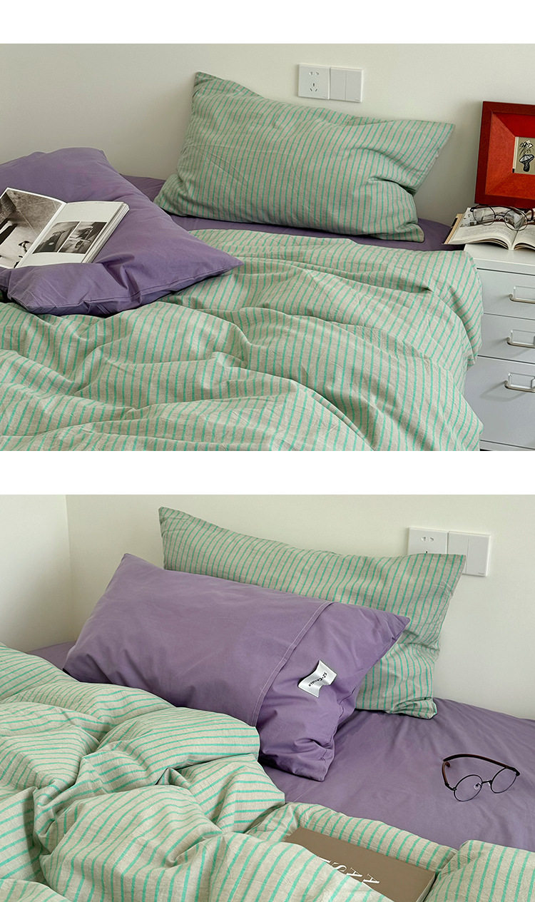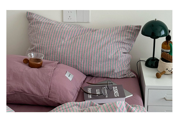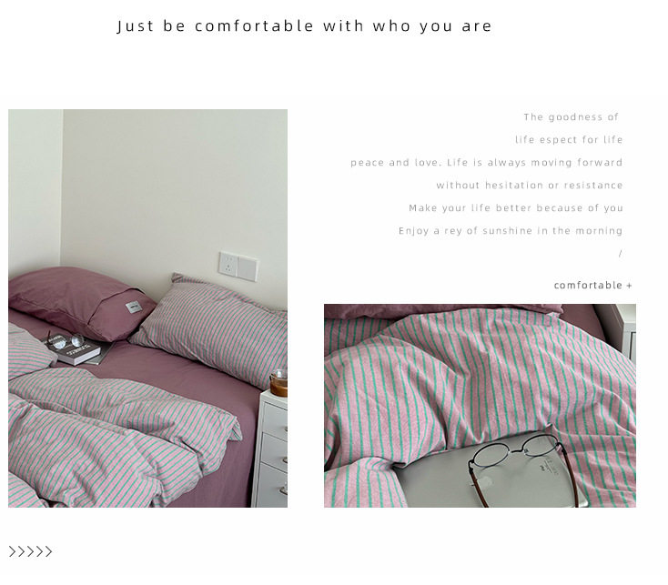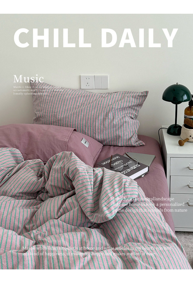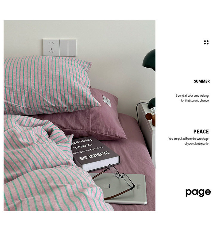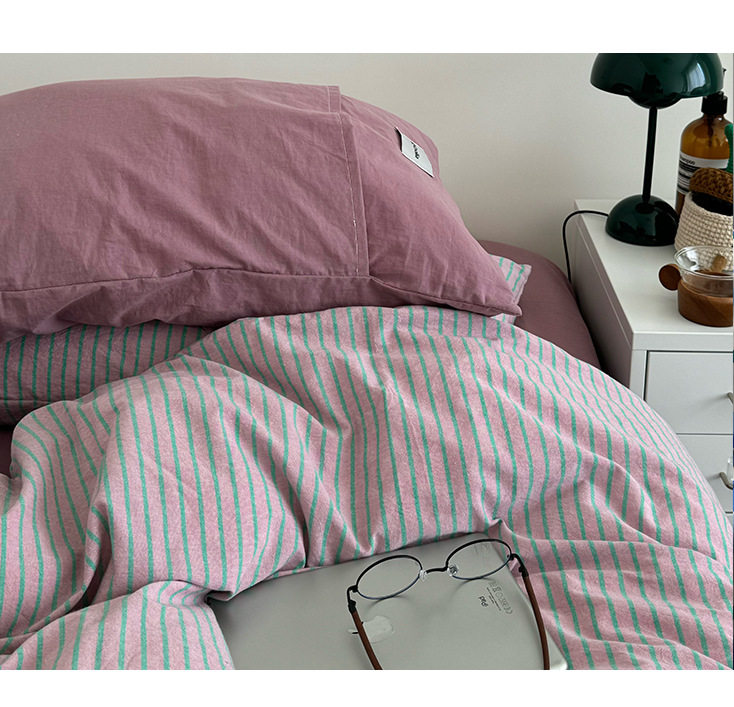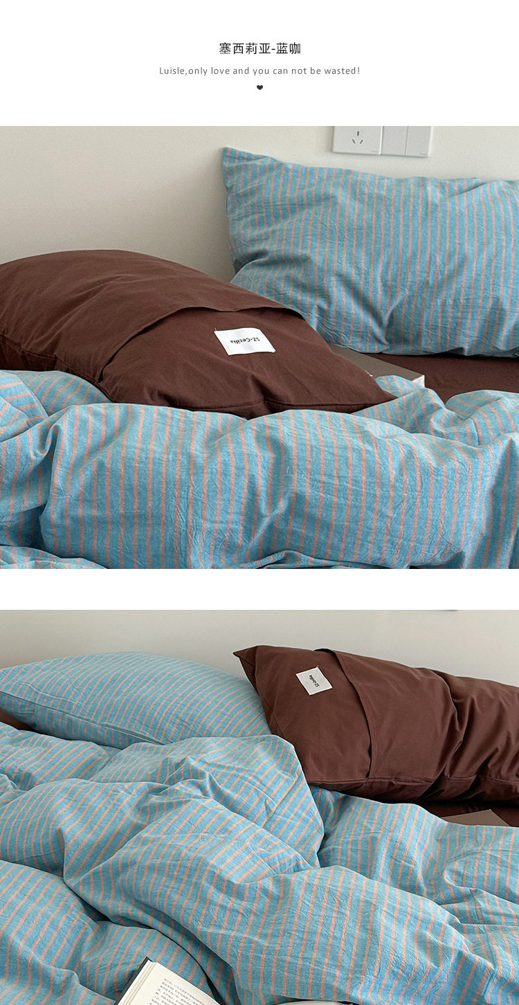 Wholesale Ins Japanese Simple Mix and Match Stripesd Cotton Four-Piece Set Scandinavian Style Cotton Yarn-Dyed Washed Cotton Four-Piece Set