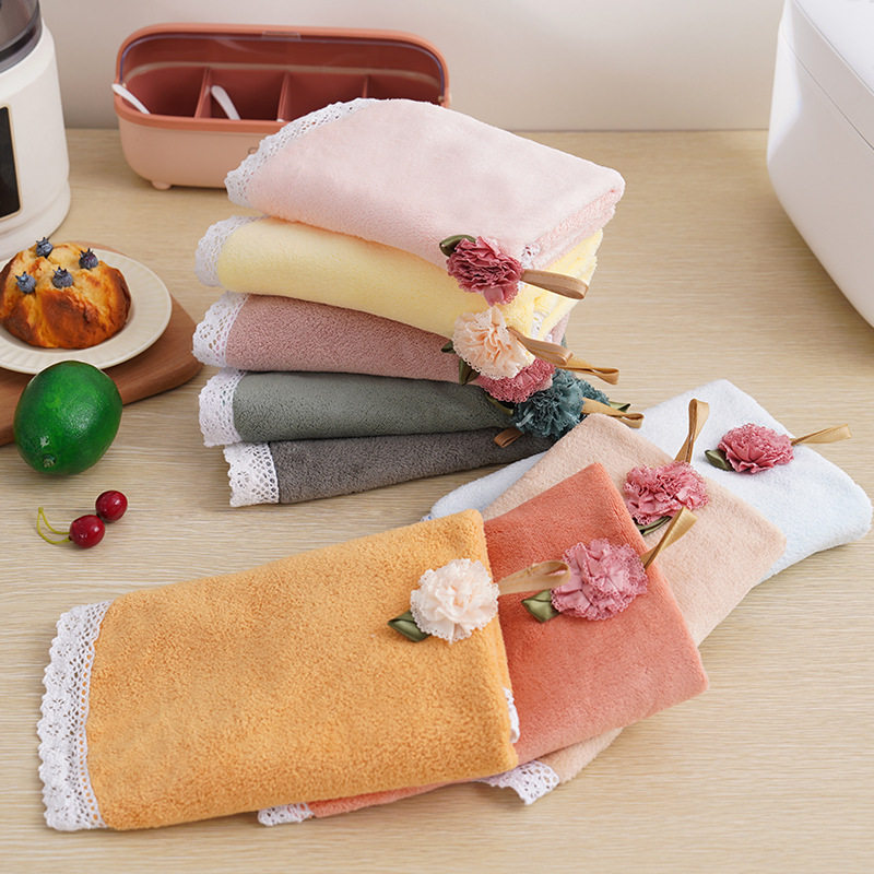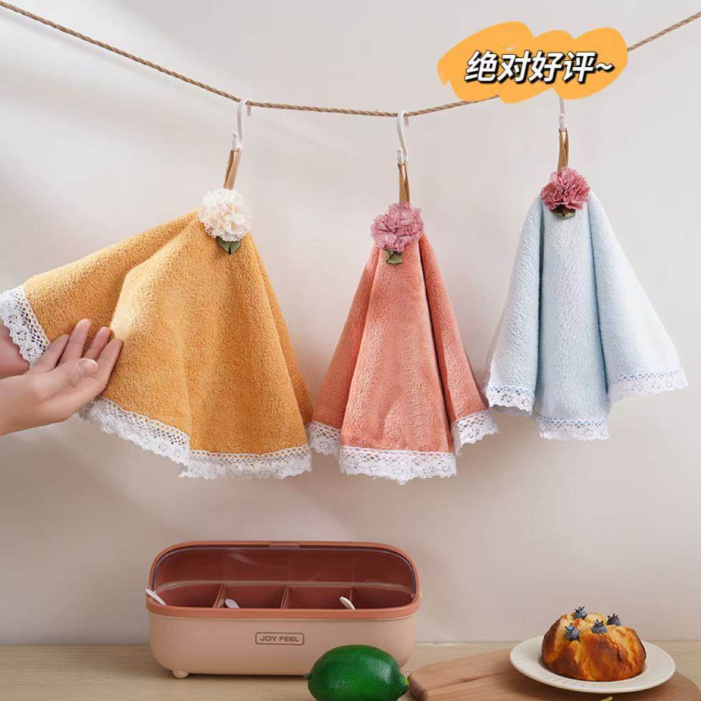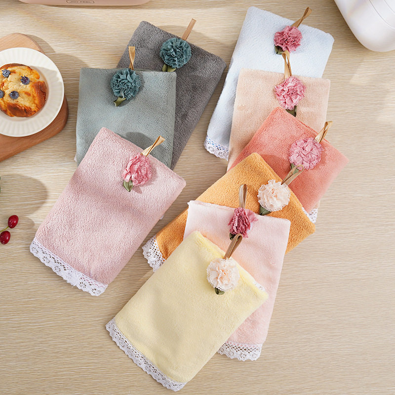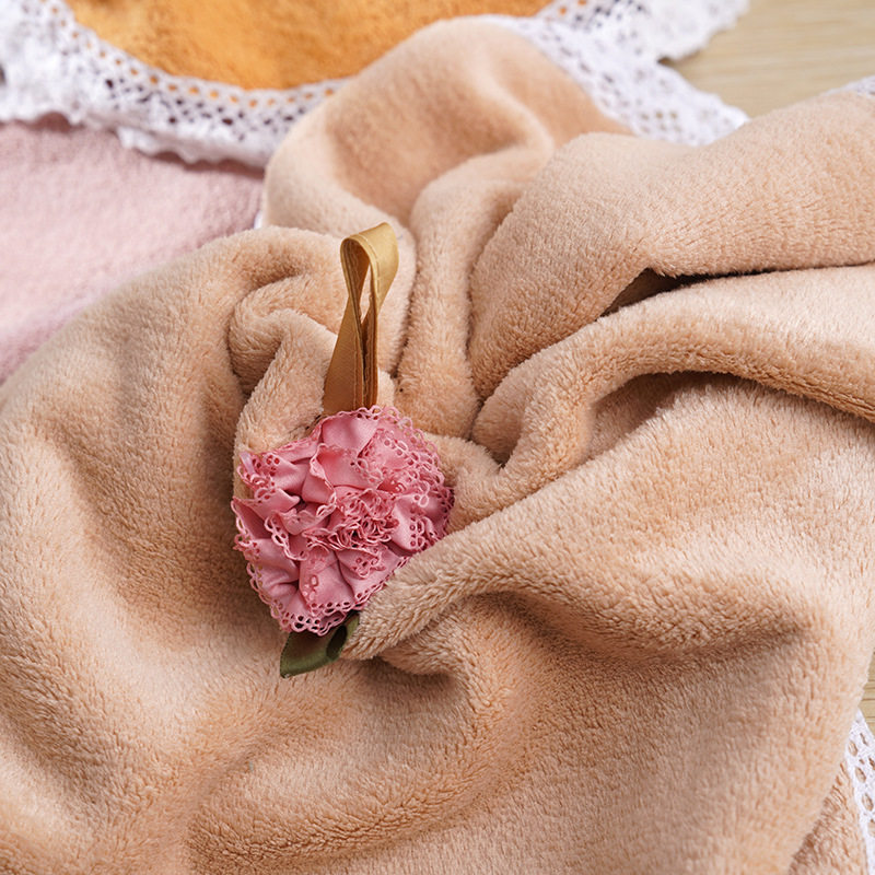 Hangable Extremed Coral Fleece Lace Hand Towel Soft Absorbent Lazy Kitchen Household Multifunctional Cover Towel Shake