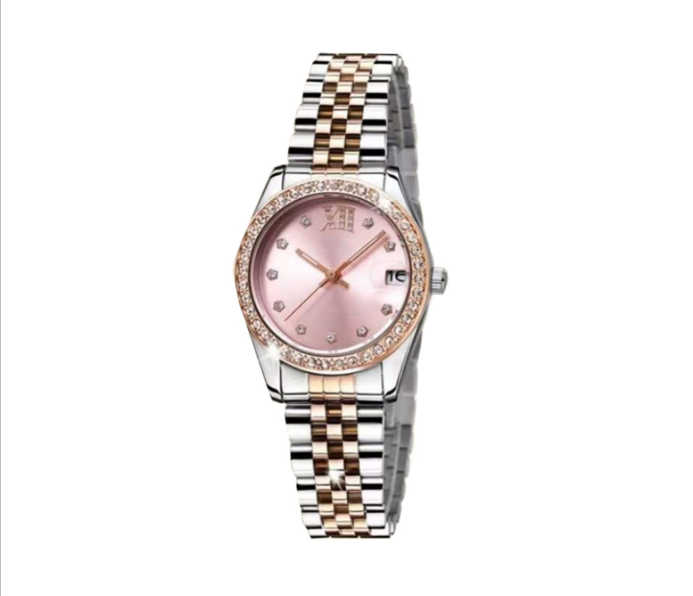 Pink Girl Stainless Steel Women's Watch Quartz Watch Business Dual Calendar Waterproof Watch Large Dial Steel Band Watch Business