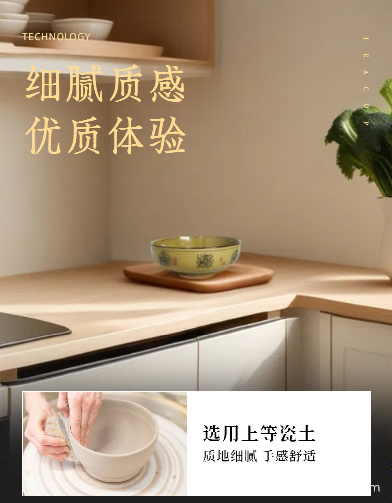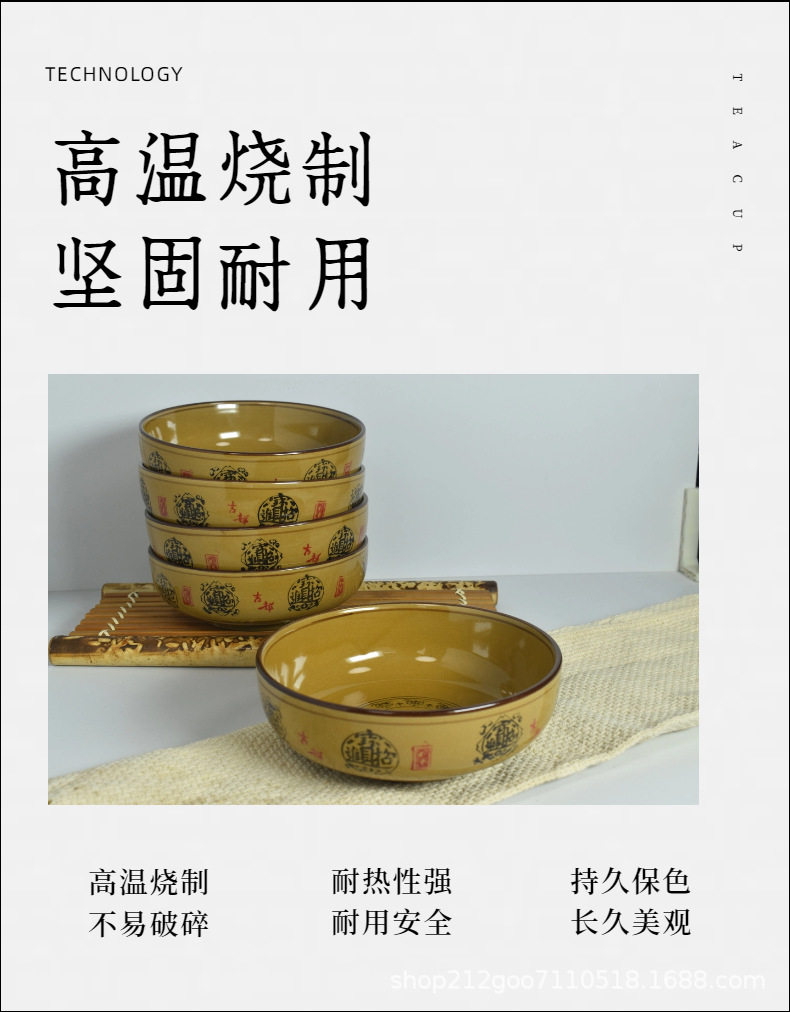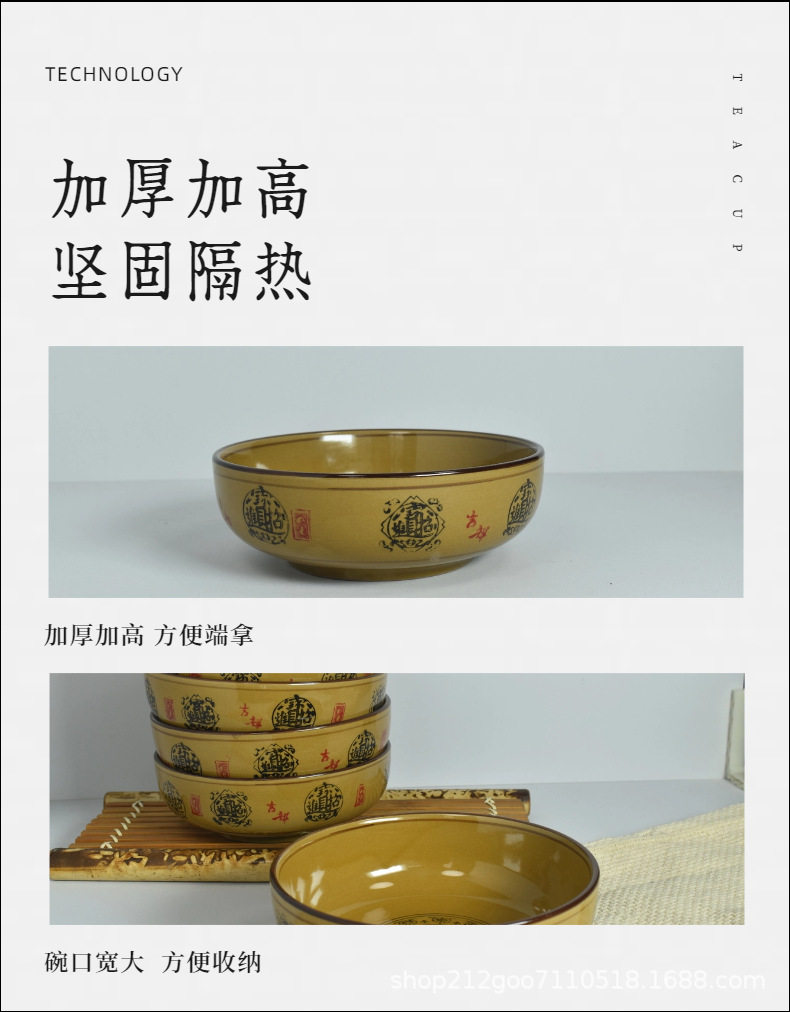 Wholesale ceramic household soup bowl yellow glaze 8 inch Japanese bowl malatang bowl ramen bowl rice noodle bowl snail powder bowl