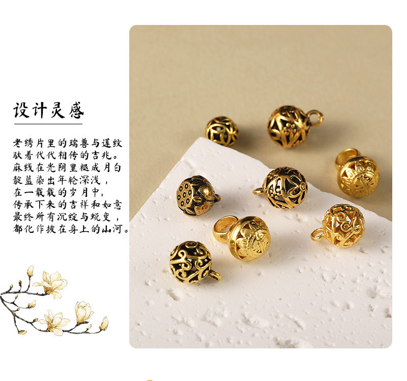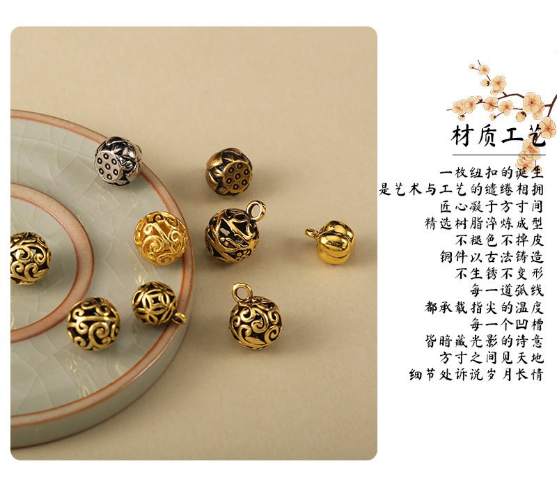 | Specifications and models | Hollow xiangyun buckle-ancient gold,Hollow xiangyun buckle-bright gold,Auspicious chrysanthemum buckle-ancient gold,Ulijig pattern-bright gold,Auspicious longevity pattern buckle-bright gold,Solid lotus seed buckle-ancient silver,Solid lotus seed buckle-bronze,Making money copper coin buckle-ancient gold,Persimmon ruyi solid-ancient gold |