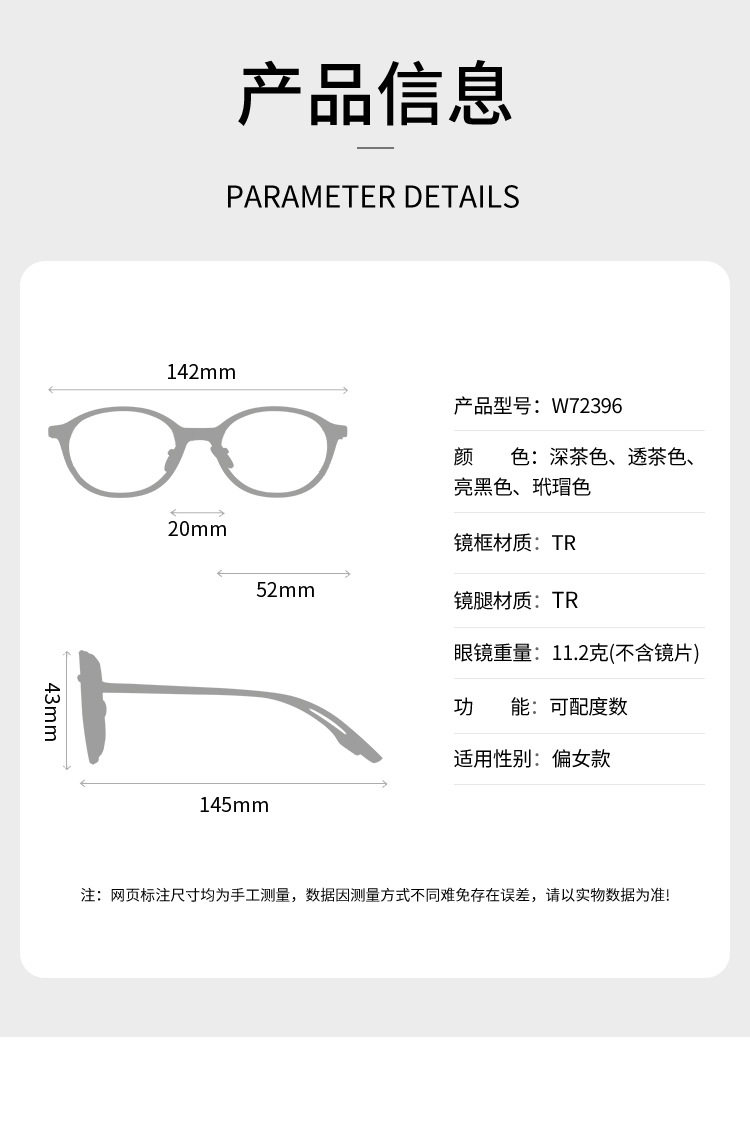 | Frame color | Gloss black/c1,Transparent brown/c2,Dark brown/c4,Tortoiseshell/c6,Transparent gray/c3,Olive green/c5 |
