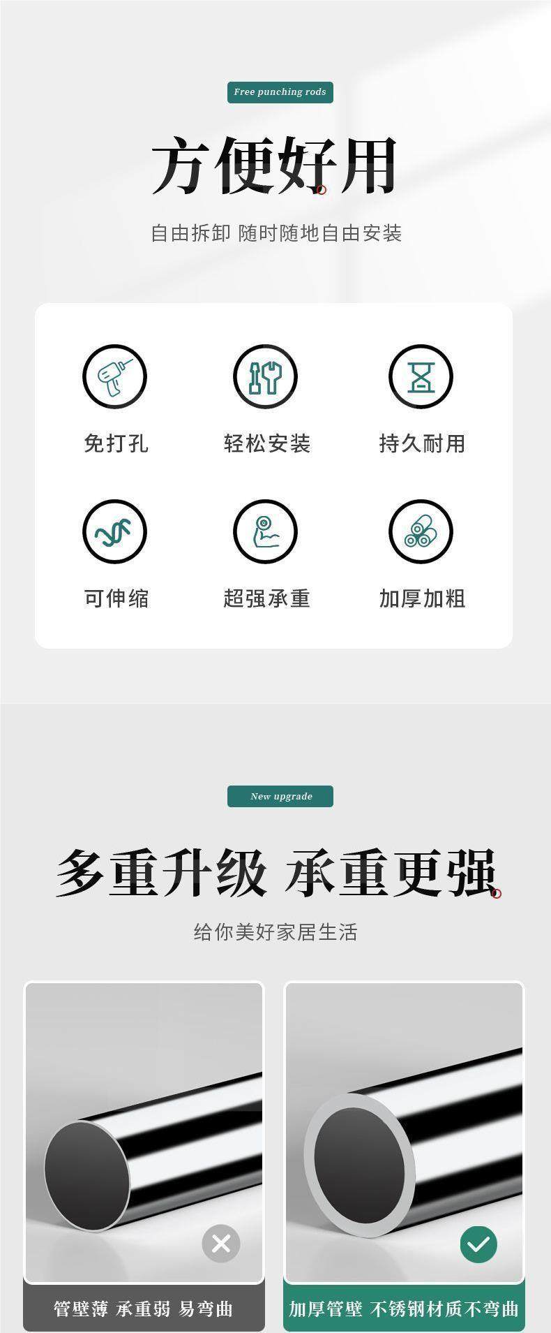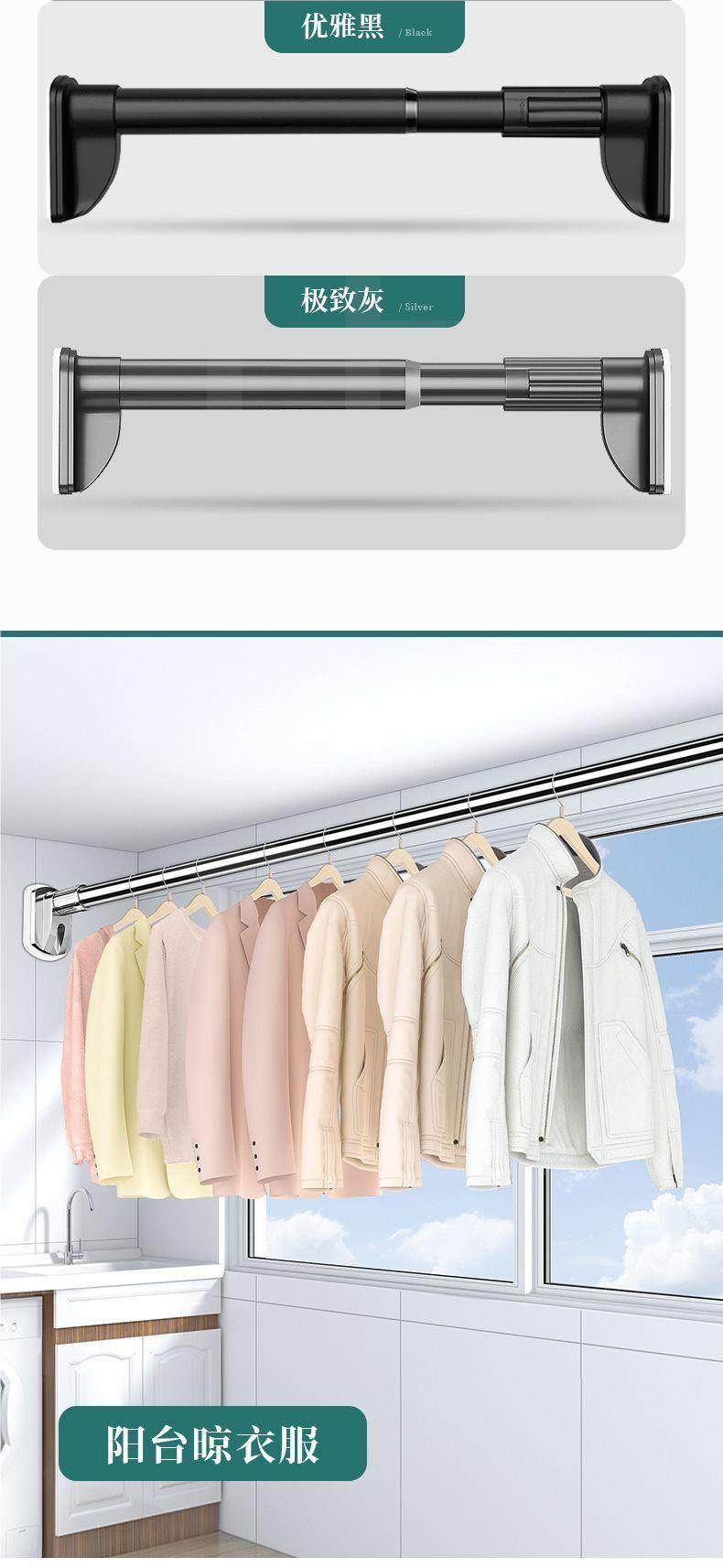 Clothes Drying Rod Punch-free Telescopic Shrinkable Curtain Rod Clothes Hanging Balcony Steel Hanger Bathroom Shower Curtain Rod Towel Rod