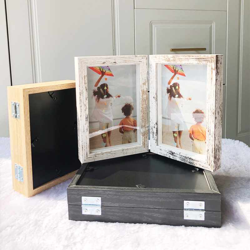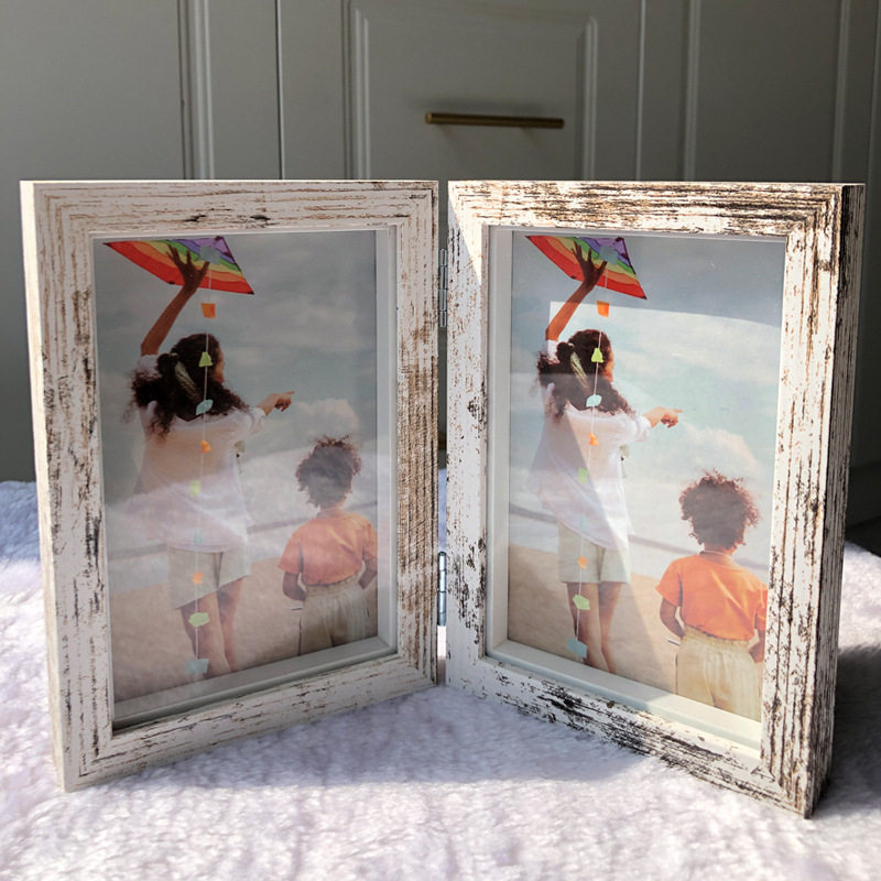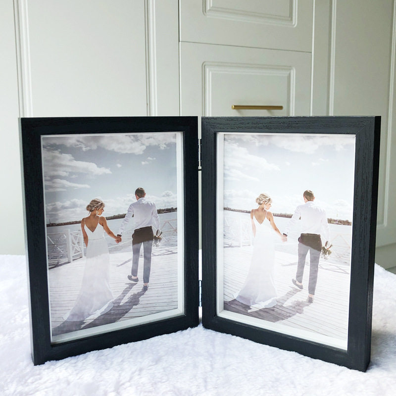 Creative One-piece Combination Folding Photo Frame Two-piece Wooden Photo Frame Photo Table Photo Frame Table Double-piece Photo Frame