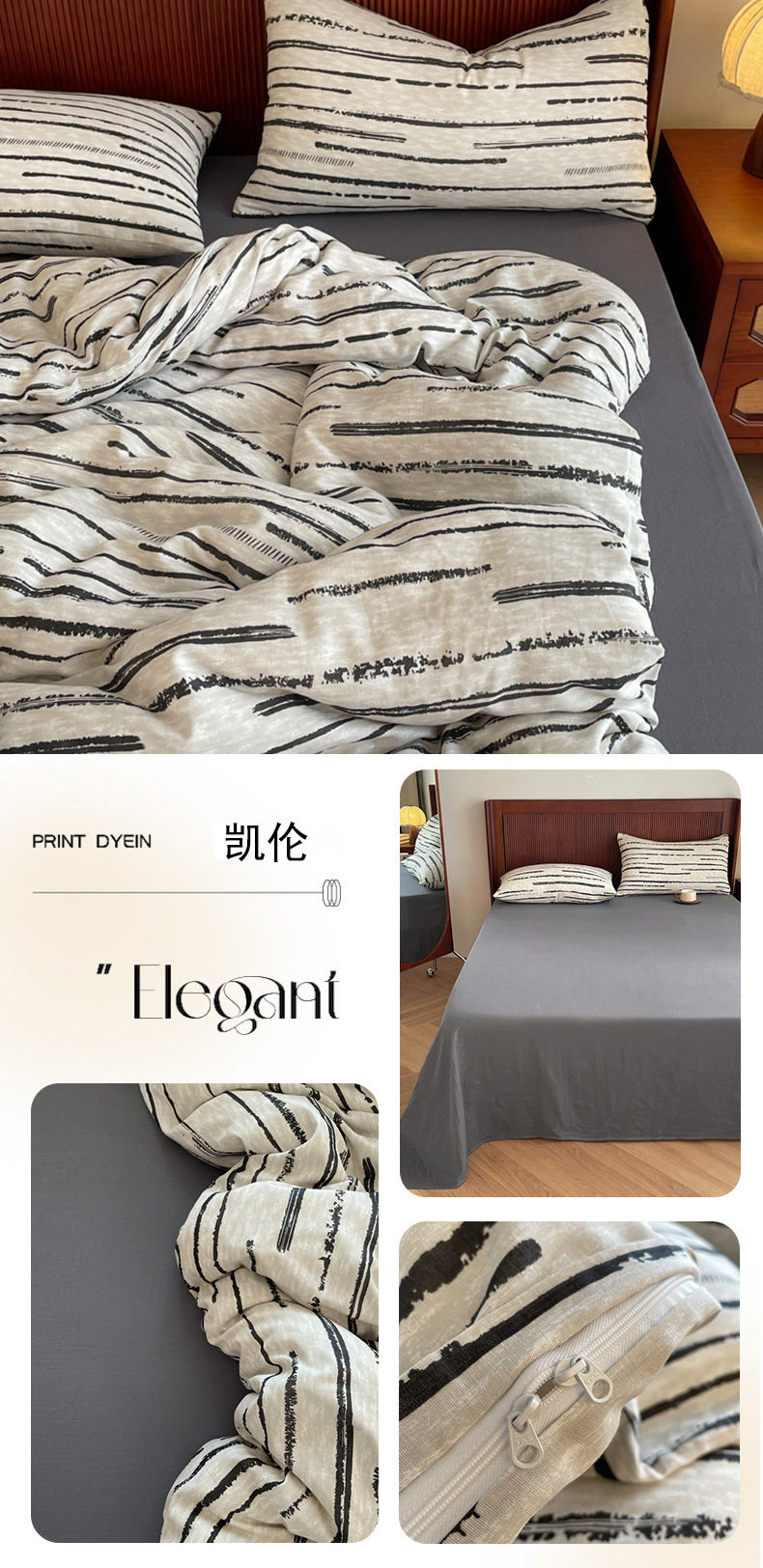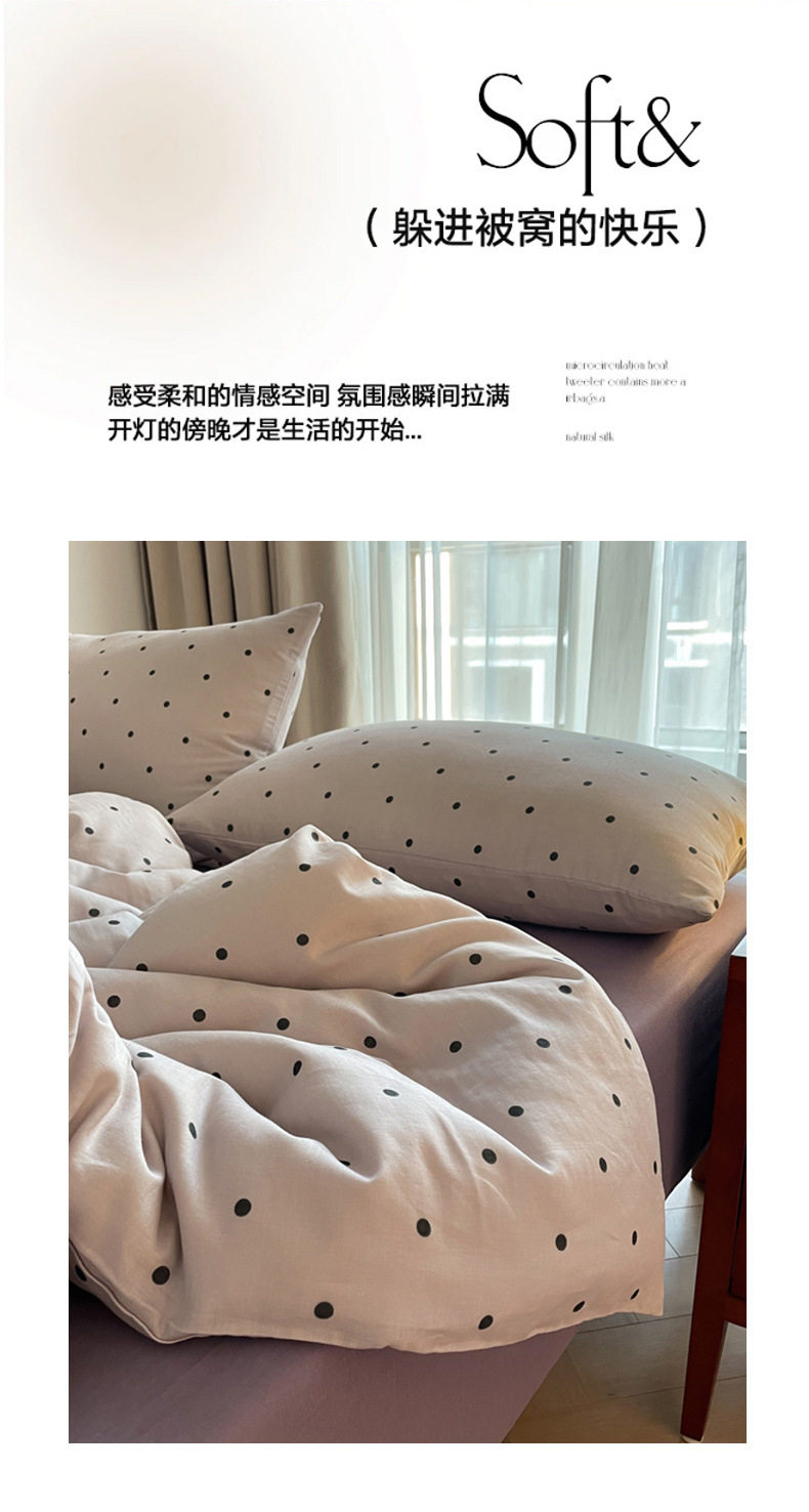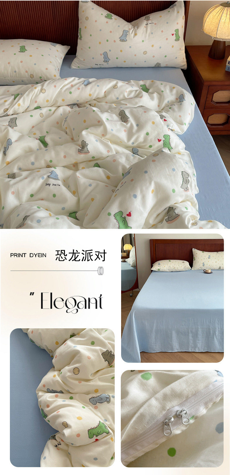 Spring and Summer Class a Aerobic Cotton Double-Layer Yarn Four-Piece Bedding Set Student Dormitory Bed Bed Sheets Quilt Cover Three-Piece Set