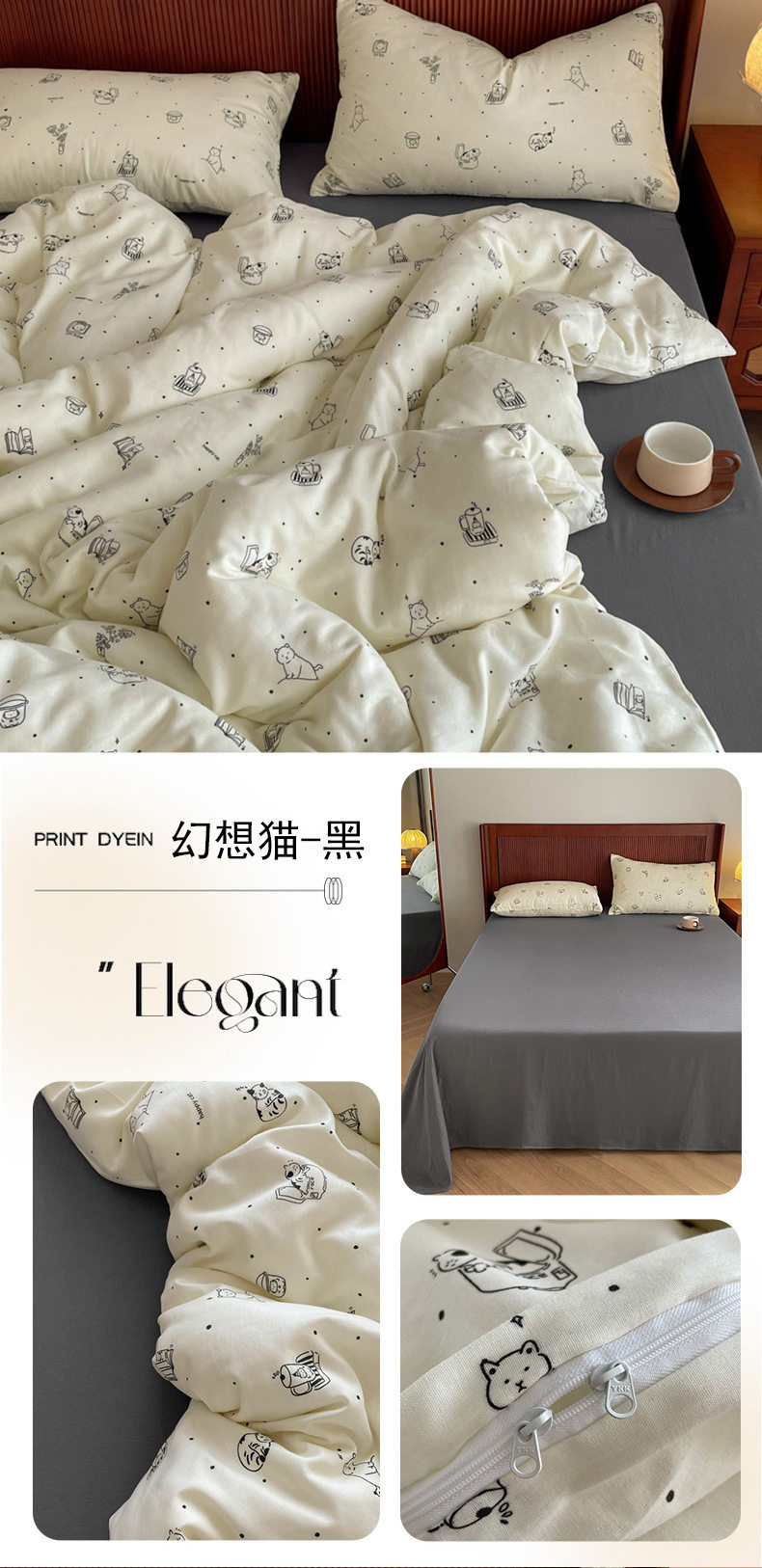 | Dimensions | 1.2m bed sheet three-piece set [quilt cover 150*200],1.5m bed sheet four-piece set [quilt cover 200*230],1.8m bed sheet four-piece set [quilt cover 200*230],2.0m bed sheet four-piece set [quilt cover 220*240],1.5m fitted sheet set of four [quilt cover 200*230],1.8m fitted sheet set of four [quilt cover 200*230] |