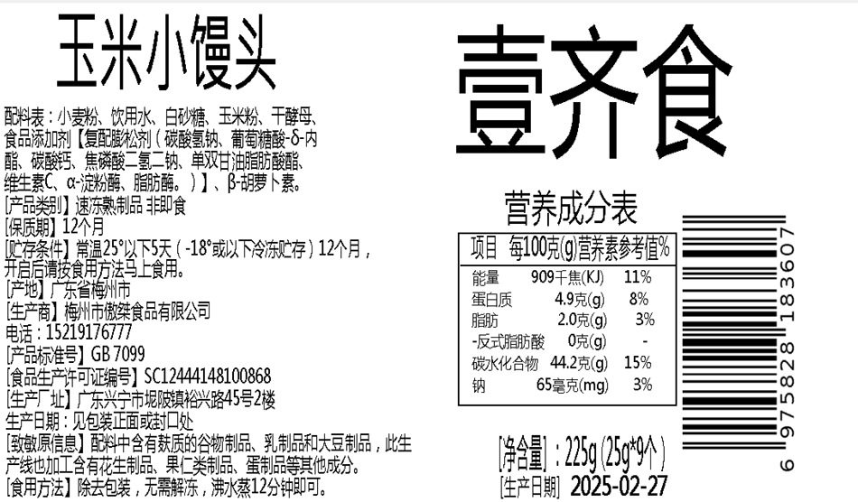| Packaging specifications | Corn steamed buns*1 pack of 9 pieces,Corn steamed buns*2,Corn steamed buns*3,Corn steamed buns*4,Corn steamed buns*5 |