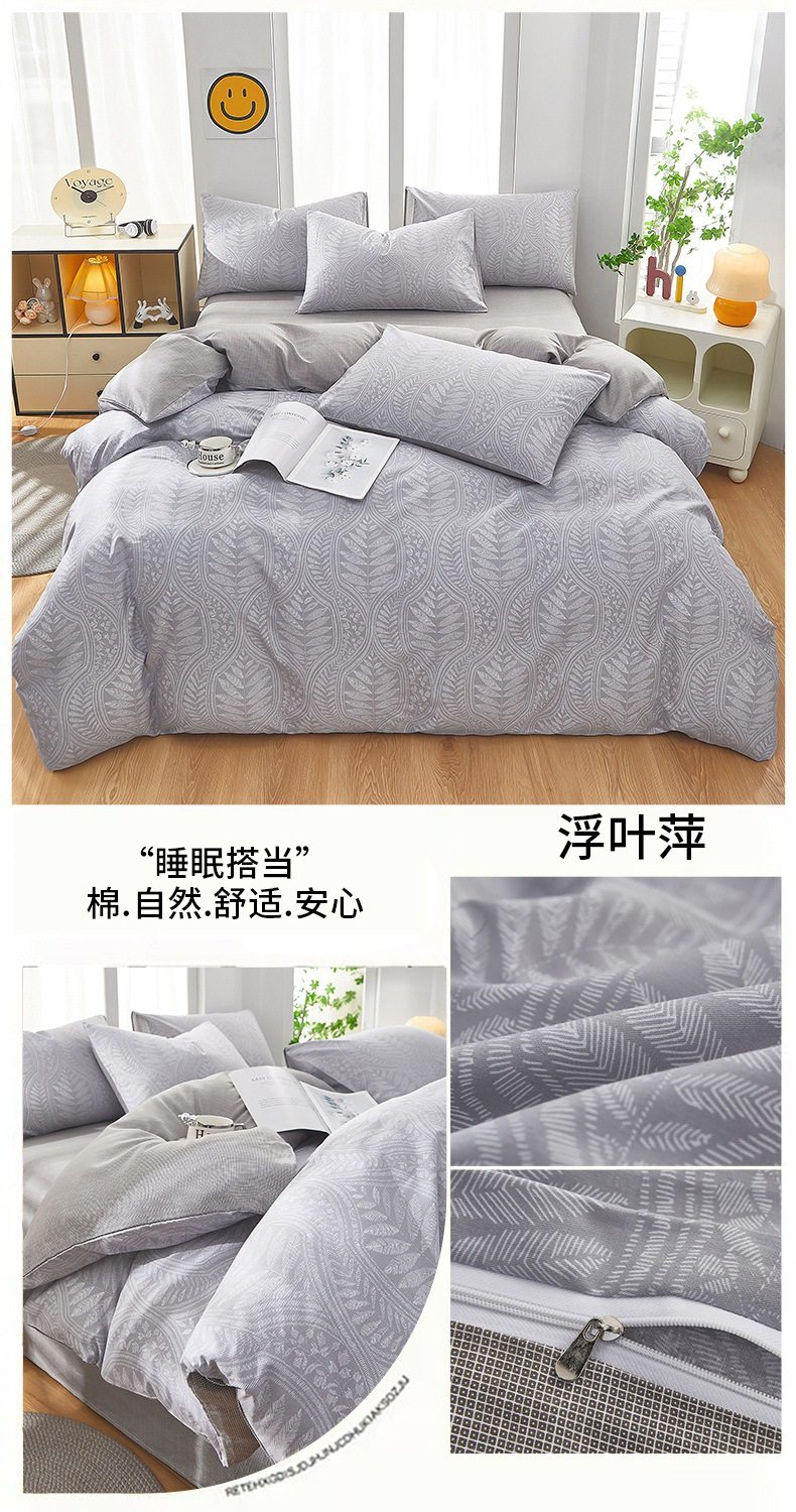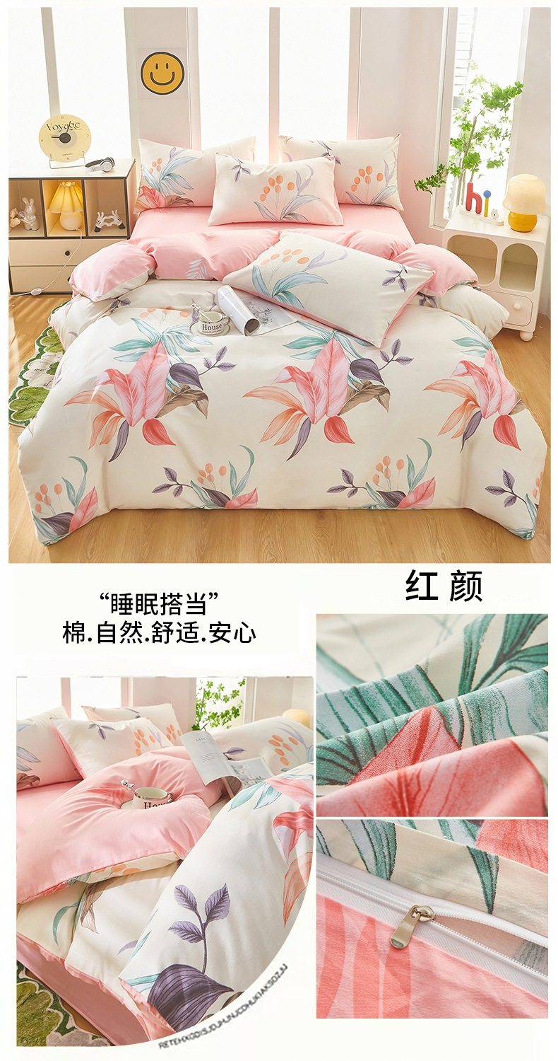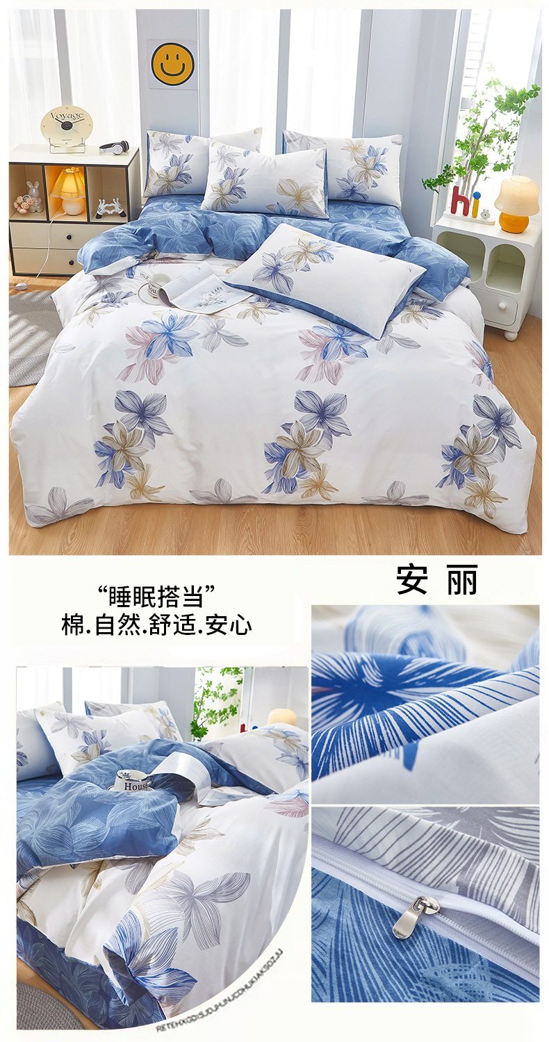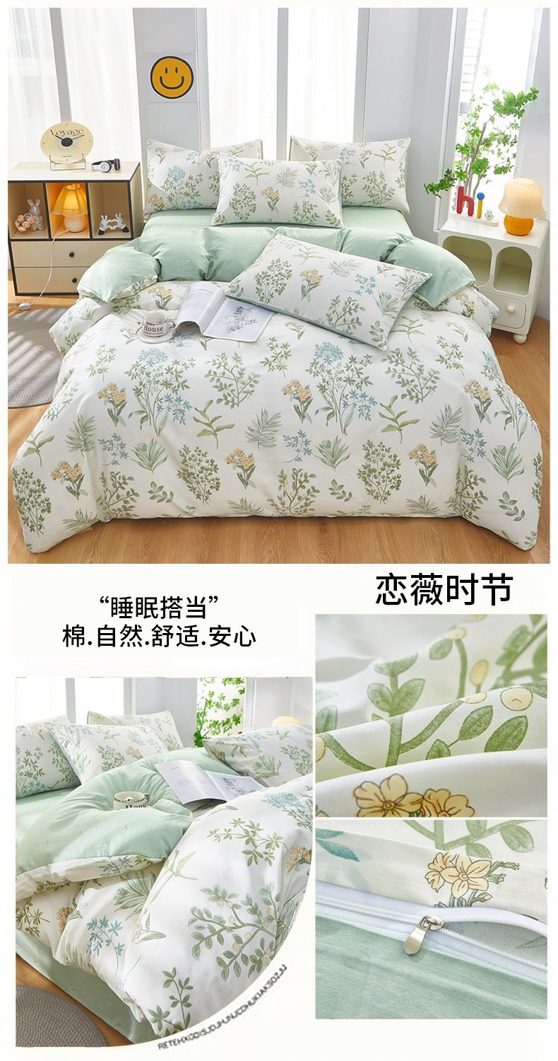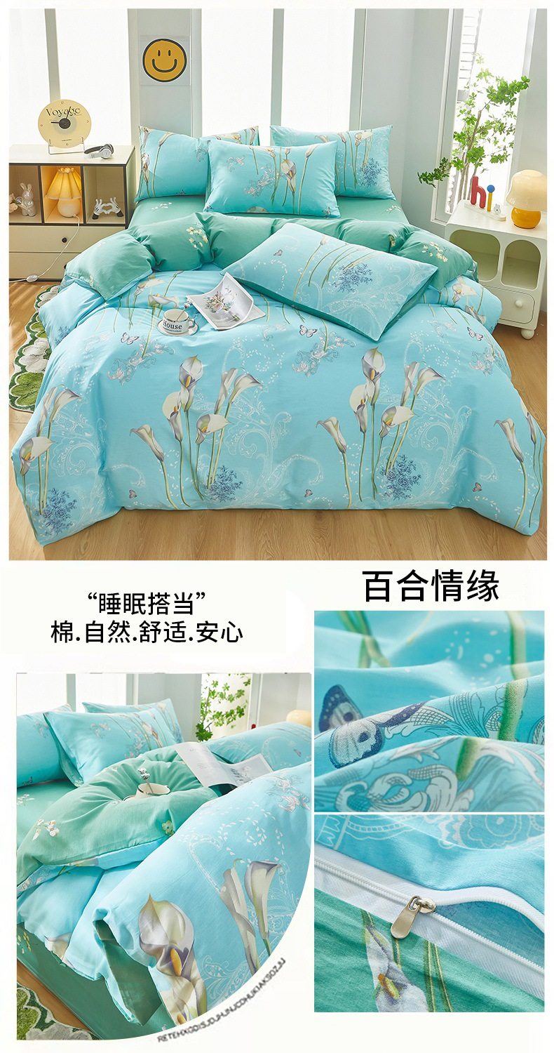 | Dimensions | 1.2 three-piece bed sheet set-quilt cover 150*200,1.2 four-piece bed sheet set-quilt cover 150*200,1.5-sheet four-piece set-quilt cover 180*220,1.5-sheet four-piece set-quilt cover 200*230,1.8-sheet four-piece set-quilt cover 200*230,2.0 four-piece bed sheet set-quilt cover 220*240,150*200 single quilt cover,180*220 single quilt cover,200*230 single quilt cover,220*240 single quilt cover,150*200 single quilt cover + pillowcase pair,180*220 single quilt cover + pillowcase pair,200*230 single quilt cover + pillowcase pair,220*240 single quilt cover + pillowcase pair |