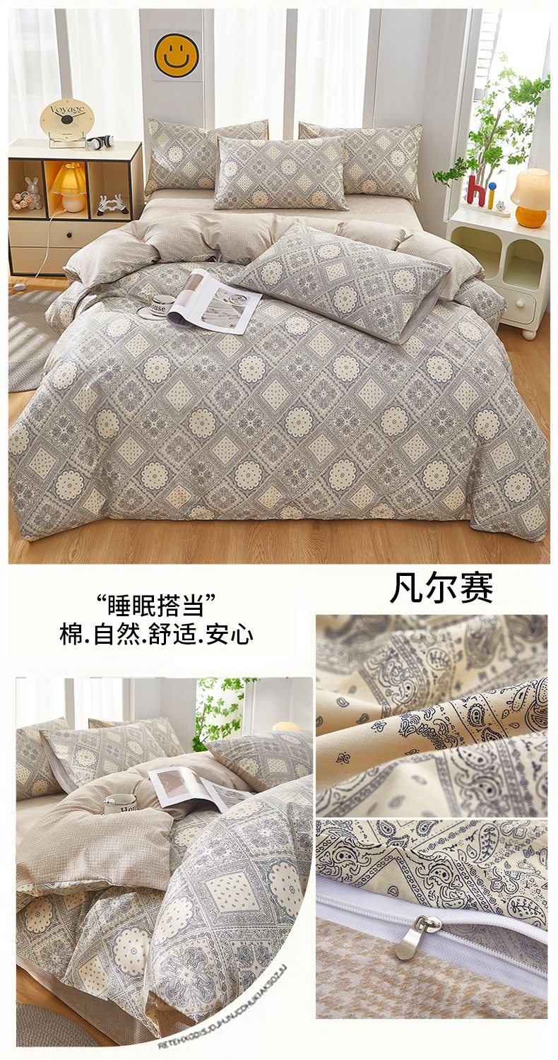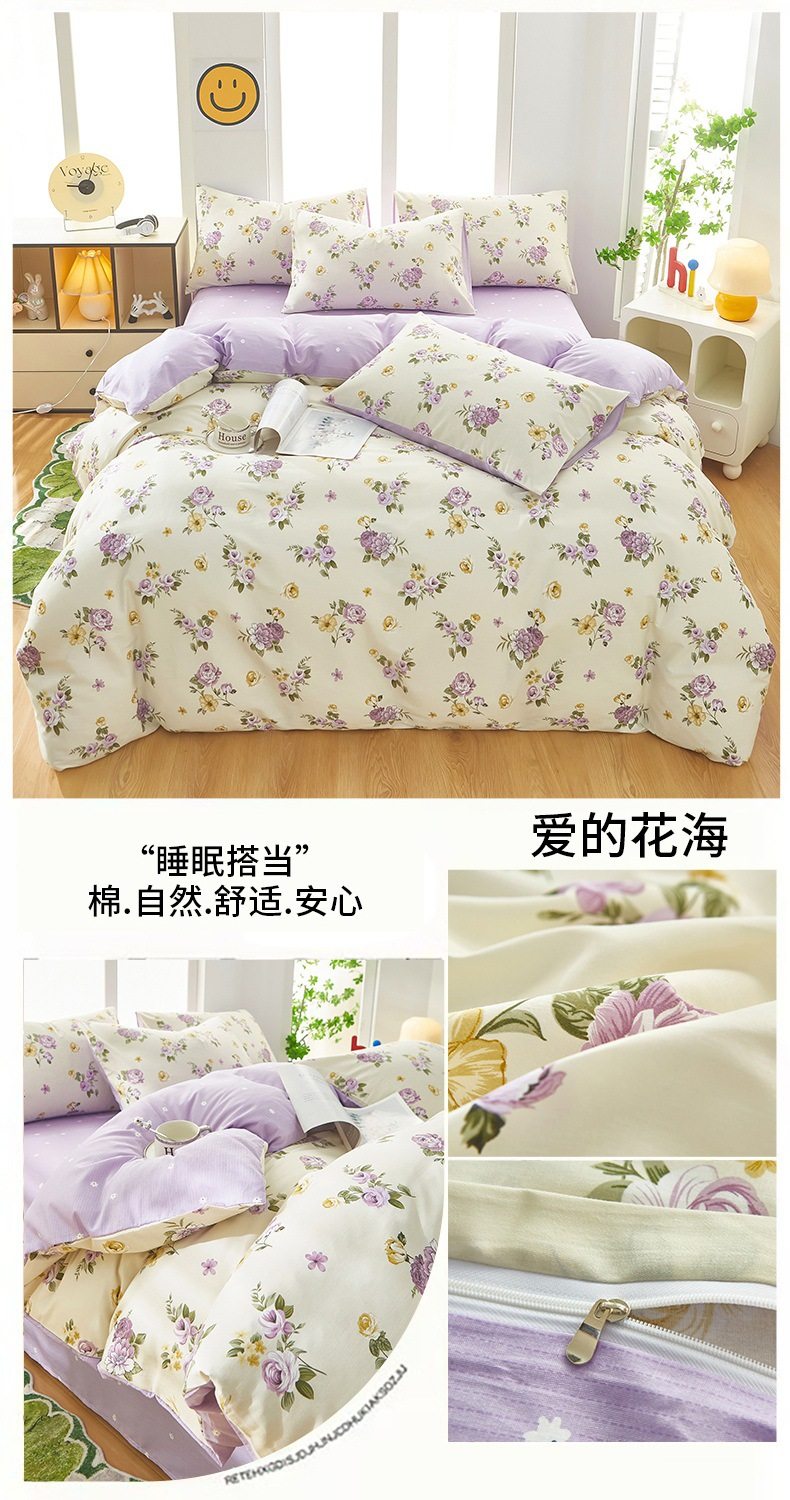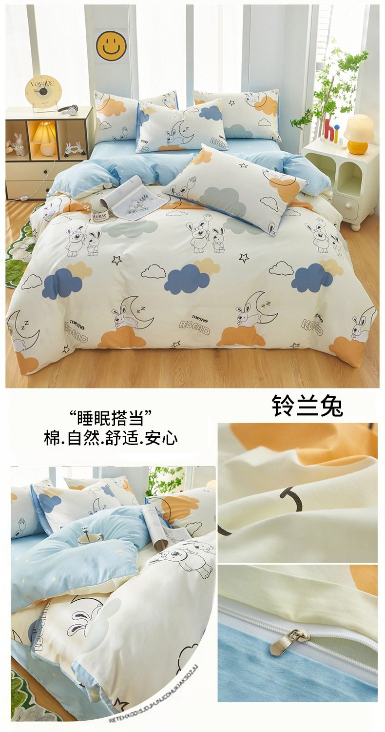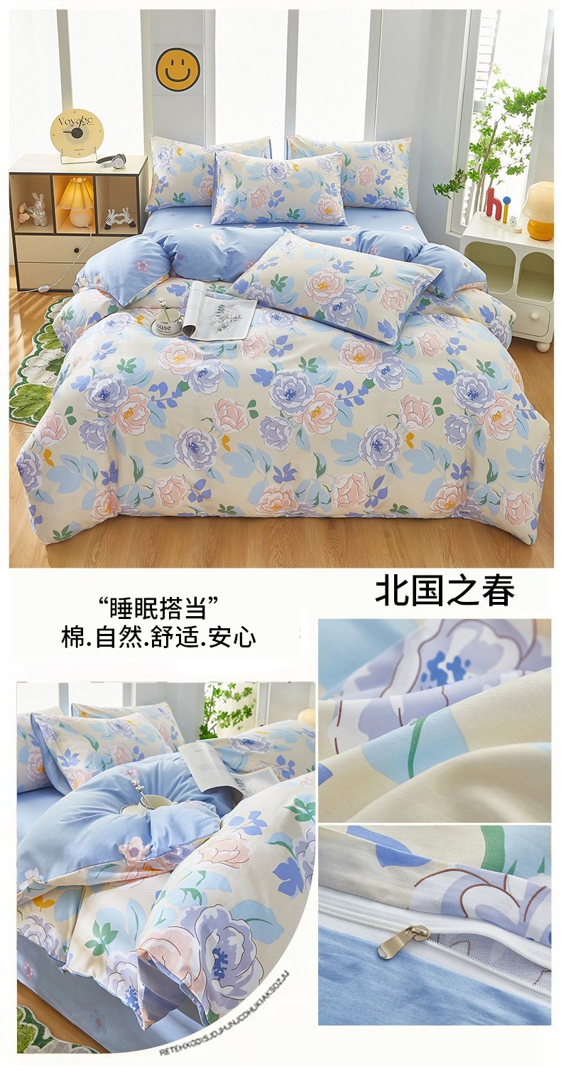 | Dimensions | 1.2 three-piece bed sheet set-quilt cover 150*200,1.2 four-piece bed sheet set-quilt cover 150*200,1.5-sheet four-piece set-quilt cover 180*220,1.5-sheet four-piece set-quilt cover 200*230,1.8-sheet four-piece set-quilt cover 200*230,2.0 four-piece bed sheet set-quilt cover 220*240,150*200 single quilt cover,180*220 single quilt cover,200*230 single quilt cover,220*240 single quilt cover,150*200 single quilt cover + pillowcase pair,180*220 single quilt cover + pillowcase pair,200*230 single quilt cover + pillowcase pair,220*240 single quilt cover + pillowcase pair |