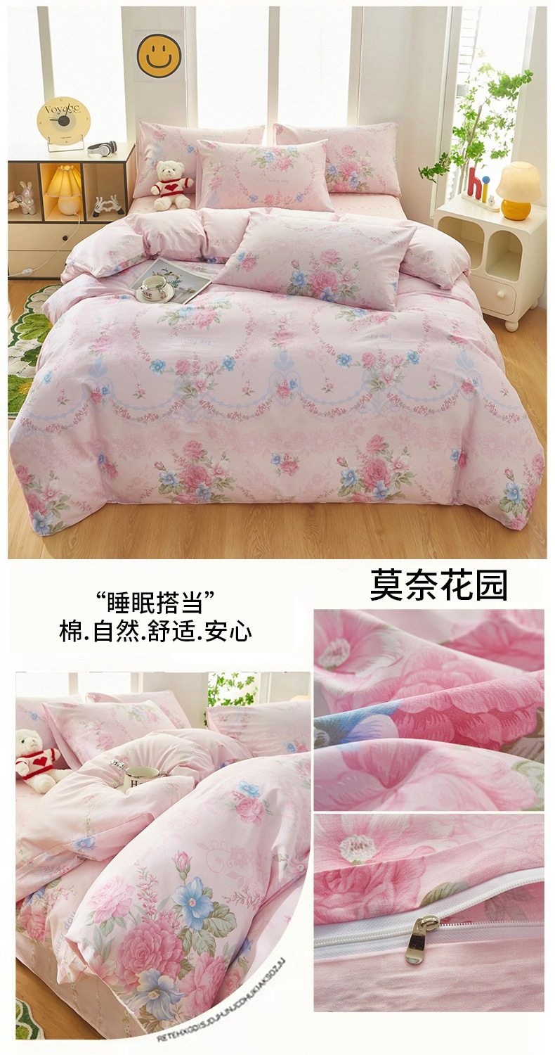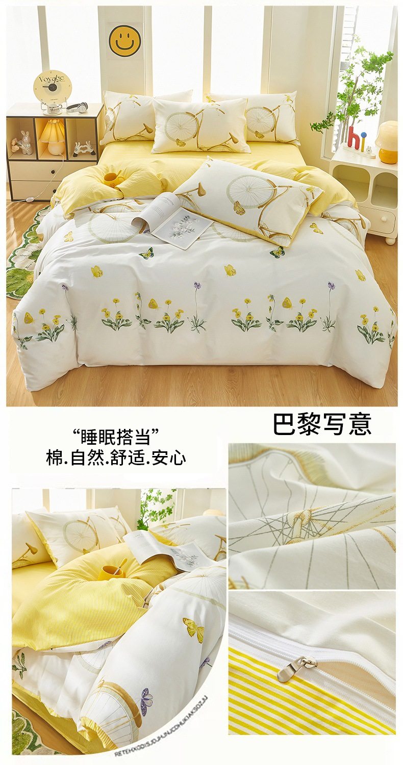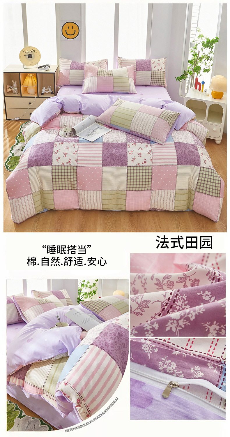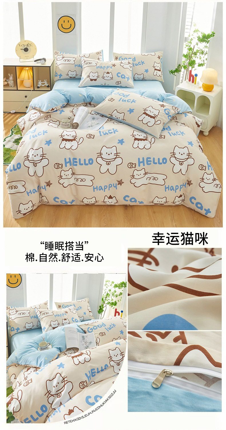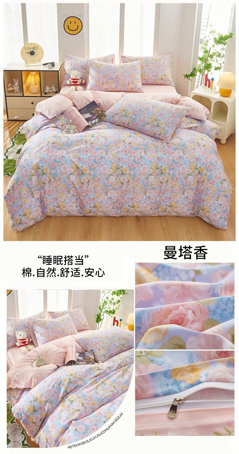 | Dimensions | 1.2 three-piece bed sheet set-quilt cover 150*200,1.2 four-piece bed sheet set-quilt cover 150*200,1.5-sheet four-piece set-quilt cover 180*220,1.5-sheet four-piece set-quilt cover 200*230,1.8-sheet four-piece set-quilt cover 200*230,2.0 four-piece bed sheet set-quilt cover 220*240,150*200 single quilt cover,180*220 single quilt cover,200*230 single quilt cover,220*240 single quilt cover,150*200 single quilt cover + pillowcase pair,180*220 single quilt cover + pillowcase pair,200*230 single quilt cover + pillowcase pair,220*240 single quilt cover + pillowcase pair |