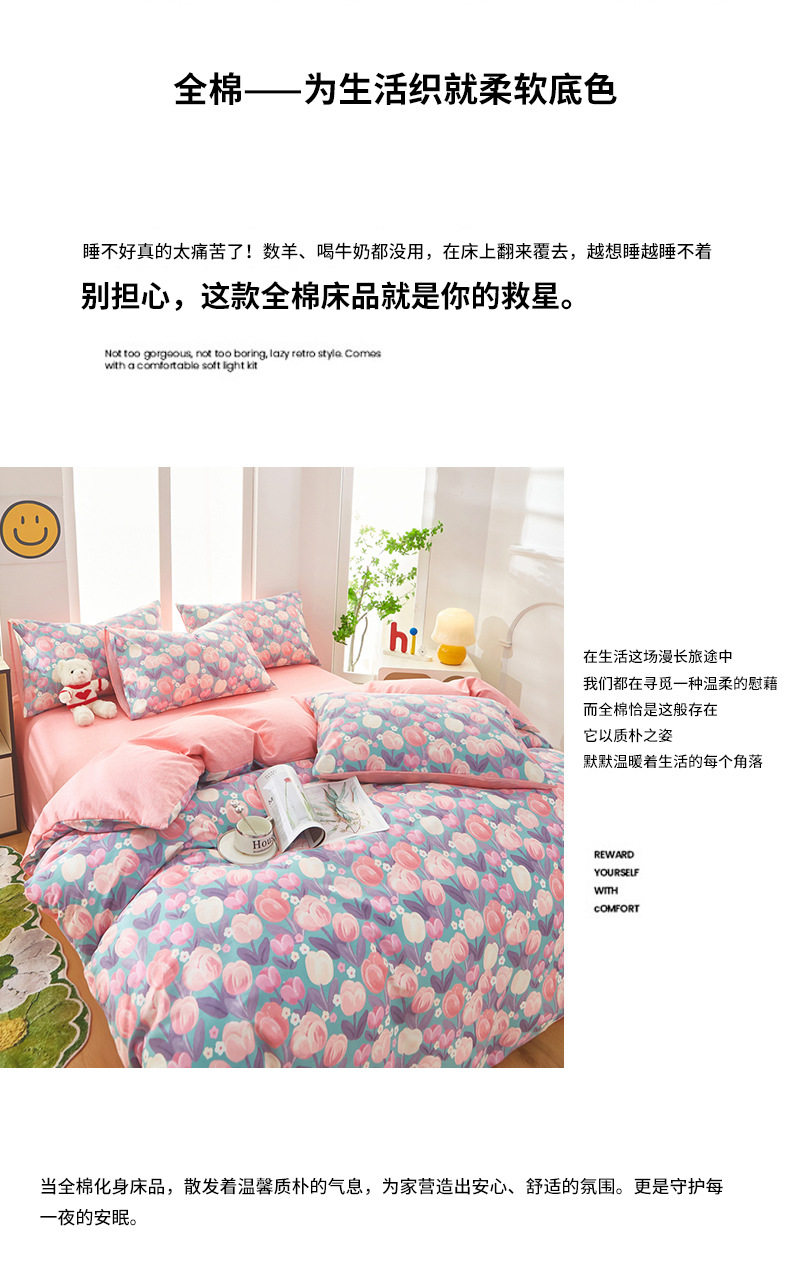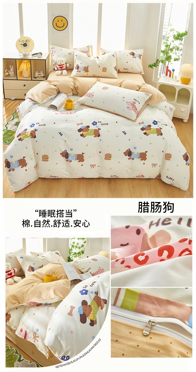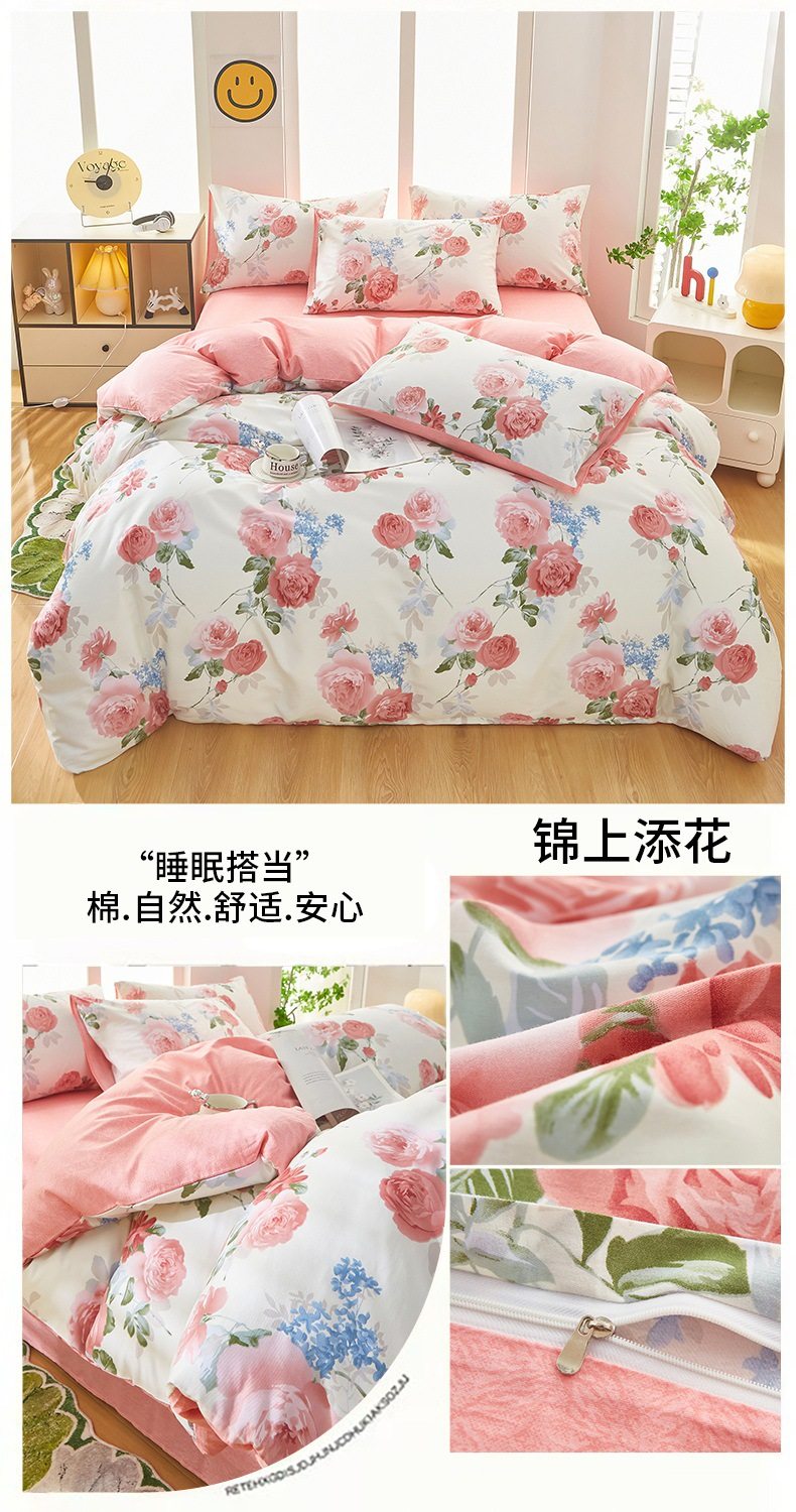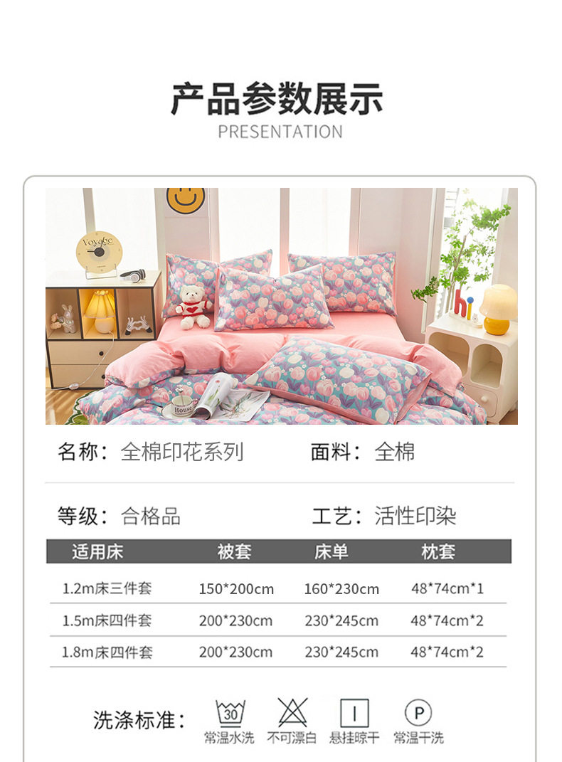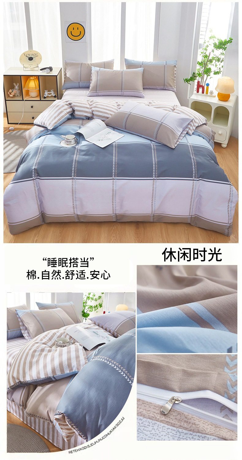 | Dimensions | 1.2 three-piece bed sheet set-quilt cover 150*200,1.2 four-piece bed sheet set-quilt cover 150*200,1.5-sheet four-piece set-quilt cover 180*220,1.5-sheet four-piece set-quilt cover 200*230,1.8-sheet four-piece set-quilt cover 200*230,2.0 four-piece bed sheet set-quilt cover 220*240,150*200 single quilt cover,180*220 single quilt cover,200*230 single quilt cover,220*240 single quilt cover,150*200 single quilt cover + pillowcase pair,180*220 single quilt cover + pillowcase pair,200*230 single quilt cover + pillowcase pair,220*240 single quilt cover + pillowcase pair |