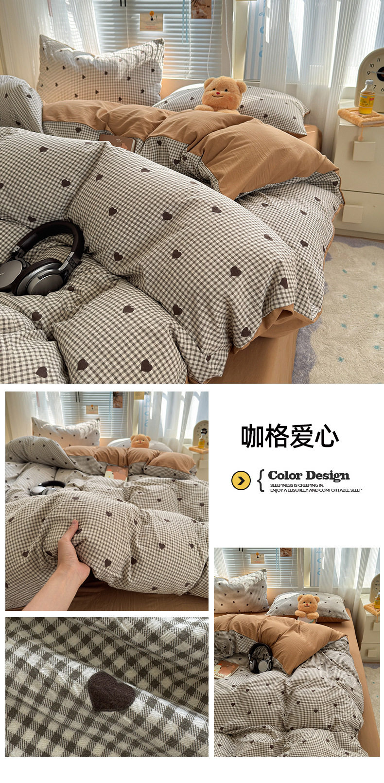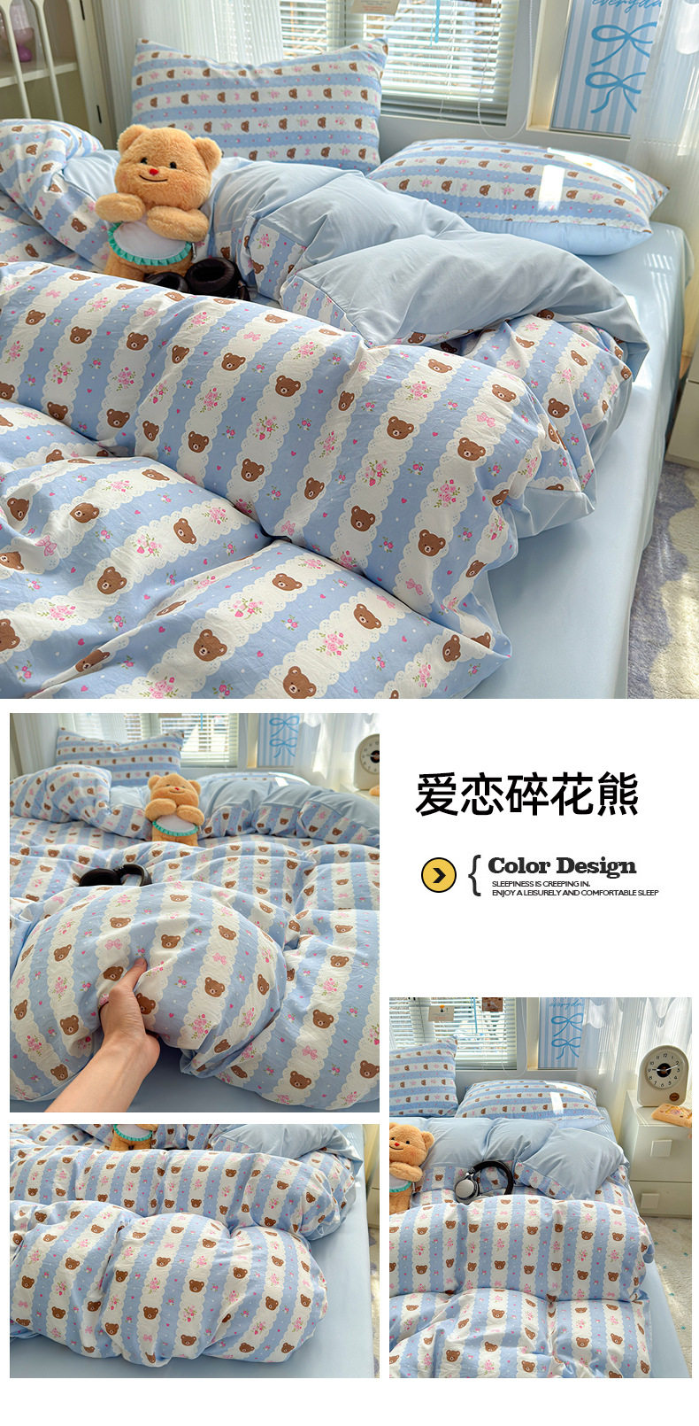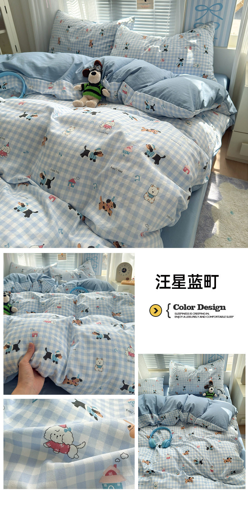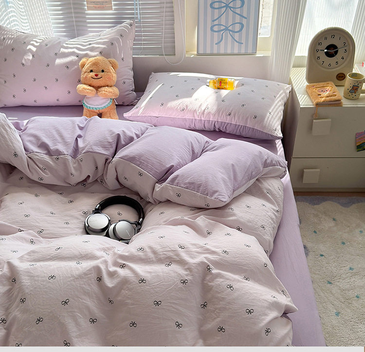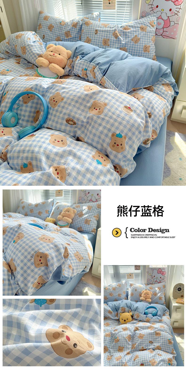Class A water-washed cotton four-piece set student dormitory three-piece set cotton full bedding sheets quilt cover wholesale 4