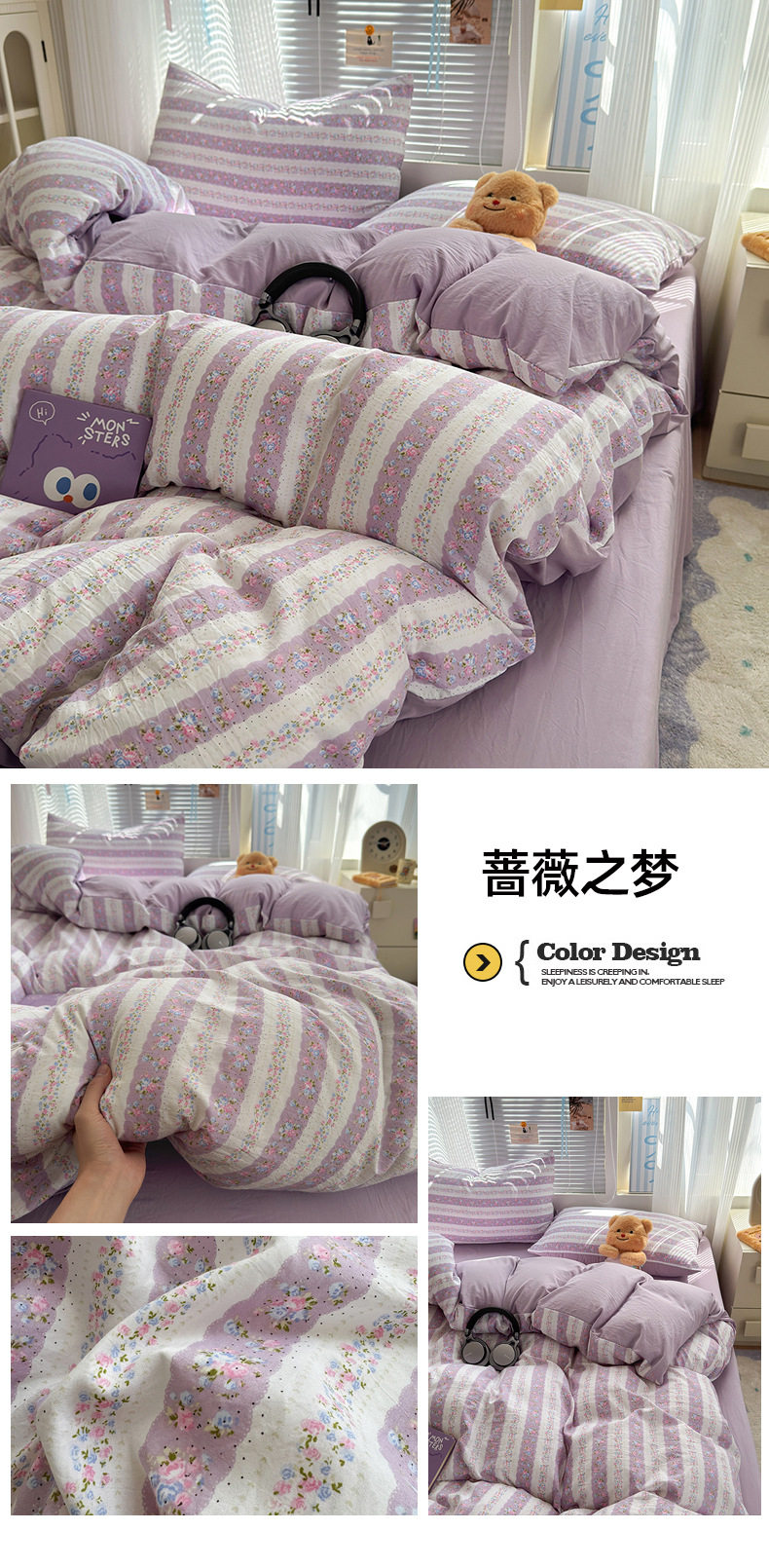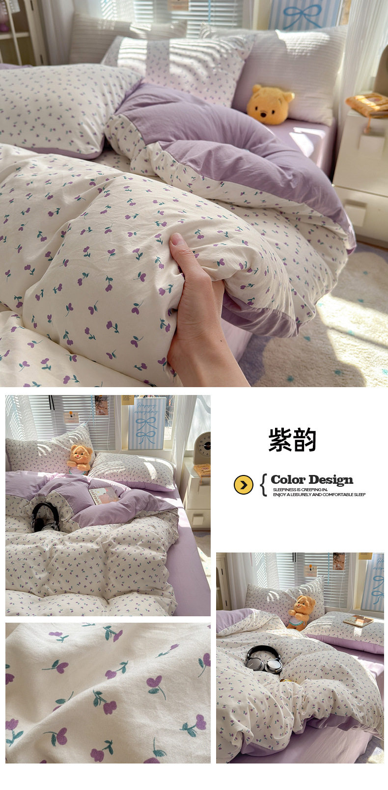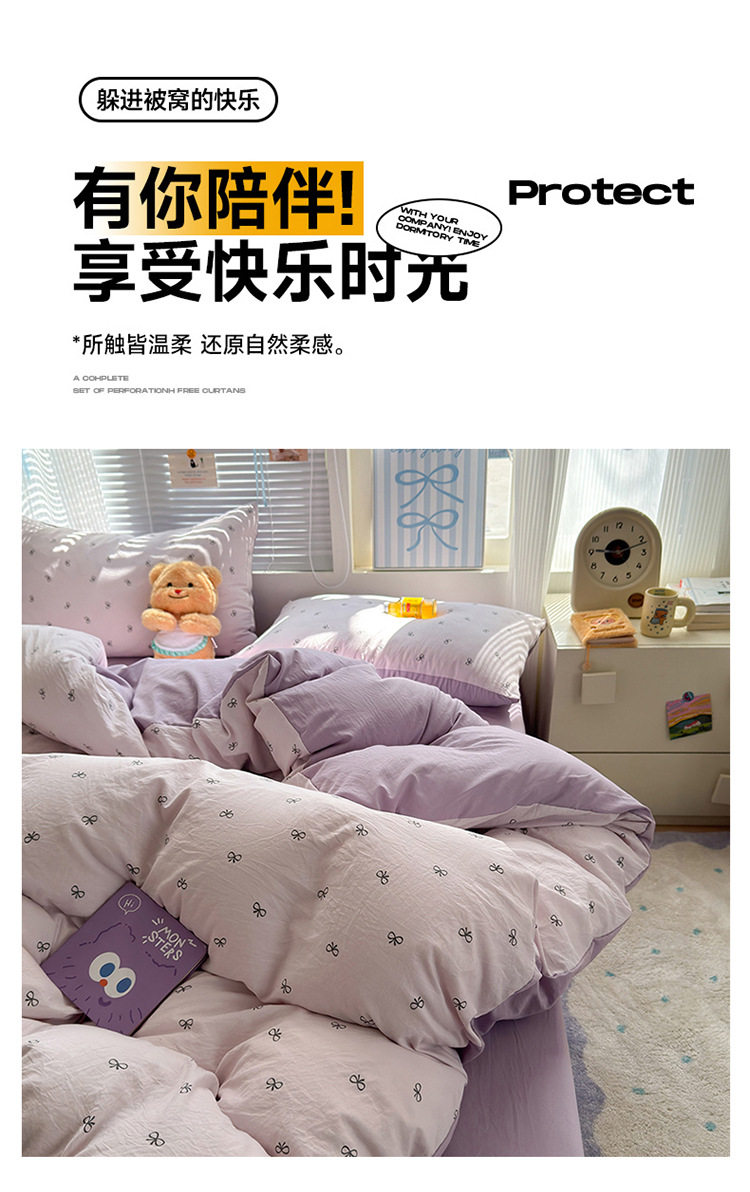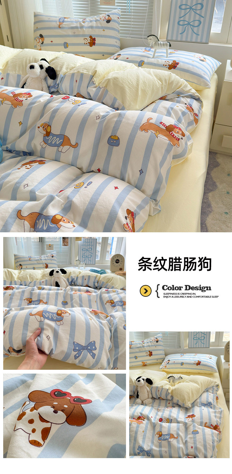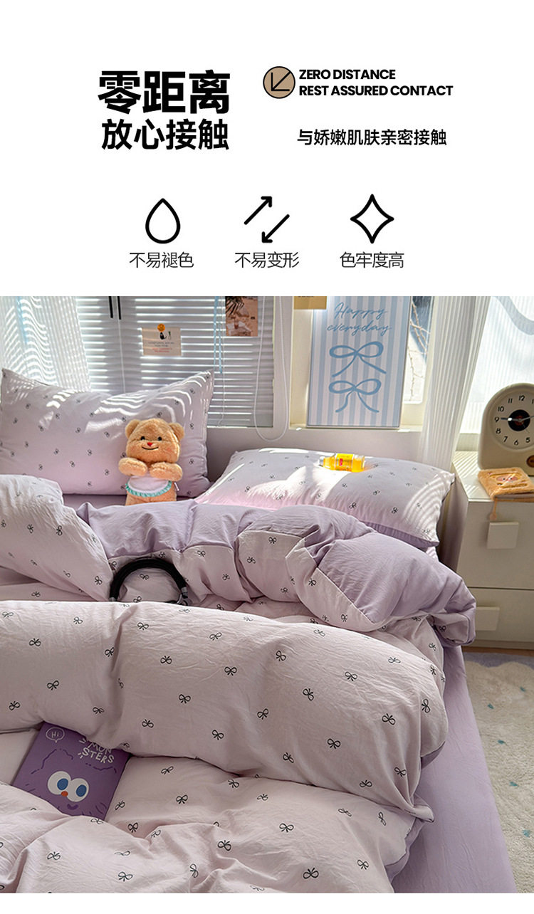 Class A water-washed cotton four-piece set student dormitory three-piece set cotton full bedding sheets quilt cover wholesale 4