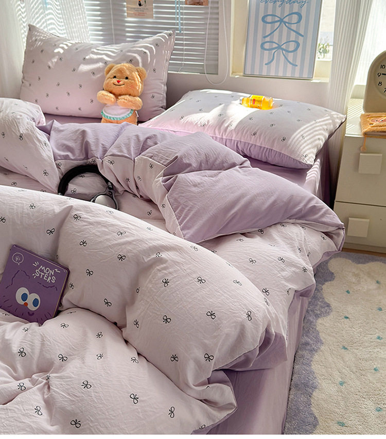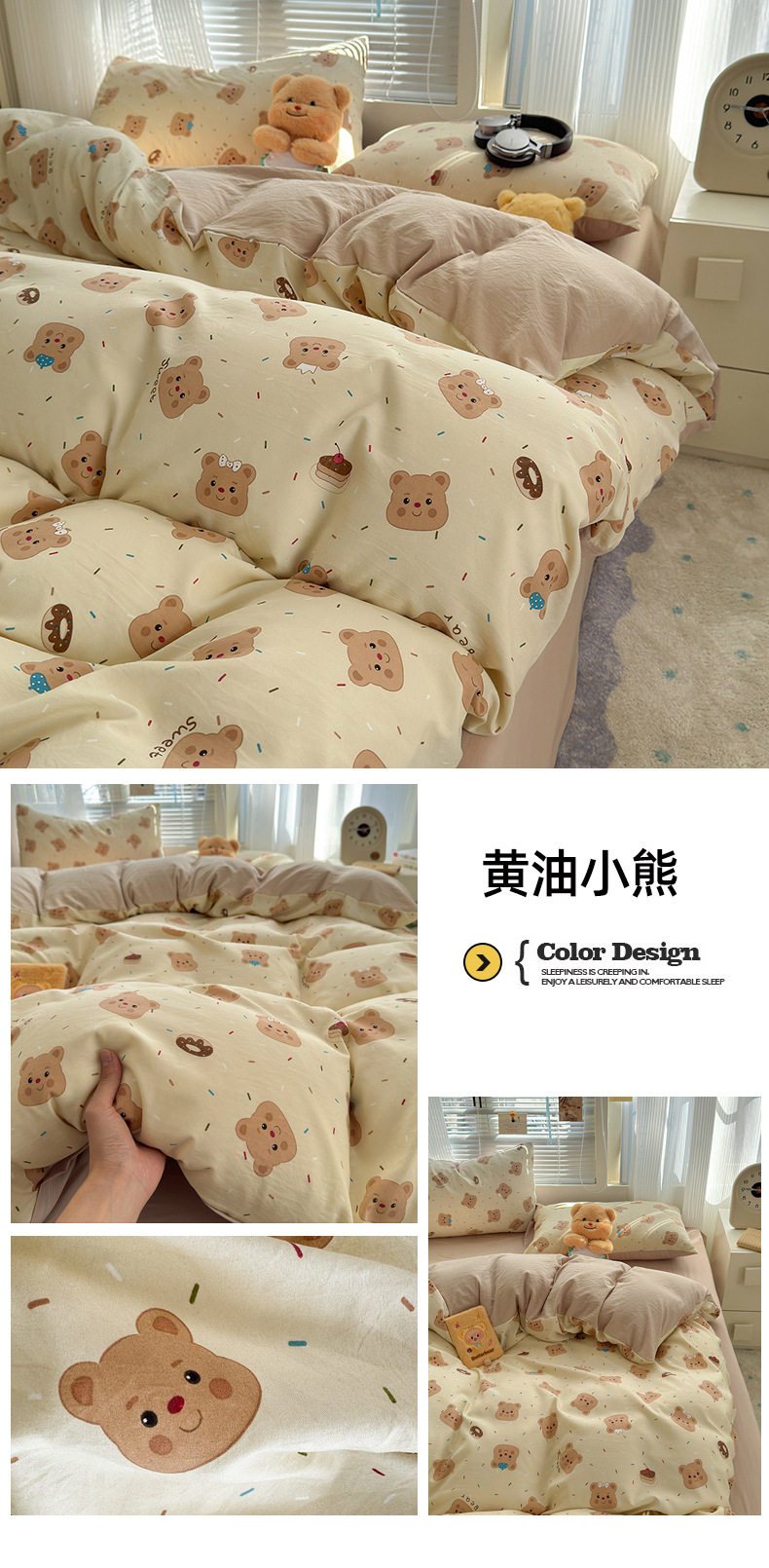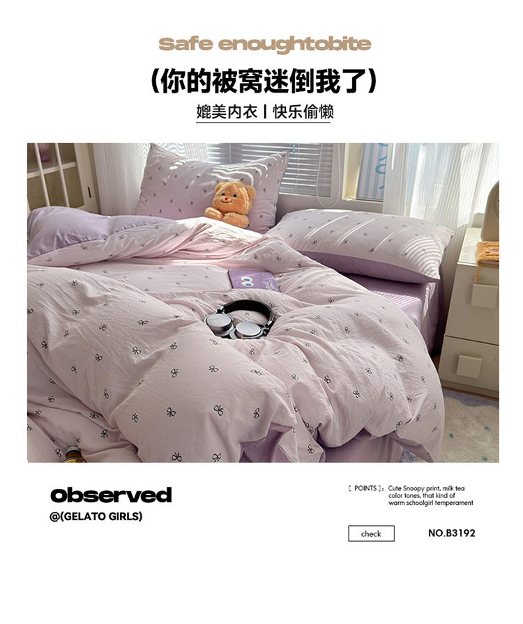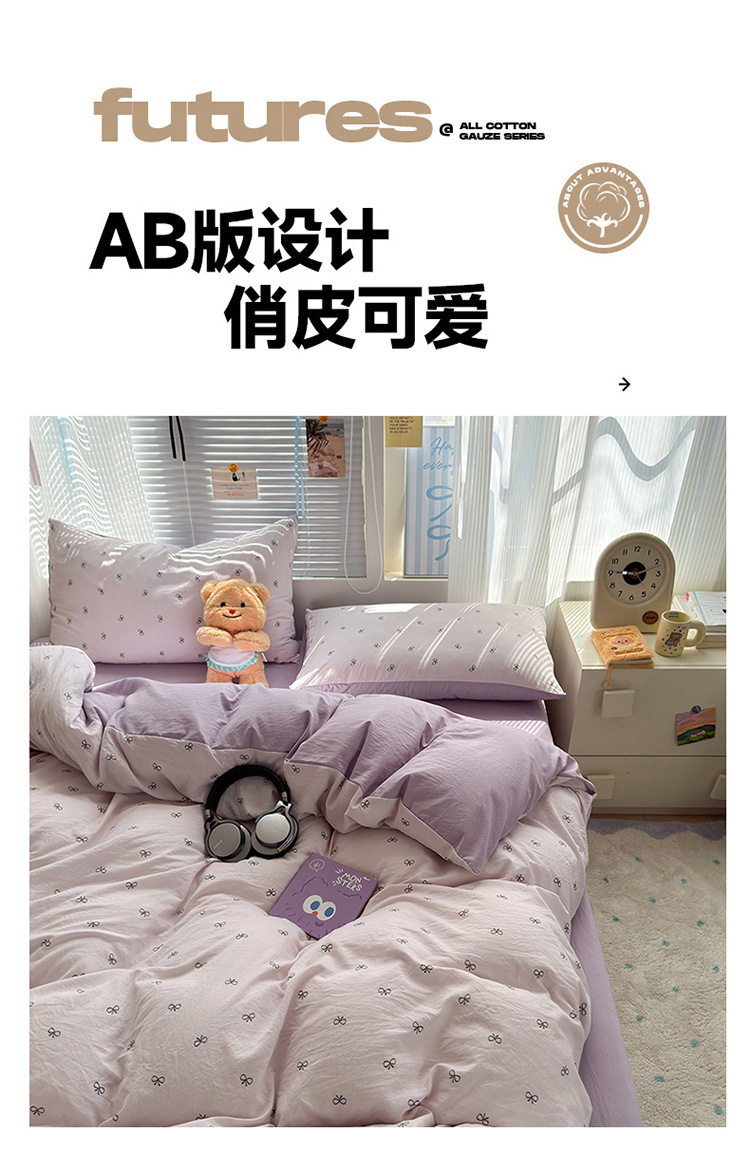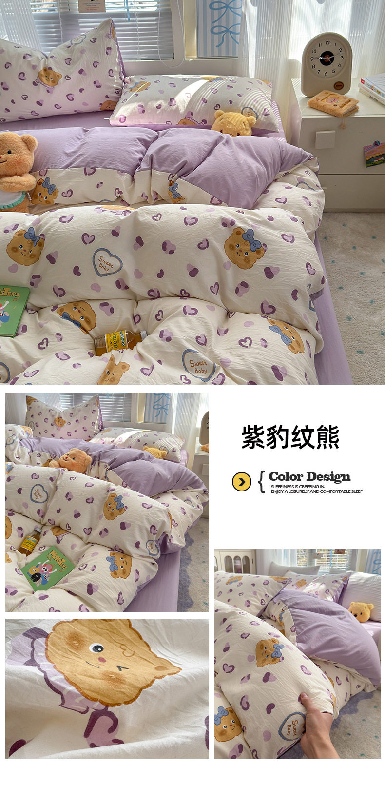 Class A water-washed cotton four-piece set student dormitory three-piece set cotton full bedding sheets quilt cover wholesale 4