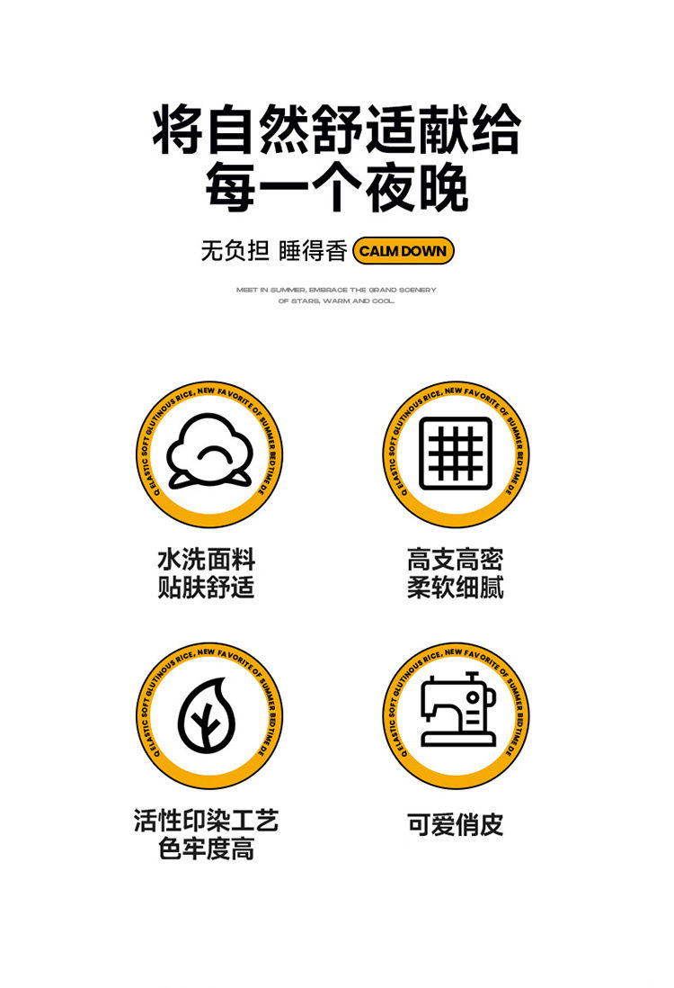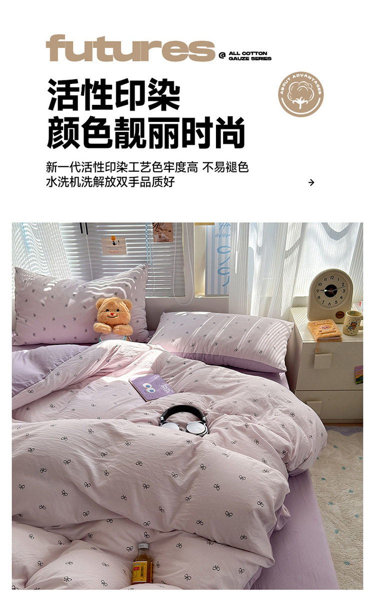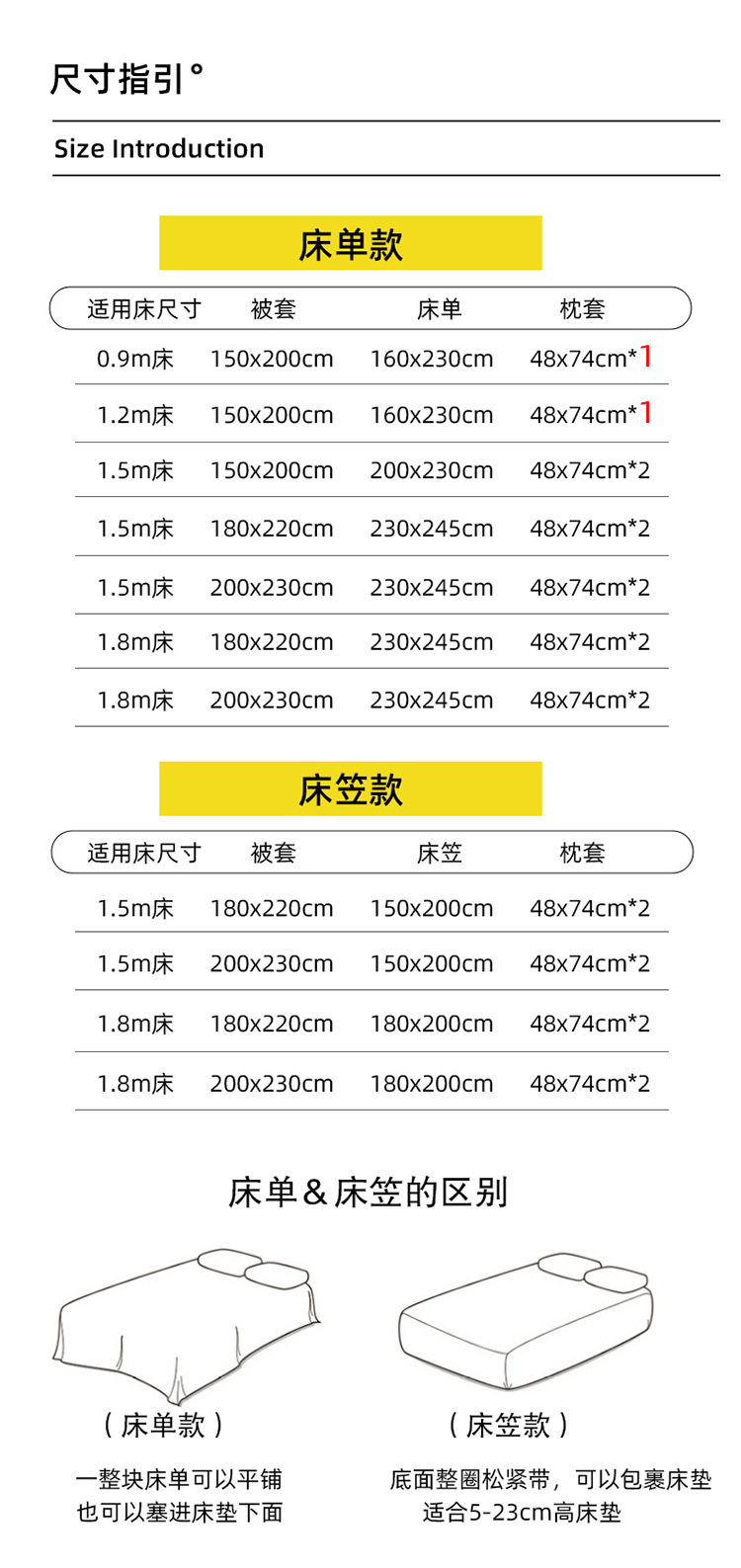 | Dimensions | 0.9m three-piece bed sheet set [quilt cover 150*200],1.2m bed sheet four-piece quilt cover [150*200],1.5m bed sheet four-piece set [quilt cover 150*200],1.5m bed sheet four-piece set [quilt cover 180*220],1.8m bed sheet four-piece set [quilt cover 180*220],1.5m bed sheet four-piece set [quilt cover 200*230],1.8m bed sheet four-piece set [quilt cover 200*230],1.5m fitted sheet [quilt cover 180*220],1.8m fitted sheet [quilt cover 180*220],1.5m fitted sheet [quilt cover 200*230],1.8m fitted sheet [quilt cover 200*230] |