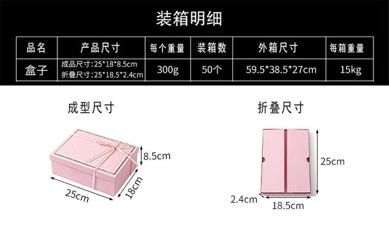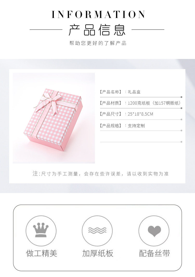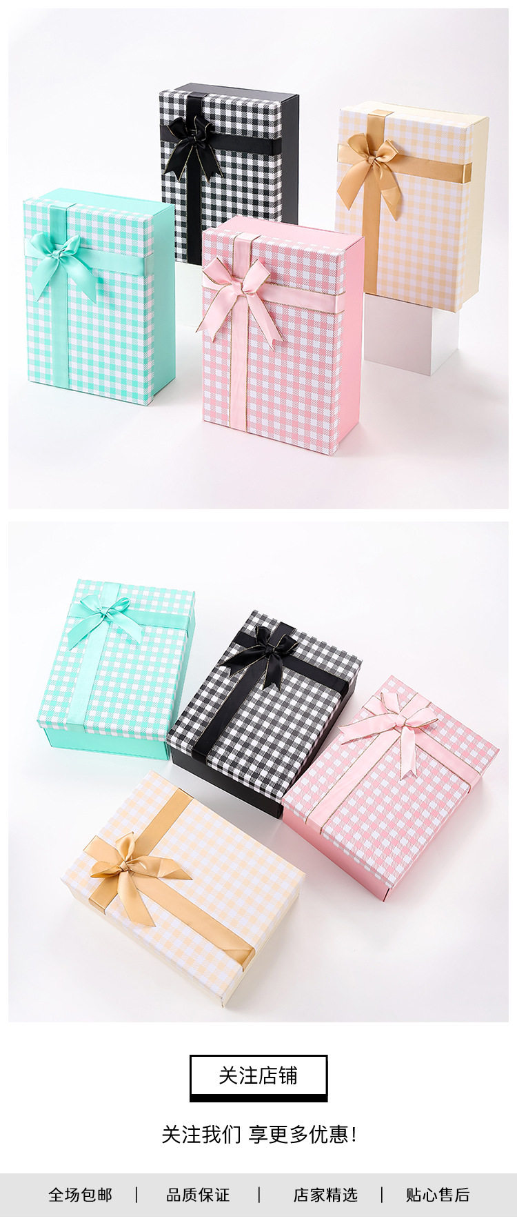 Cross-border hot-selling folding box simple plaid bow gift box birthday gift packaging one-piece gift box wholesale