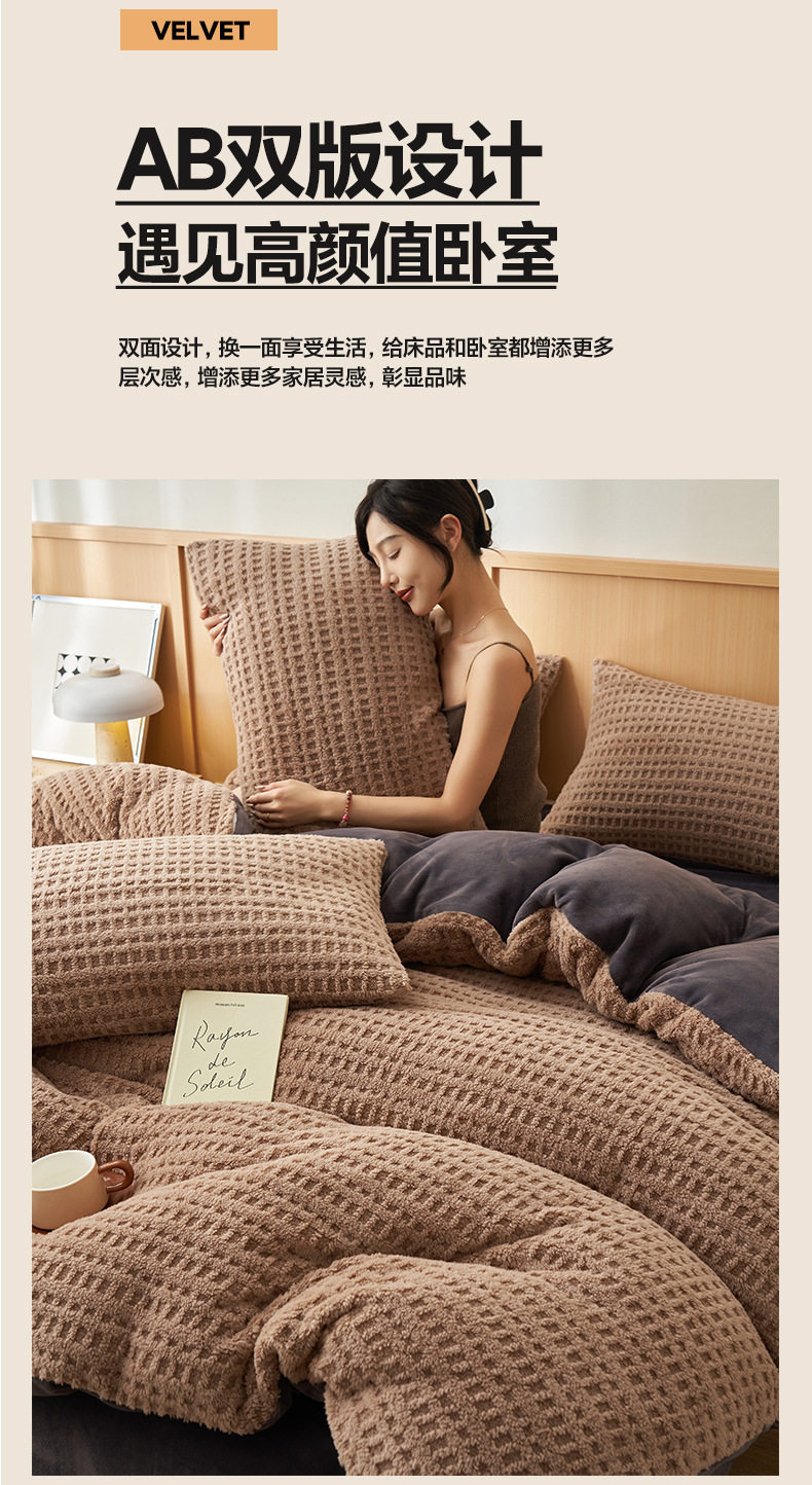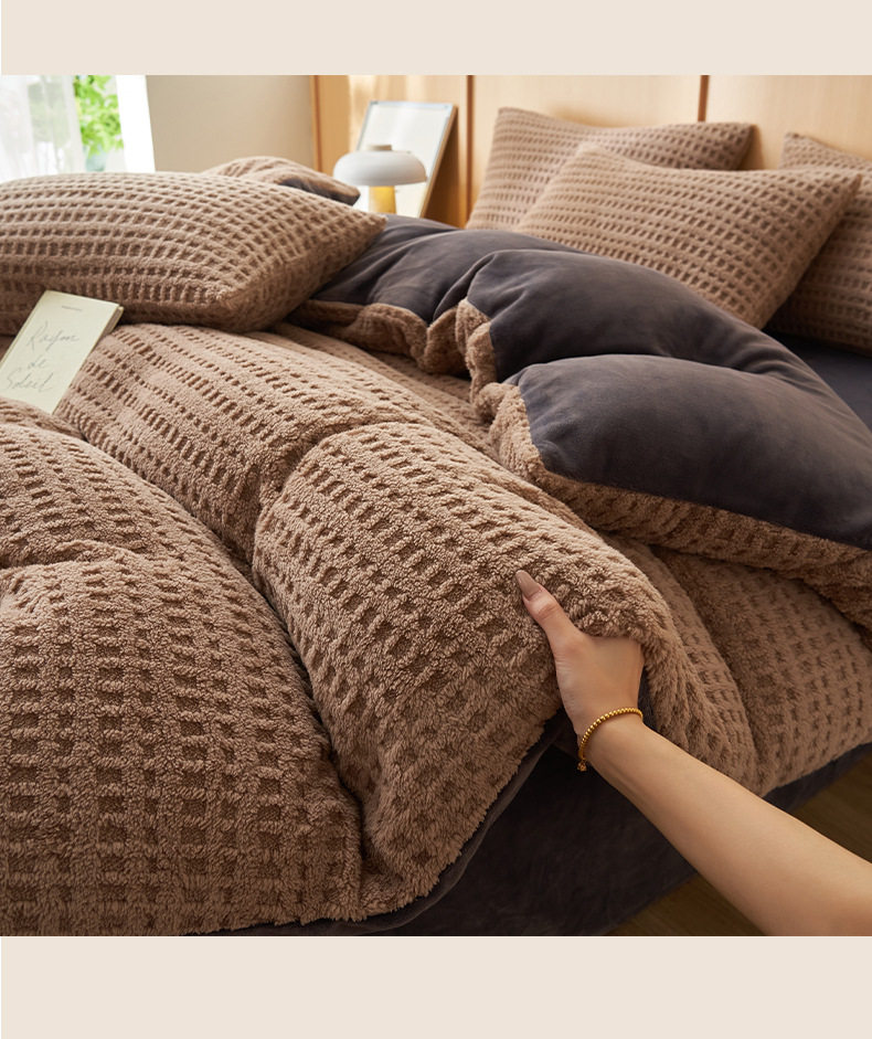 New Style Tahu Feng Four-Piece Set, Milk Velvet Bed Sheet and Duvet Cover, Thickened and Warm Coral Velvet Three-Piece Bed Set, Flannel