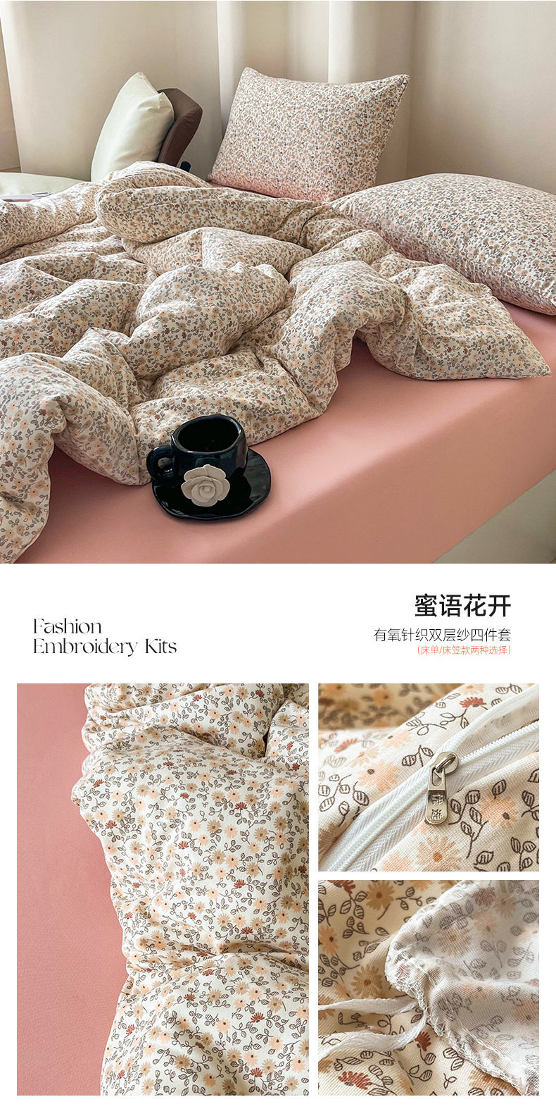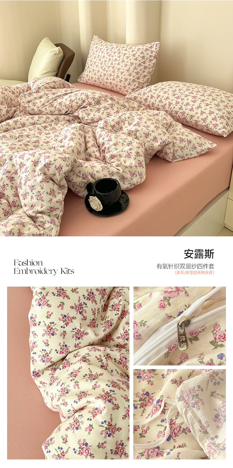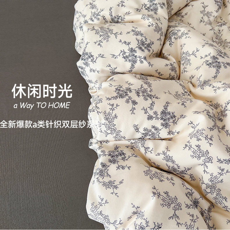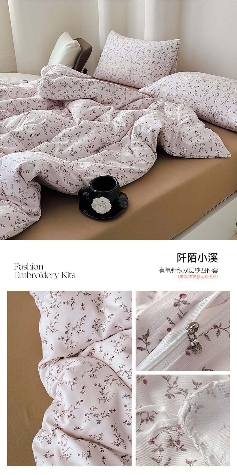 Maternal and Infant Grade a Knitted Cotton Aerobic Double-Layer Yarn Four-Piece Set Ins Small Floral Duvet Cover Fitted Sheet Style Student 3-Piece Set