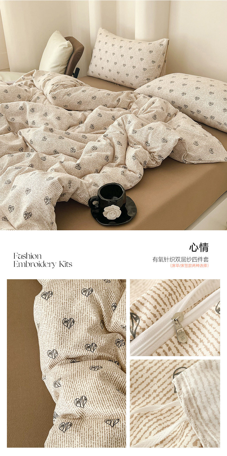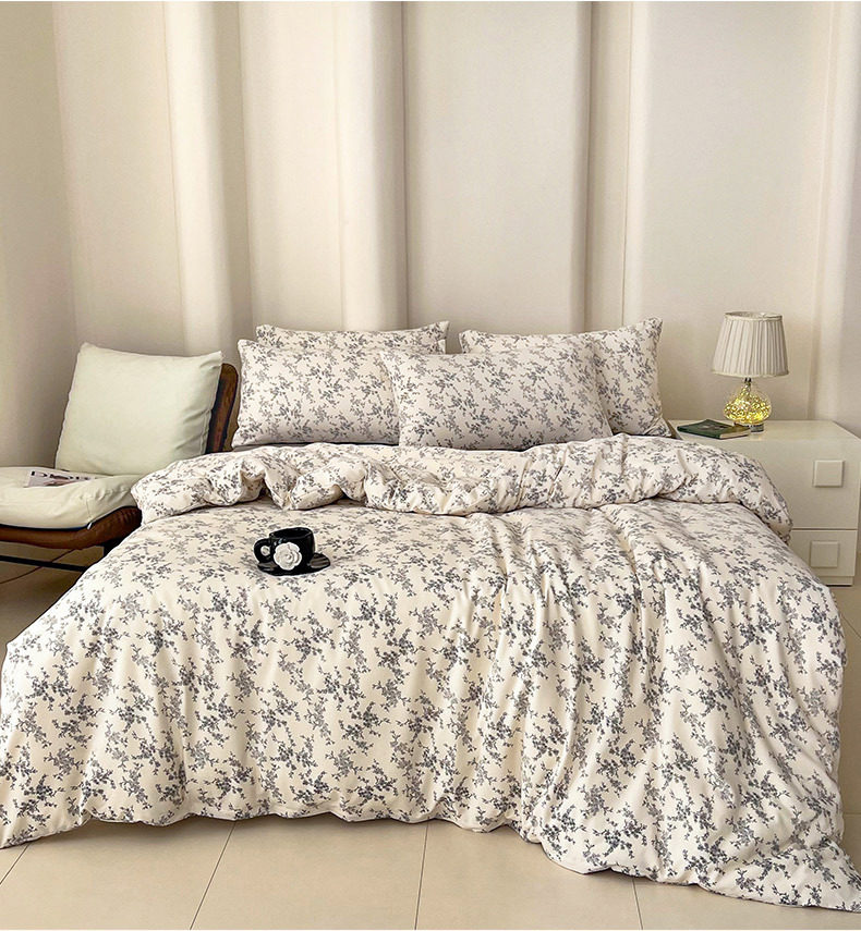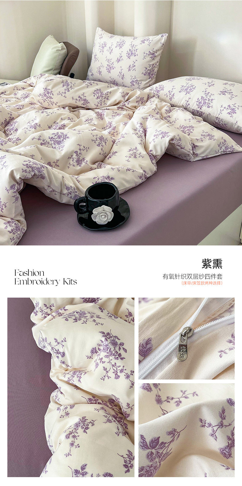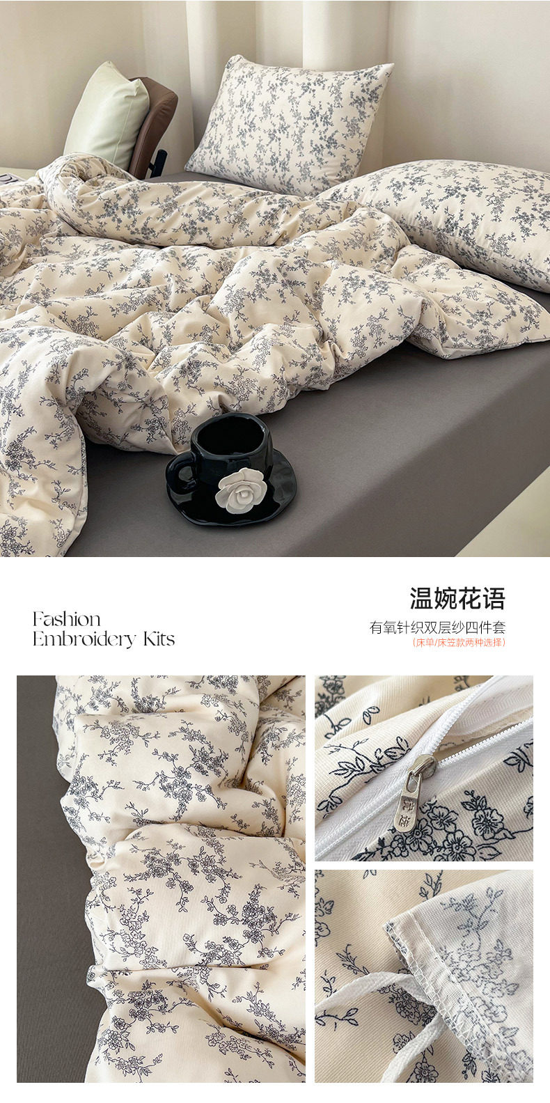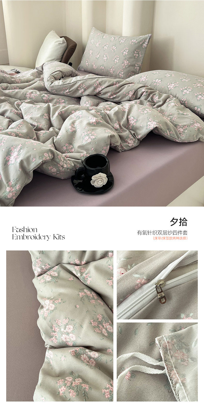 Maternal and Infant Grade a Knitted Cotton Aerobic Double-Layer Yarn Four-Piece Set Ins Small Floral Duvet Cover Fitted Sheet Style Student 3-Piece Set