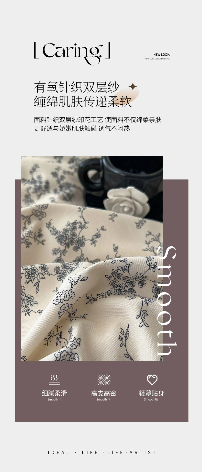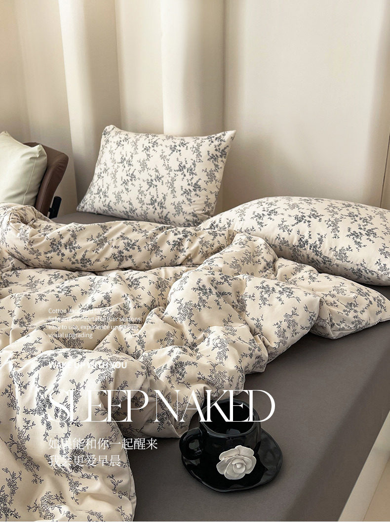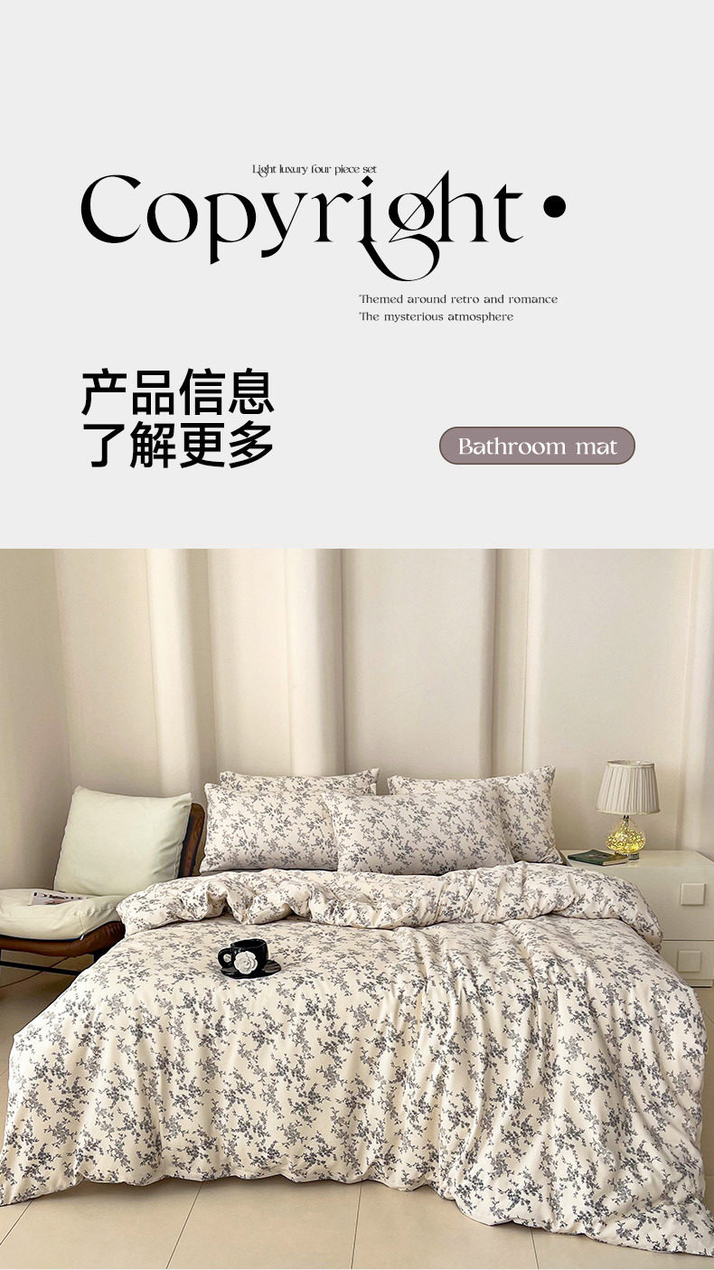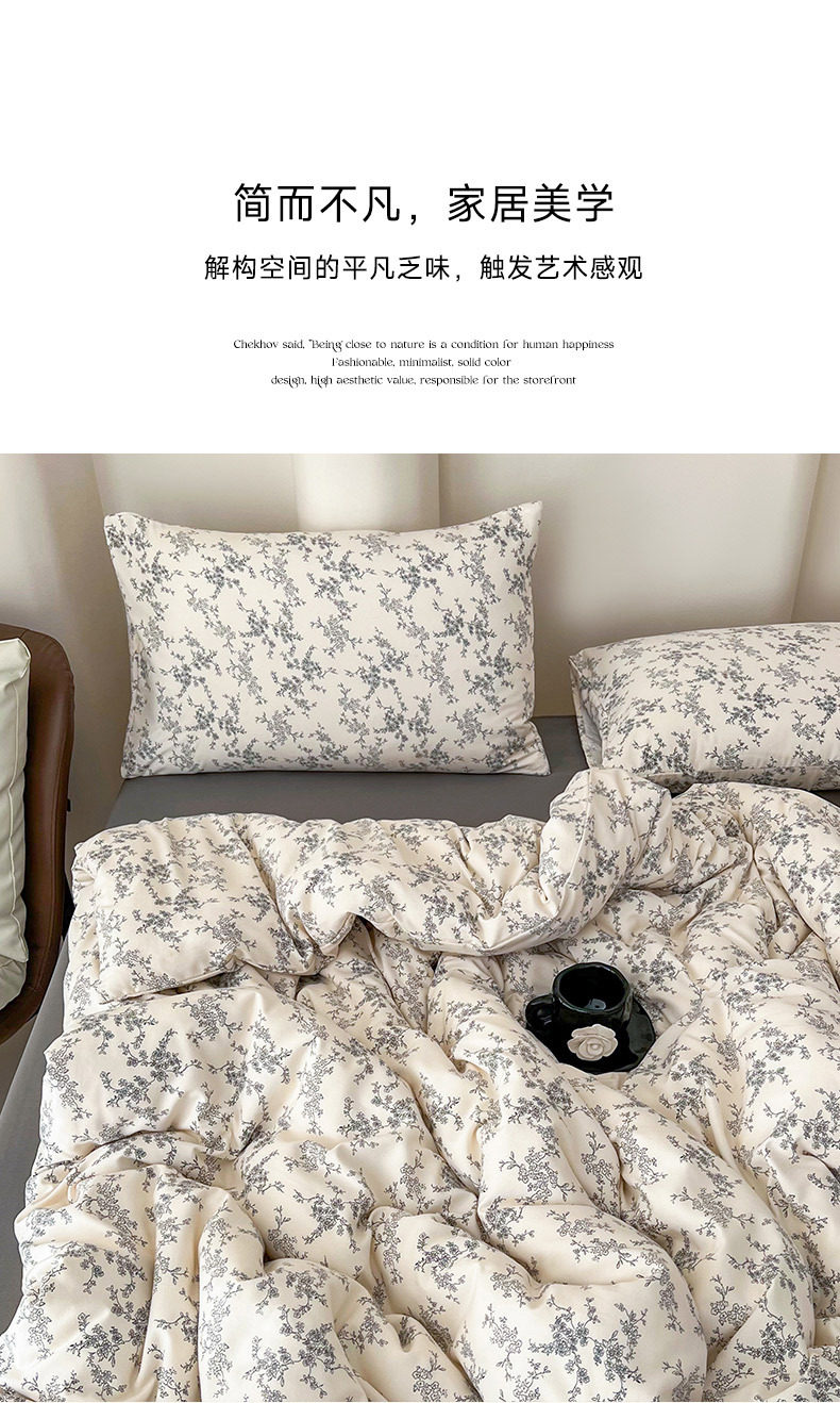 Maternal and Infant Grade a Knitted Cotton Aerobic Double-Layer Yarn Four-Piece Set Ins Small Floral Duvet Cover Fitted Sheet Style Student 3-Piece Set