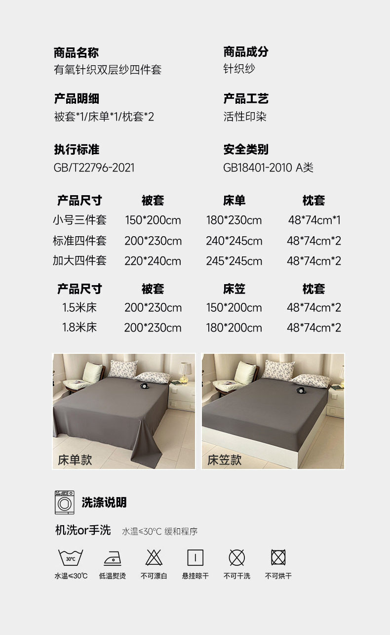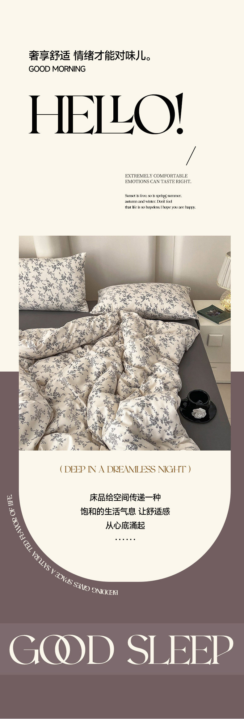 | Dimensions | 1.2m bed sheet three-piece set [quilt cover 150*200],1.5m bed sheet four-piece set [quilt cover 150*200],1.8m bed sheet four-piece set [quilt cover 180*220],2.0m bed sheet four-piece set [quilt cover 200*230],★1.5m fitted sheet set of four [quilt cover 200*230],★1.8m fitted sheet set of four [quilt cover 200*230],2.2m bed sheet four-piece set [quilt cover 220*240] |