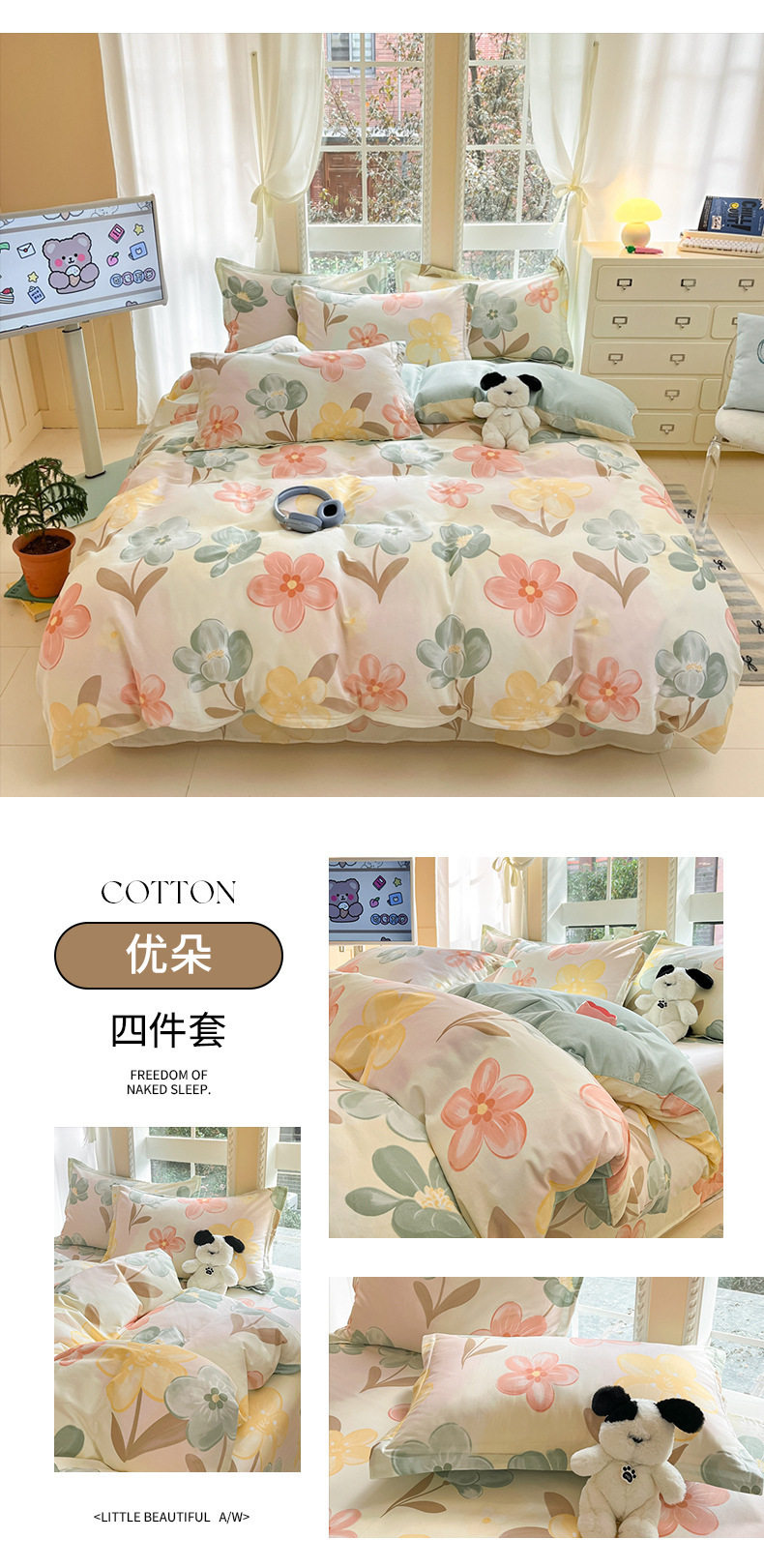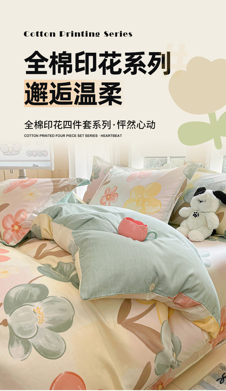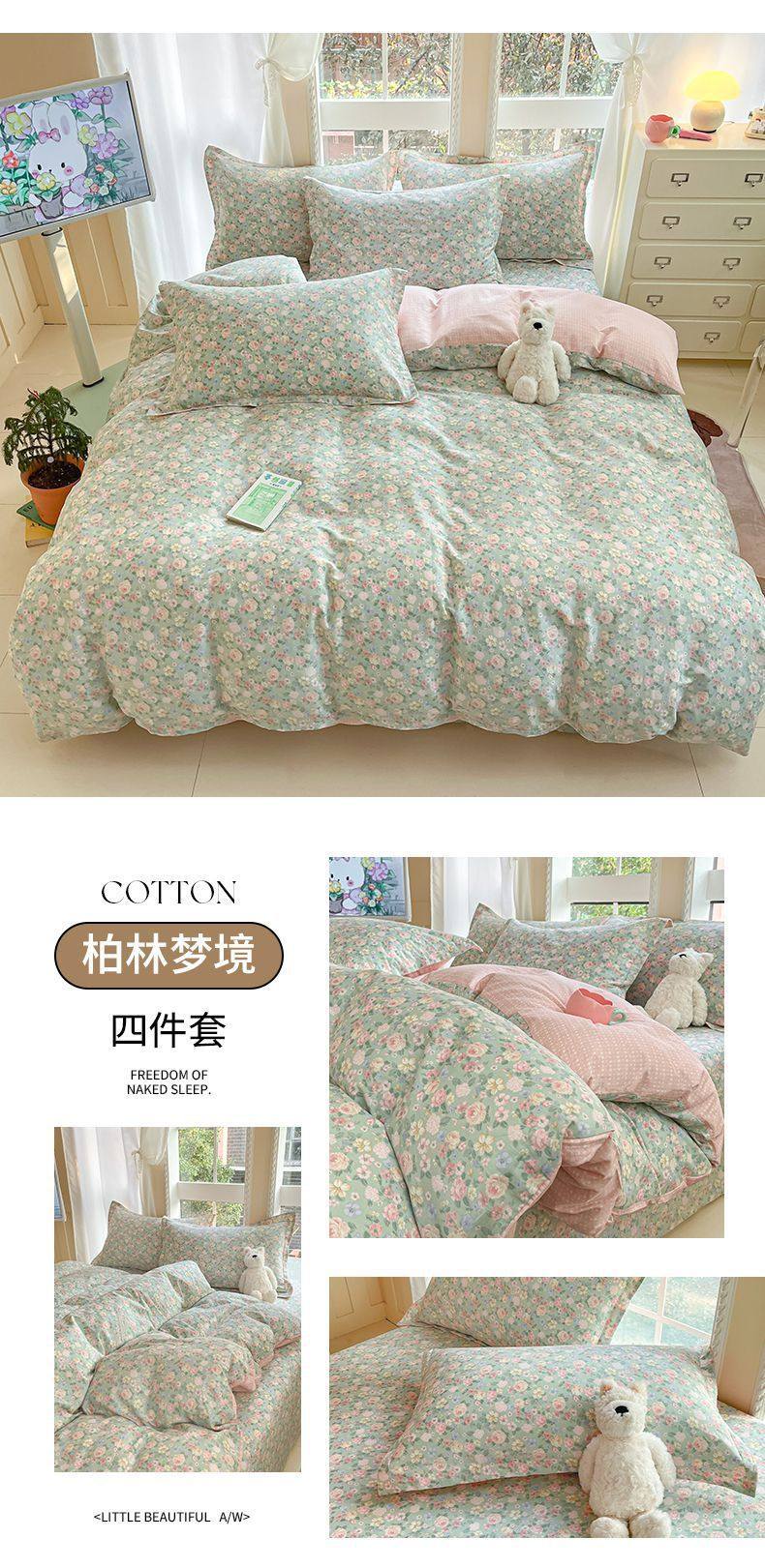 Ins Pastoral Style Small Floral 100 Cotton Bed Four-piece Set Cotton Twill Quilt Cover Bedding Three-piece Set