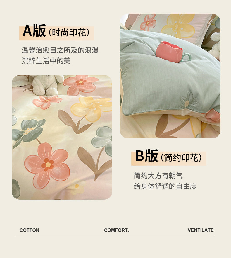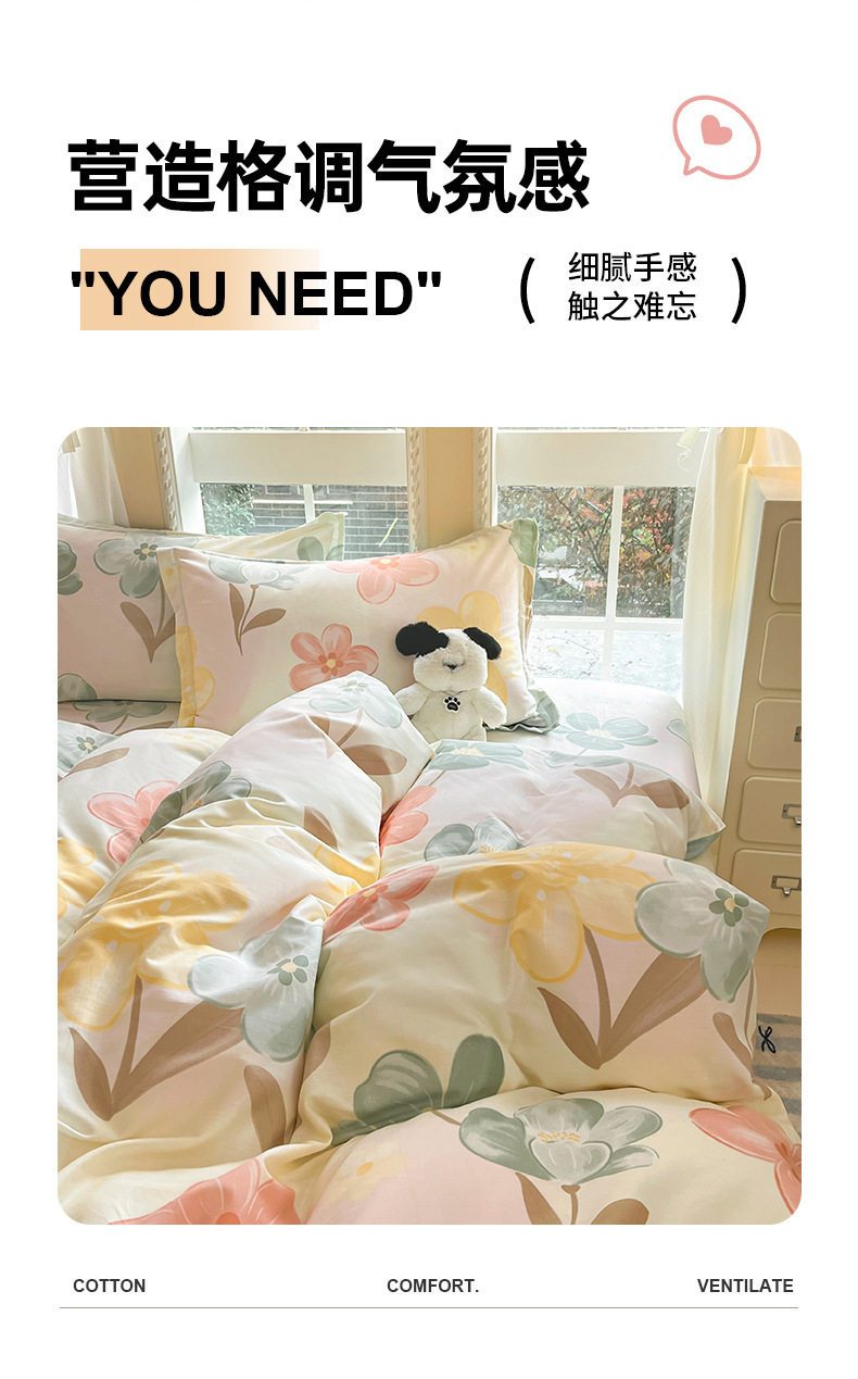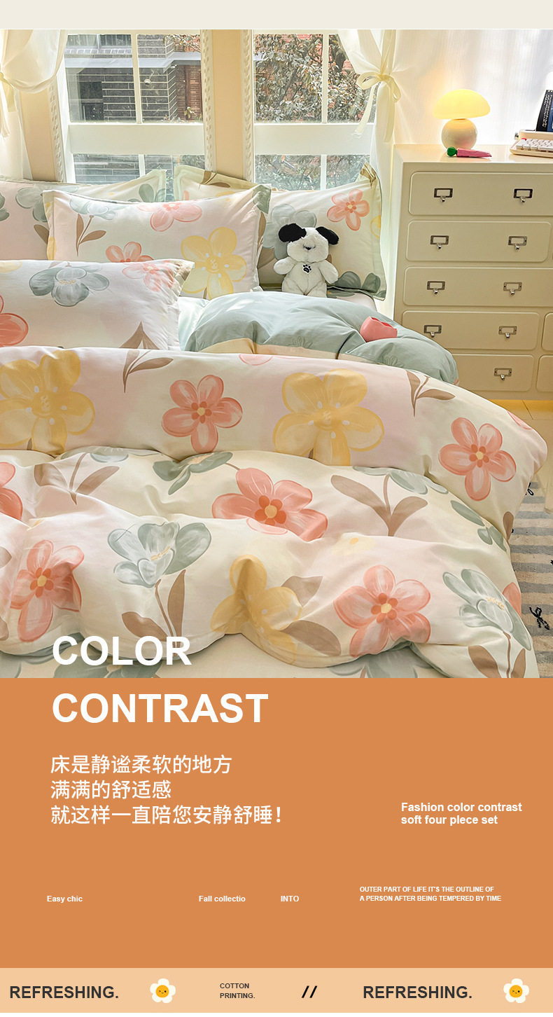 Ins Pastoral Style Small Floral 100 Cotton Bed Four-piece Set Cotton Twill Quilt Cover Bedding Three-piece Set
